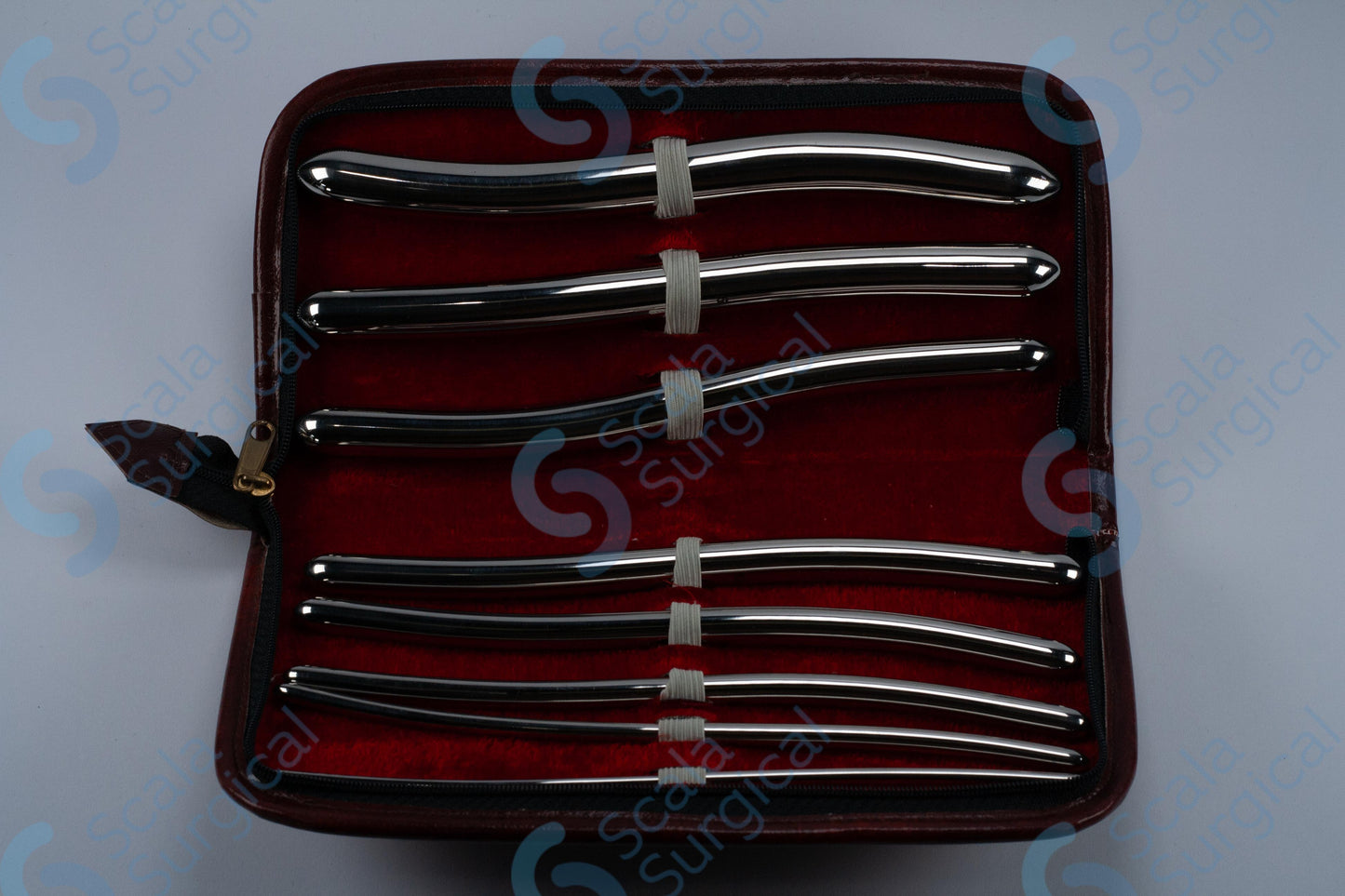A Hegar Uterine Dilator Set of 8 is a set of medical instruments used to dilate the uterine cervix during gynecological procedures such as dilation and curettage (D&C) and hysteroscopy. The set includes 8 dilators ranging in size from 3/4 to 17/18. The dilators are used to gradually and gently widen the cervical opening in order to allow for the insertion of medical instruments.