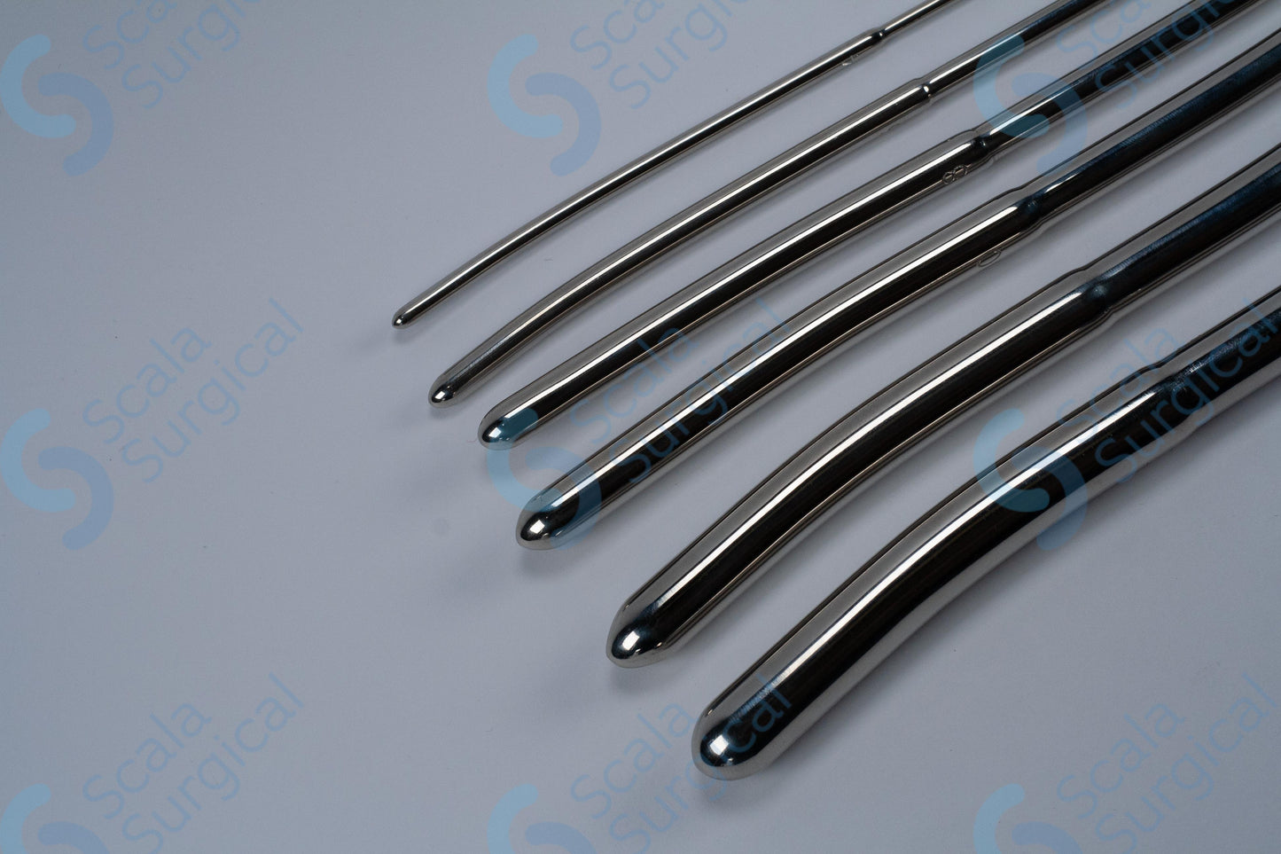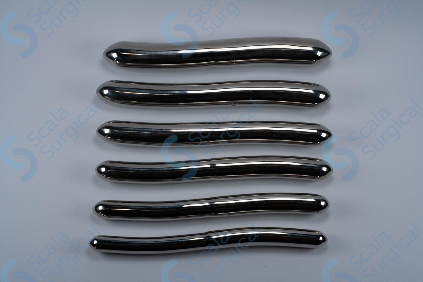 A Hegar Uterine Dilator Set of 12 is a set of medical instruments used by surgeons during gynecological procedures. The set includes 12 dilators that range in size from 1/2 to 23/24, which are used to gently stretch and open the cervix of the uterus in order to allow access for other instruments. The set is commonly used for dilation and curettage (D&C) procedures, hysteroscopy, and other gynecological procedures.