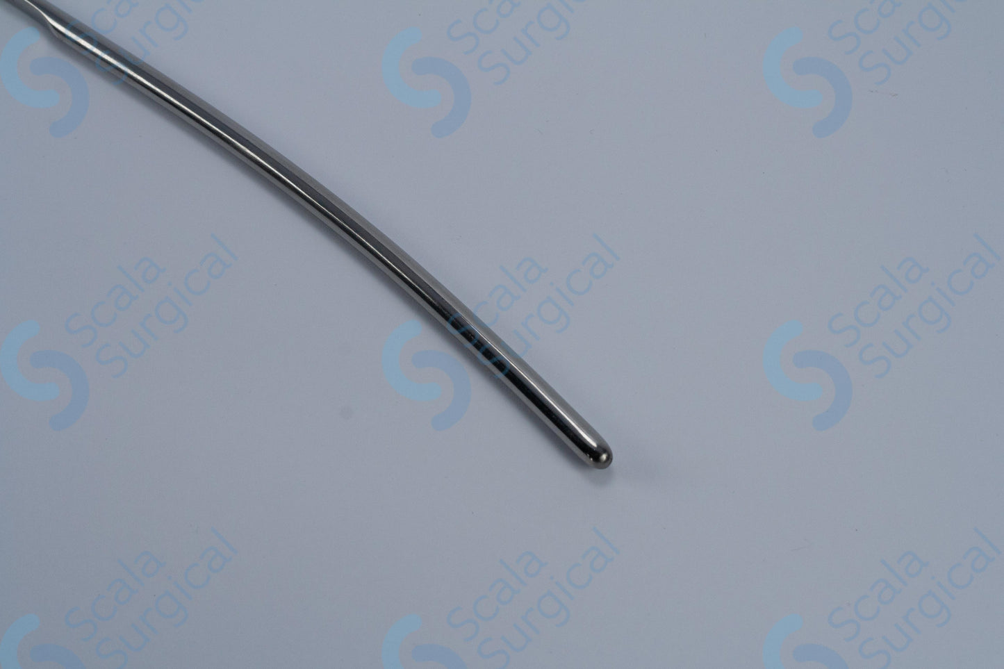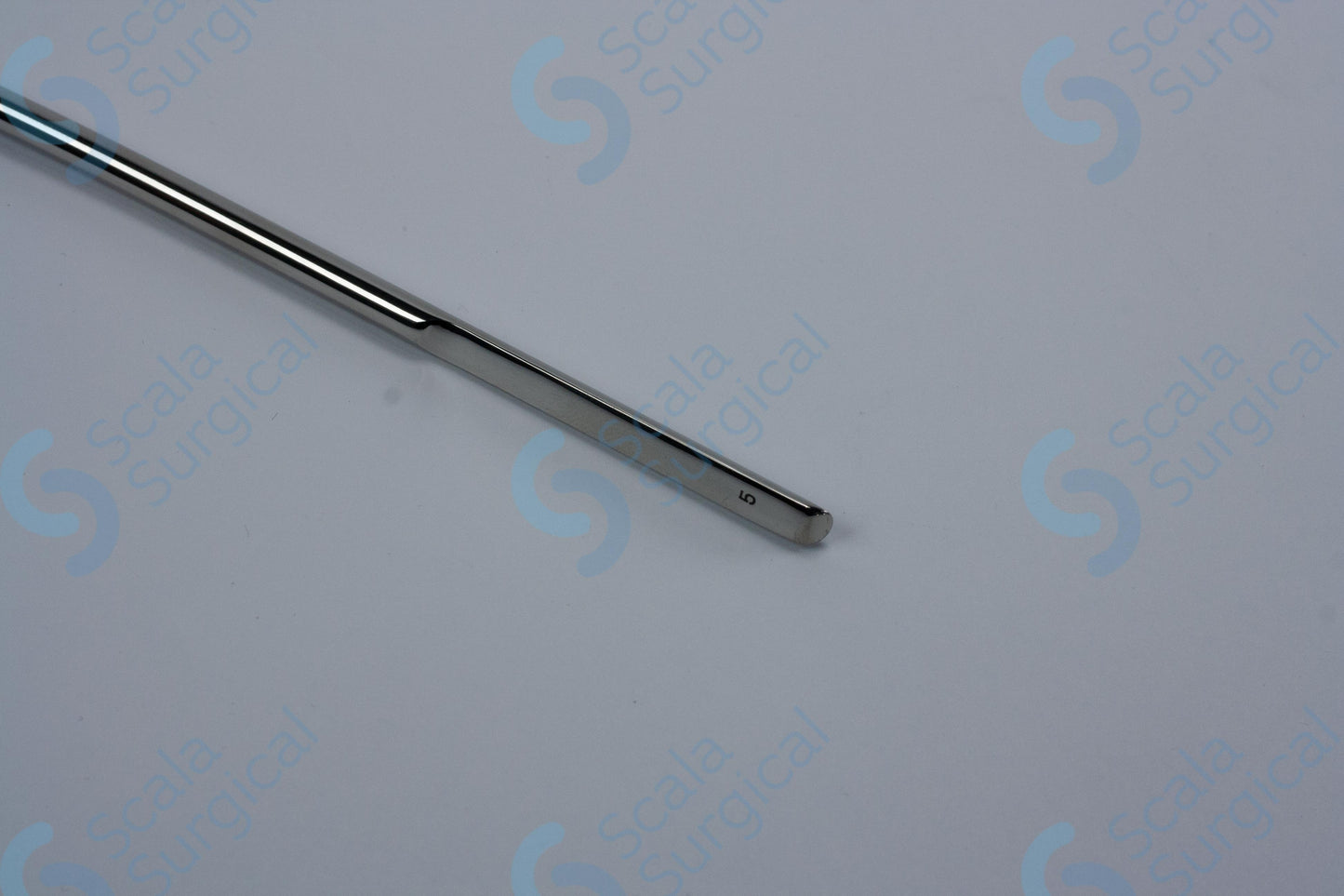 The Hegar Uterine Dilator Single Ended is a medical device used in gynecological procedures. It is used to dilate the cervix, which is the opening to the uterus. The dilator is inserted into the cervix and then gradually opened to the desired size (in this case, 5mm). This is done to facilitate the passage of instruments during surgery, or to allow for the insertion of an intrauterine device.