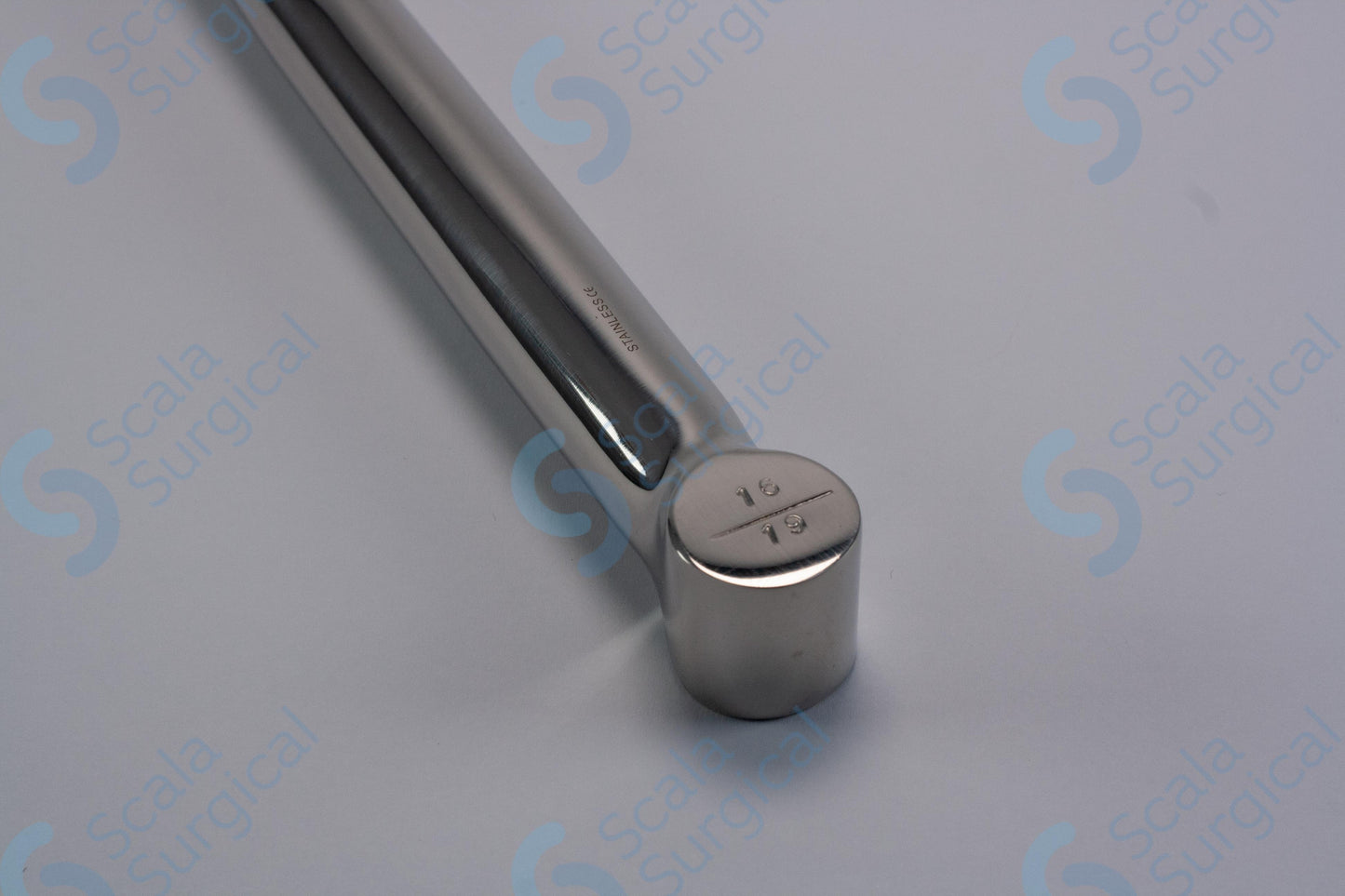 The Hawkin Ambler Uterine Dilator is a device used in gynecological surgery to dilate the cervix. It has two different dilator diameters - 16mm and 19mm - which can be used to gradually stretch the cervix prior to surgery.