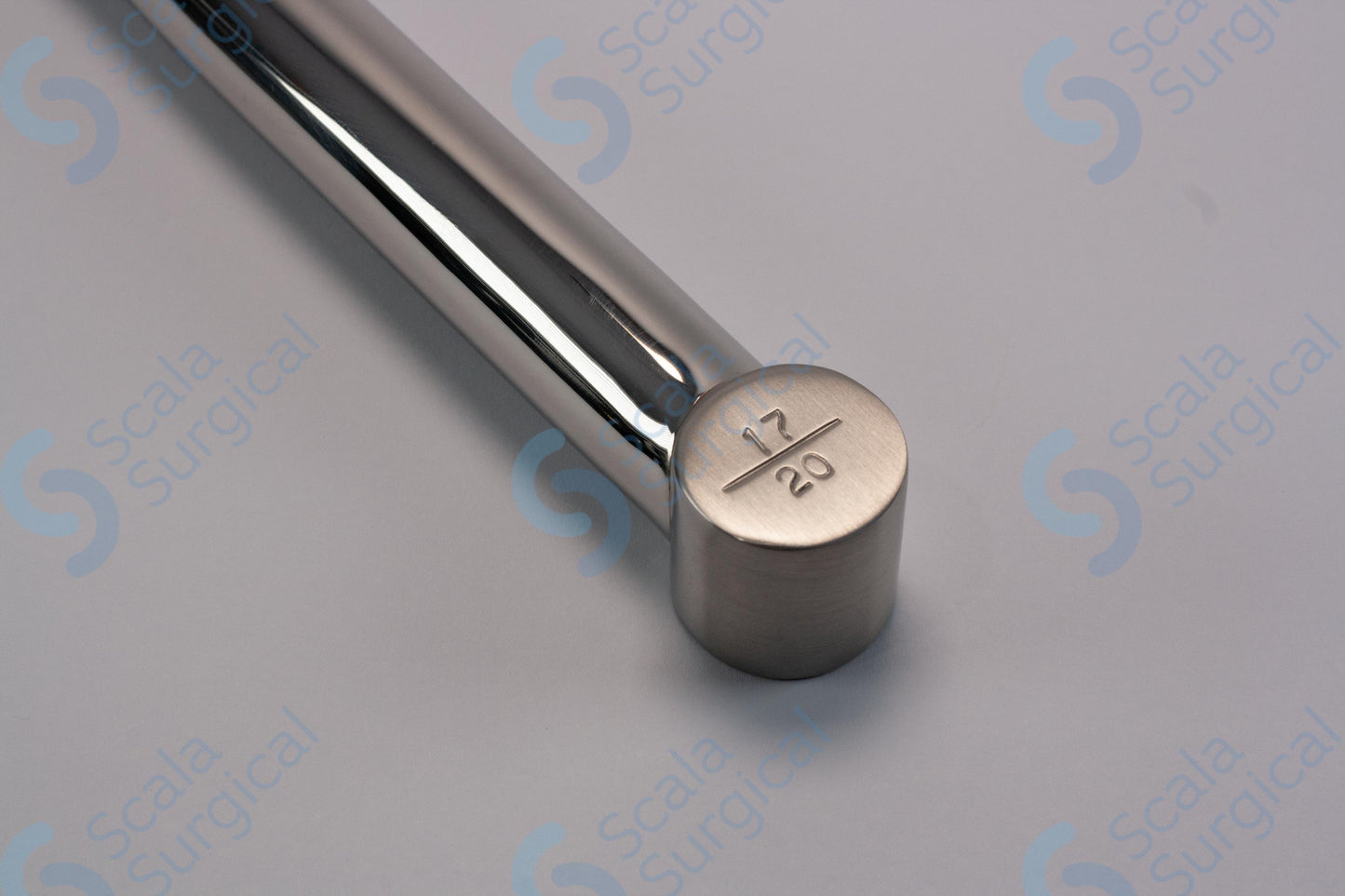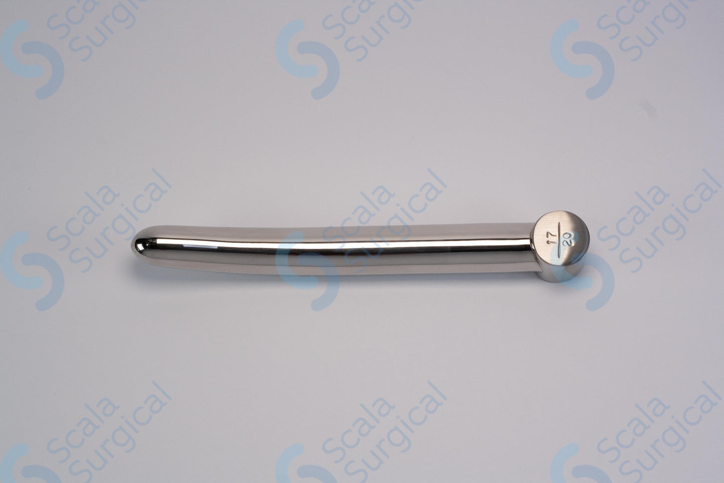 The Hawkin Ambler Uterine Dilator is a surgical instrument used to dilate the cervix in order to facilitate gynecological procedures. It has two different dilator diameters (17mm and 20mm), allowing it to be used for different procedures.