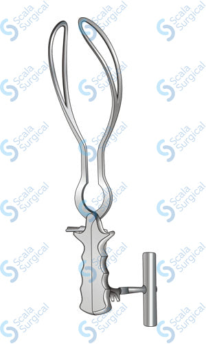 Barnes Neville Obstetric Forceps Axis Traction Handle (17 inch) is a surgical tool used to grasp and pull on the baby's head during delivery. It is used to help guide the baby's head out of the birth canal during labor and delivery.