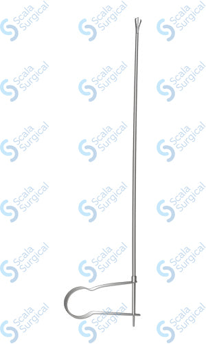 Swab Holding Forceps U-Shape Handle 3 Prongs (292.1mm) are used by medical professionals during surgical procedures to hold and manipulate swabs. The forceps have a U-shaped handle with three prongs at the end, and they measure 292.1mm in length. They are designed to provide a secure grip on swabs, allowing the user to easily move and position them during a procedure.