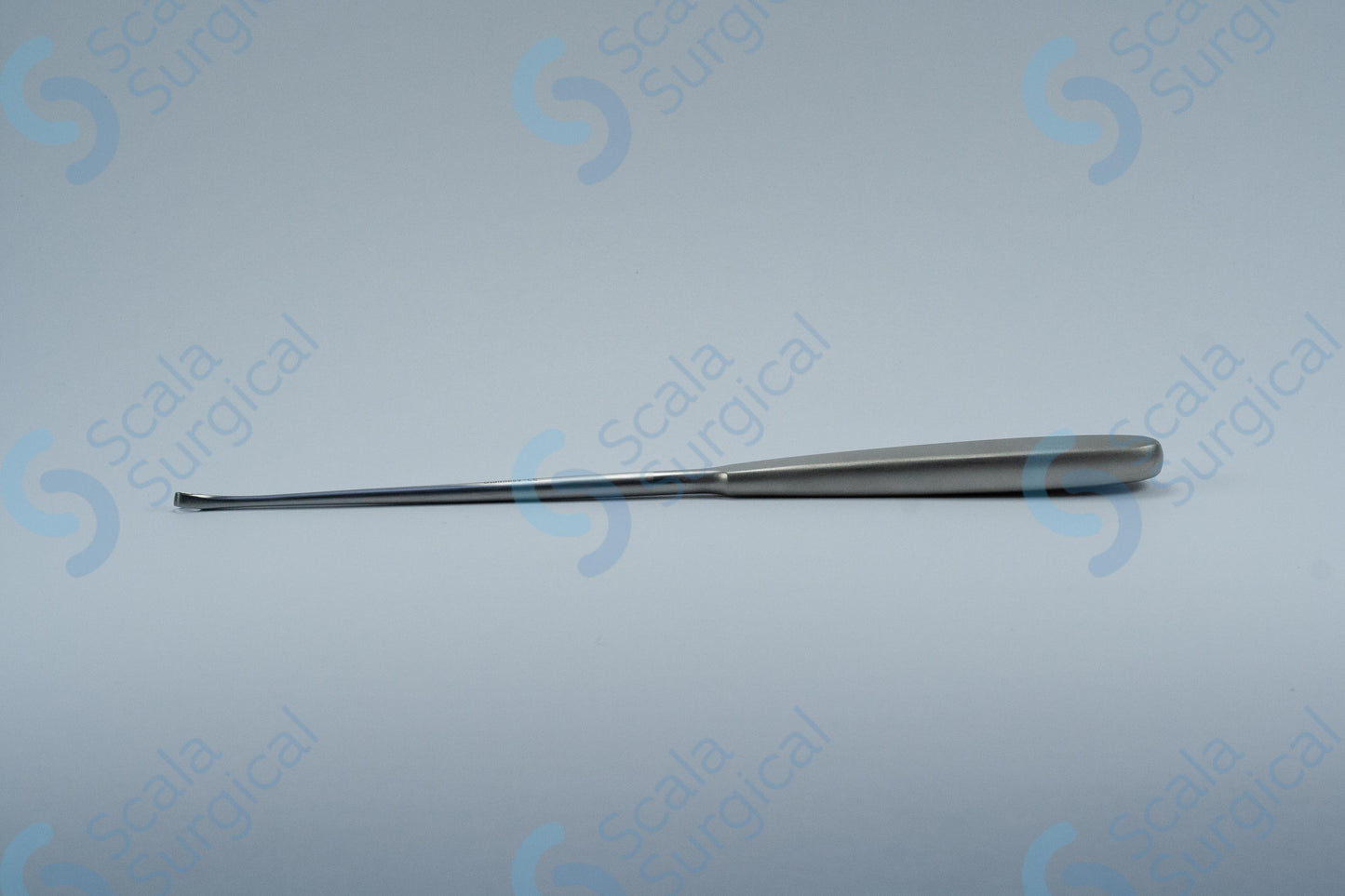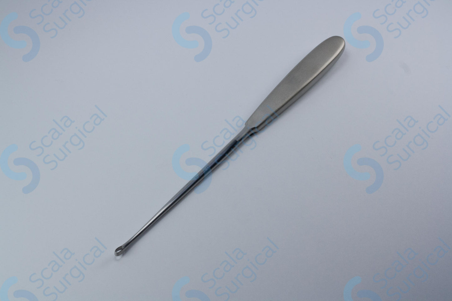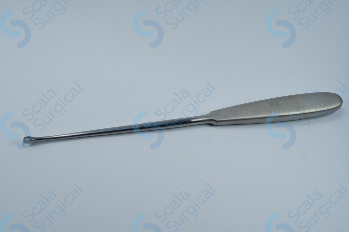 A Sims Uterine Curette is a surgical instrument used to scrape and remove tissue from the walls of the uterus. It is commonly used in gynecological procedures such as dilation and curettage (D&C) and endometrial biopsy. The sharp, single-ended rigid shaft allows the doctor to reach deep into the uterus and scrape away any abnormal tissue. The width of the curette (4mm) and the length (255mm or 10 inches) are important factors in determining the reach and effectiveness of the instrument.