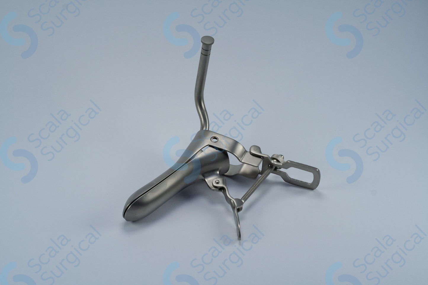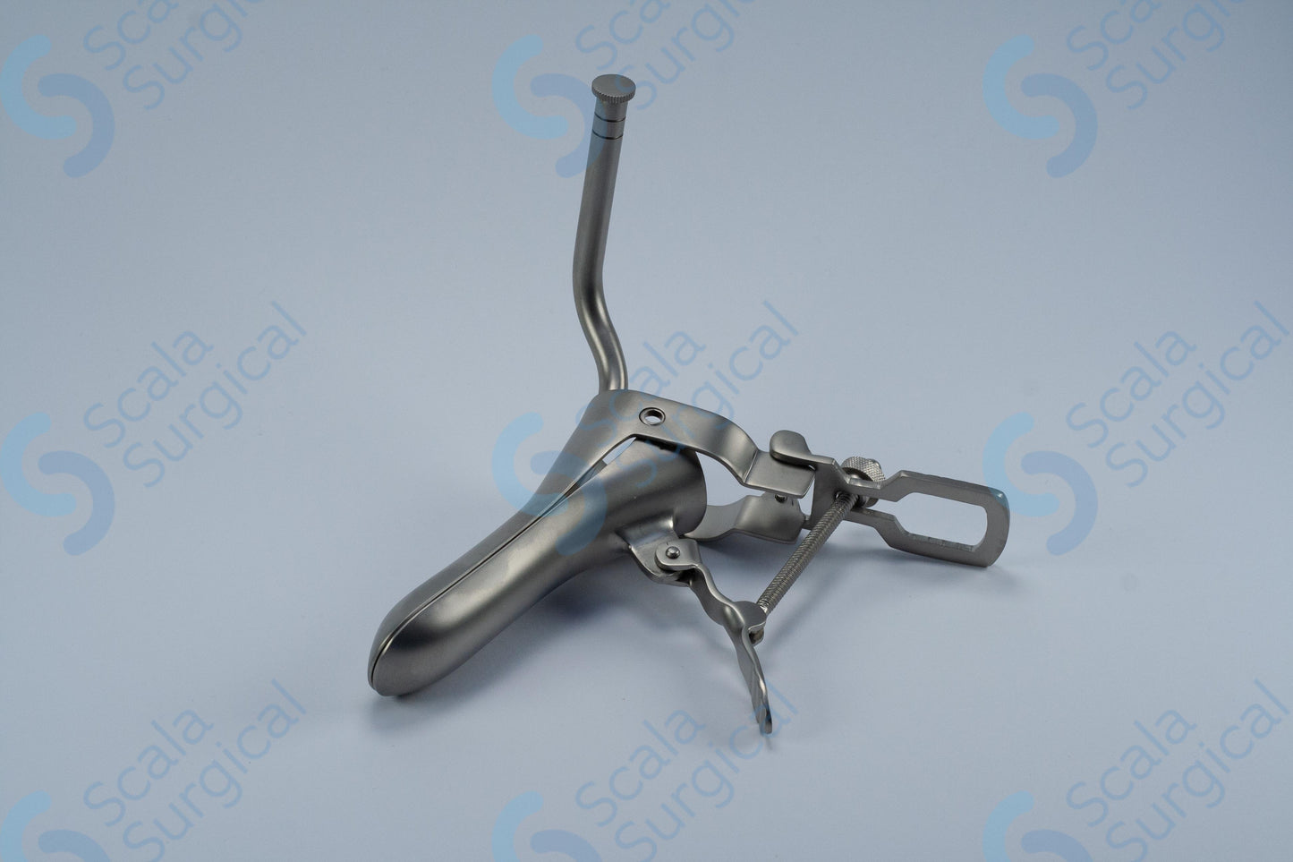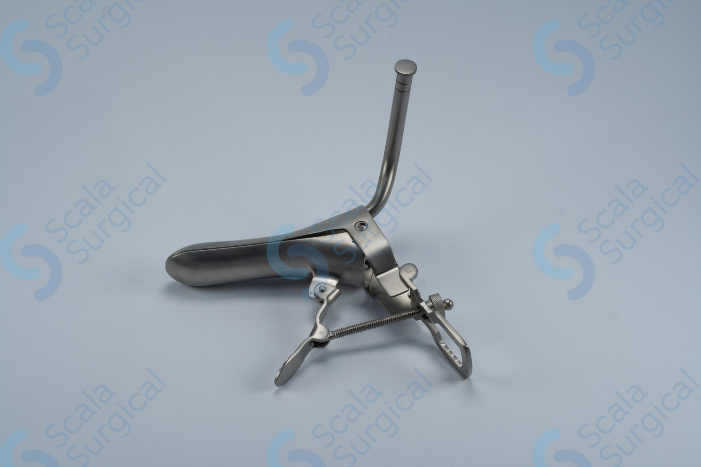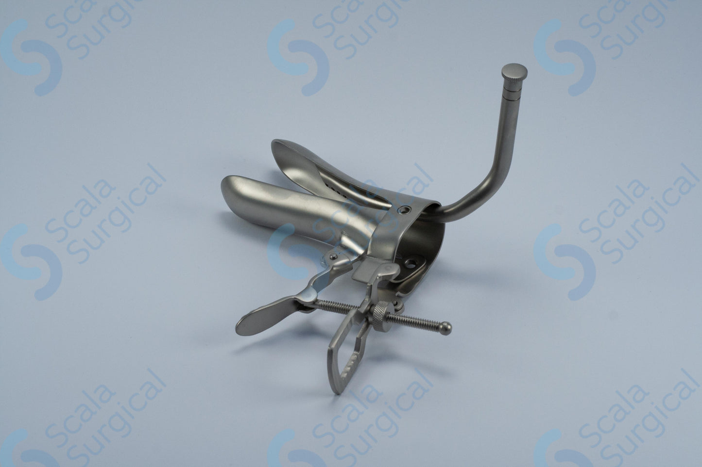 A Vaginal Cusco Speculum Bead Finish With Smoke Tube Small Angled (95 x 25mm) is a medical device used by gynecologists during pelvic examinations. It is inserted into the vagina to hold the walls of the vagina open so the doctor can inspect the vagina and cervix. The smoke tube allows the doctor to introduce smoke into the vagina to help visualize the cervix.