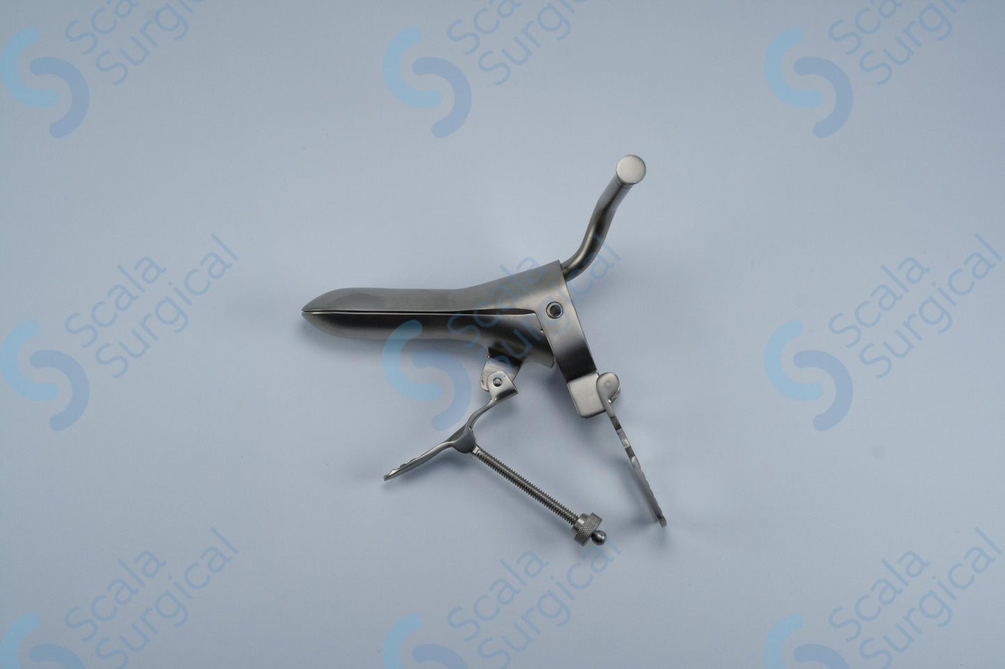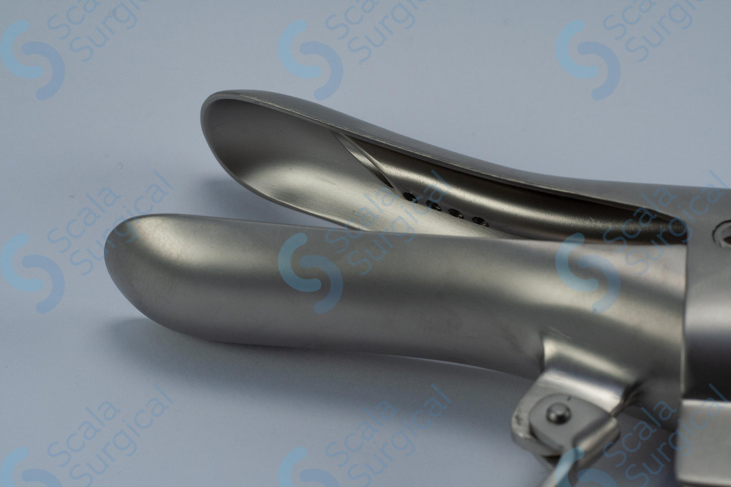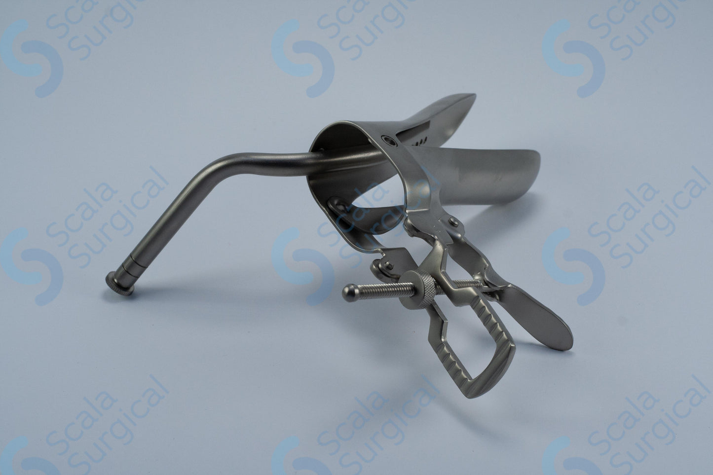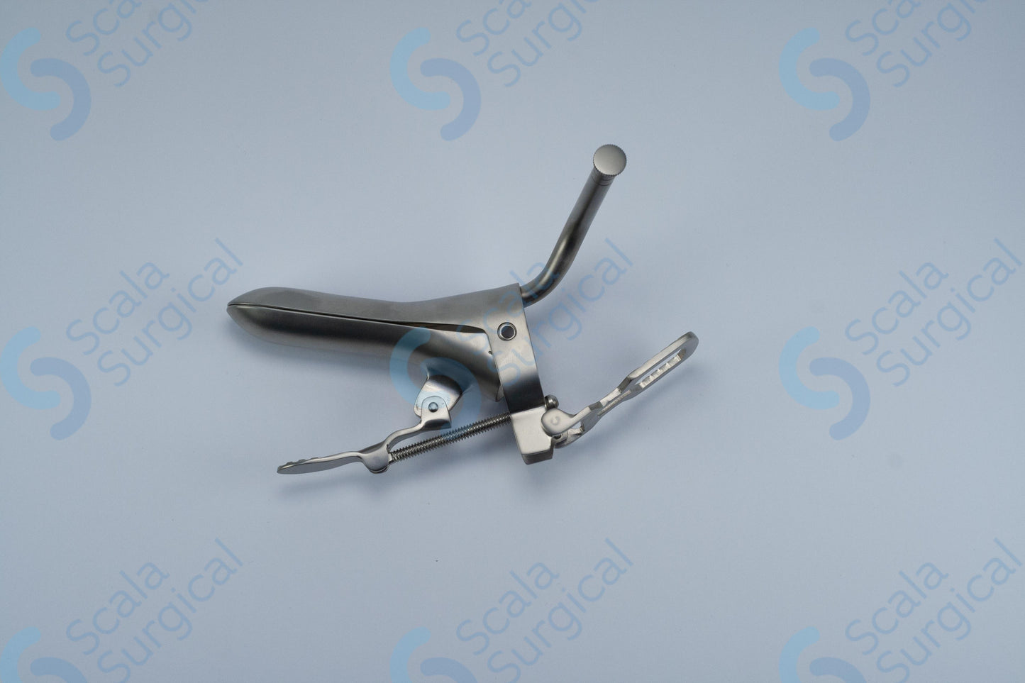 A Vaginal Cusco Speculum Bead Finish With Smoke Tube Small Angled (95 x 25mm) is a medical device used by gynecologists during pelvic examinations. It is inserted into the vagina to hold the walls of the vagina open so the doctor can inspect the vagina and cervix. The smoke tube allows the doctor to introduce smoke into the vagina to help visualize the cervix.