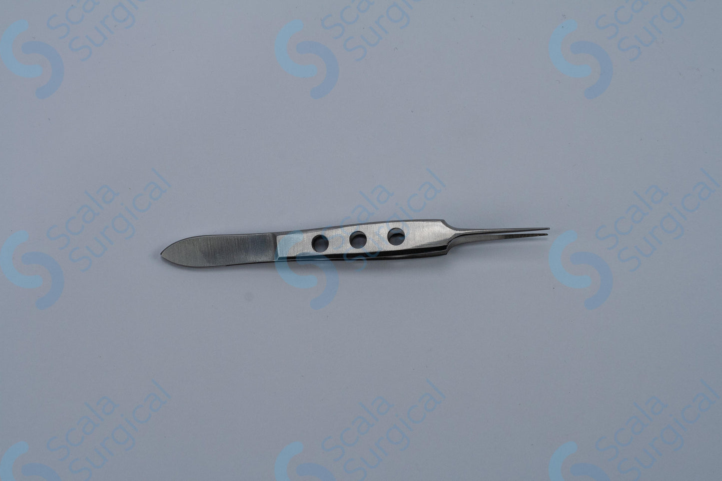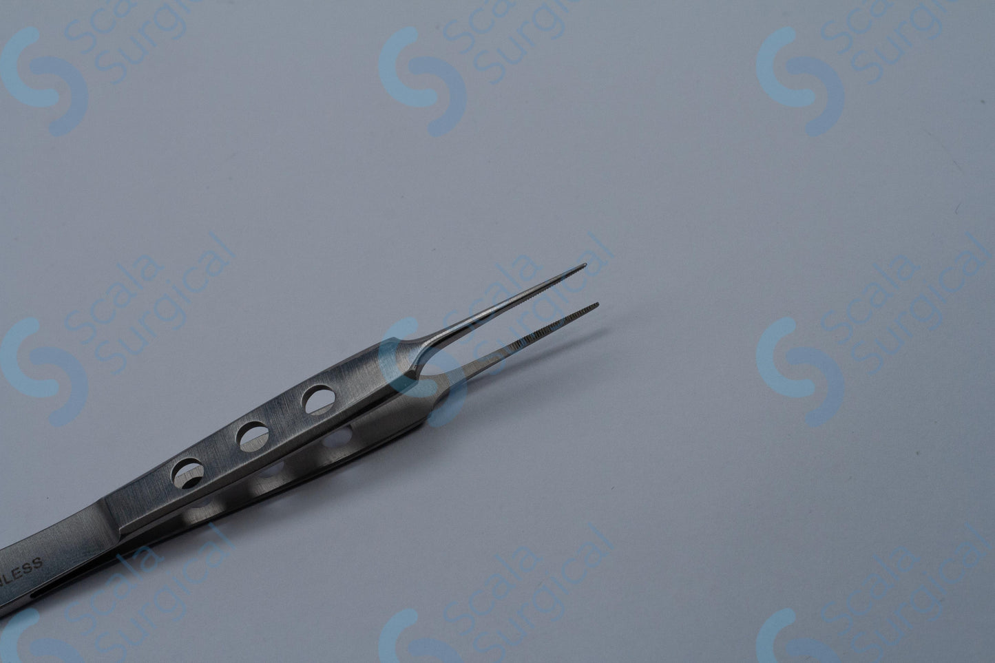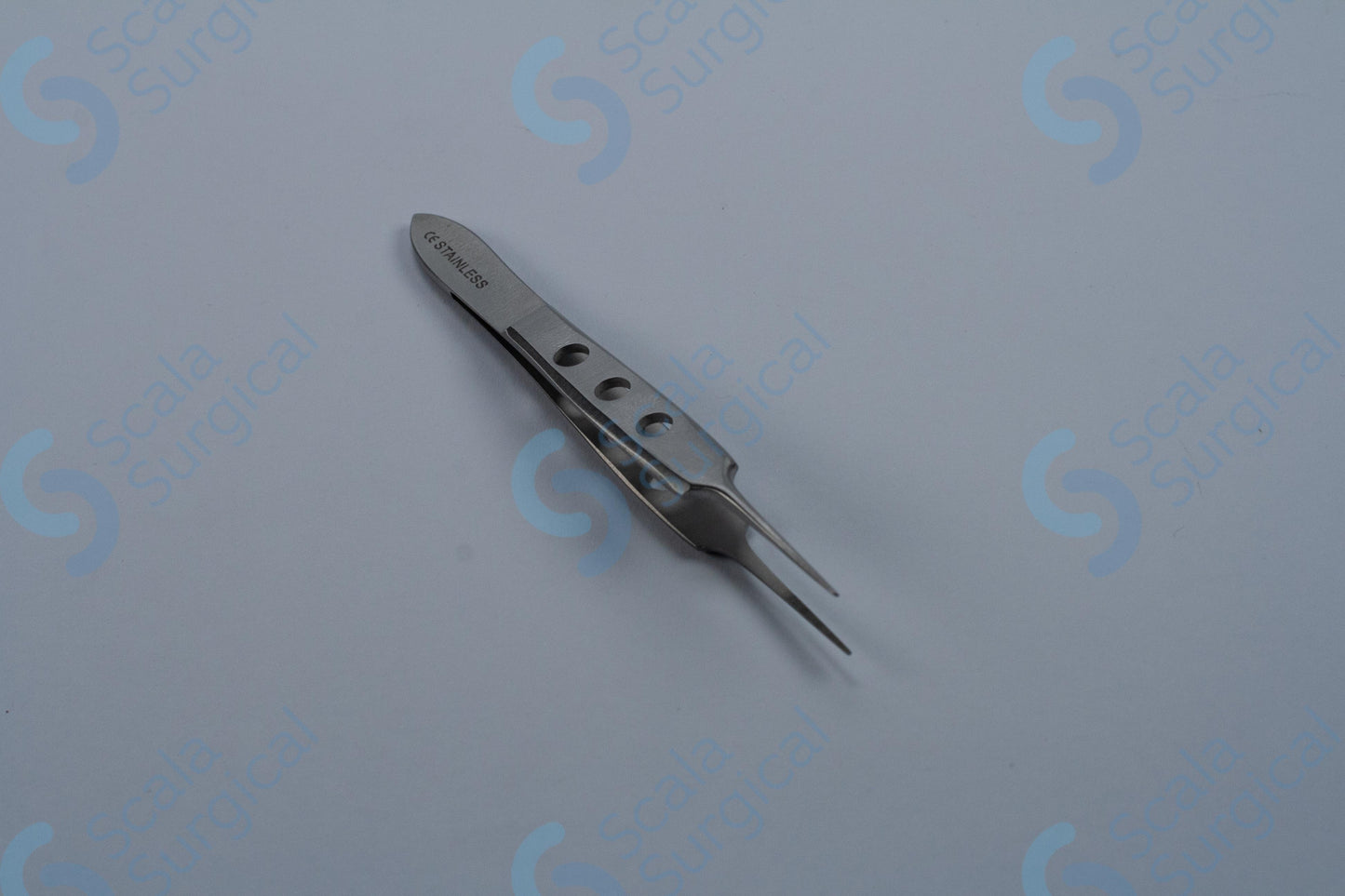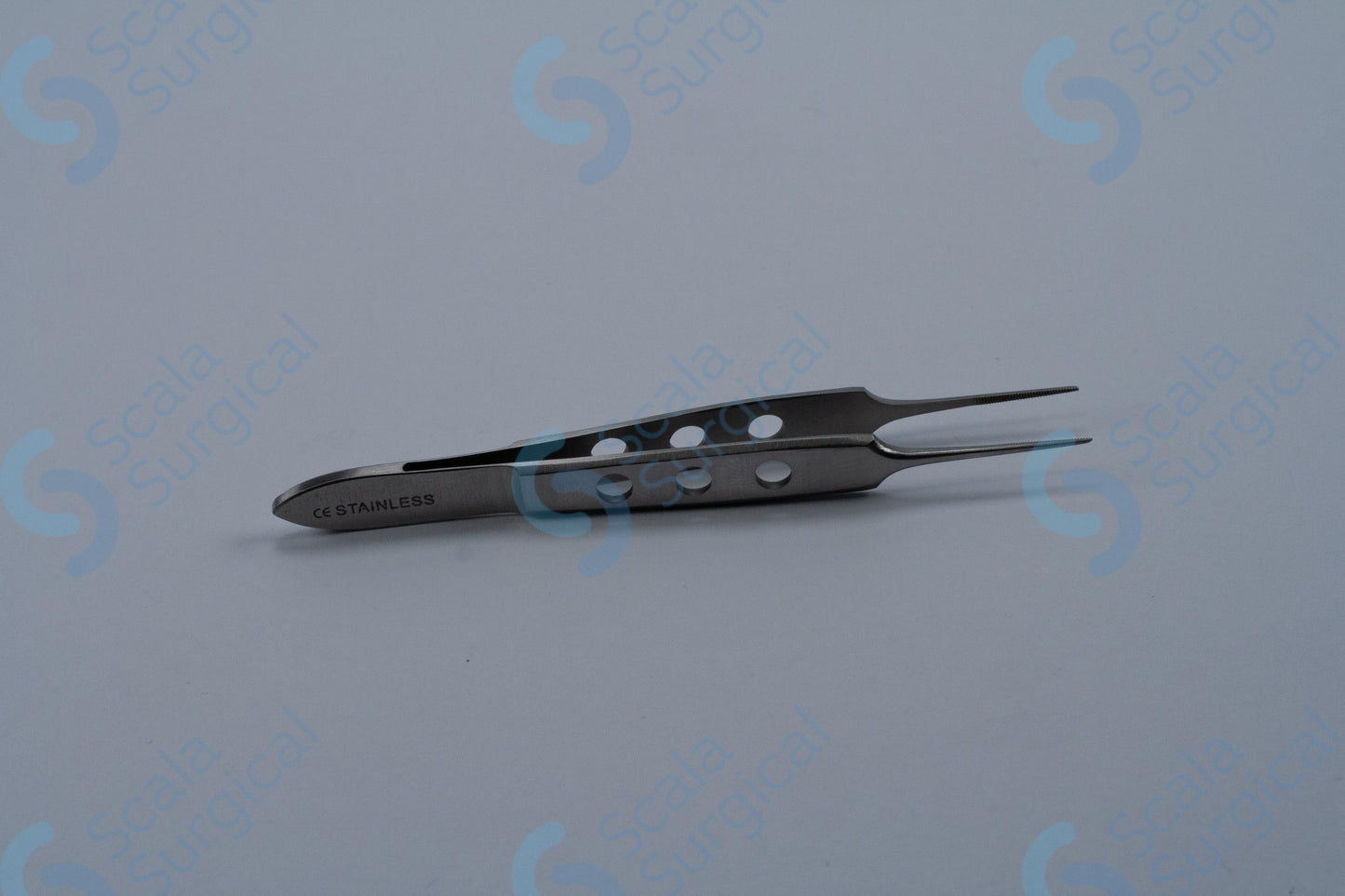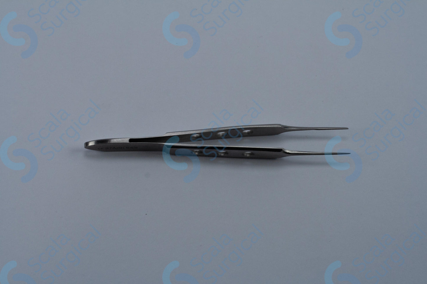 Bishop Harmon Iris Forceps are surgical instruments used to grasp, hold, and manipulate tissue during ophthalmic surgical procedures. The criss-cross serrated jaws provide a secure grip on the tissue, allowing for precise manipulation. The 82.55mm (3? inch) size is suitable for most ophthalmic procedures.