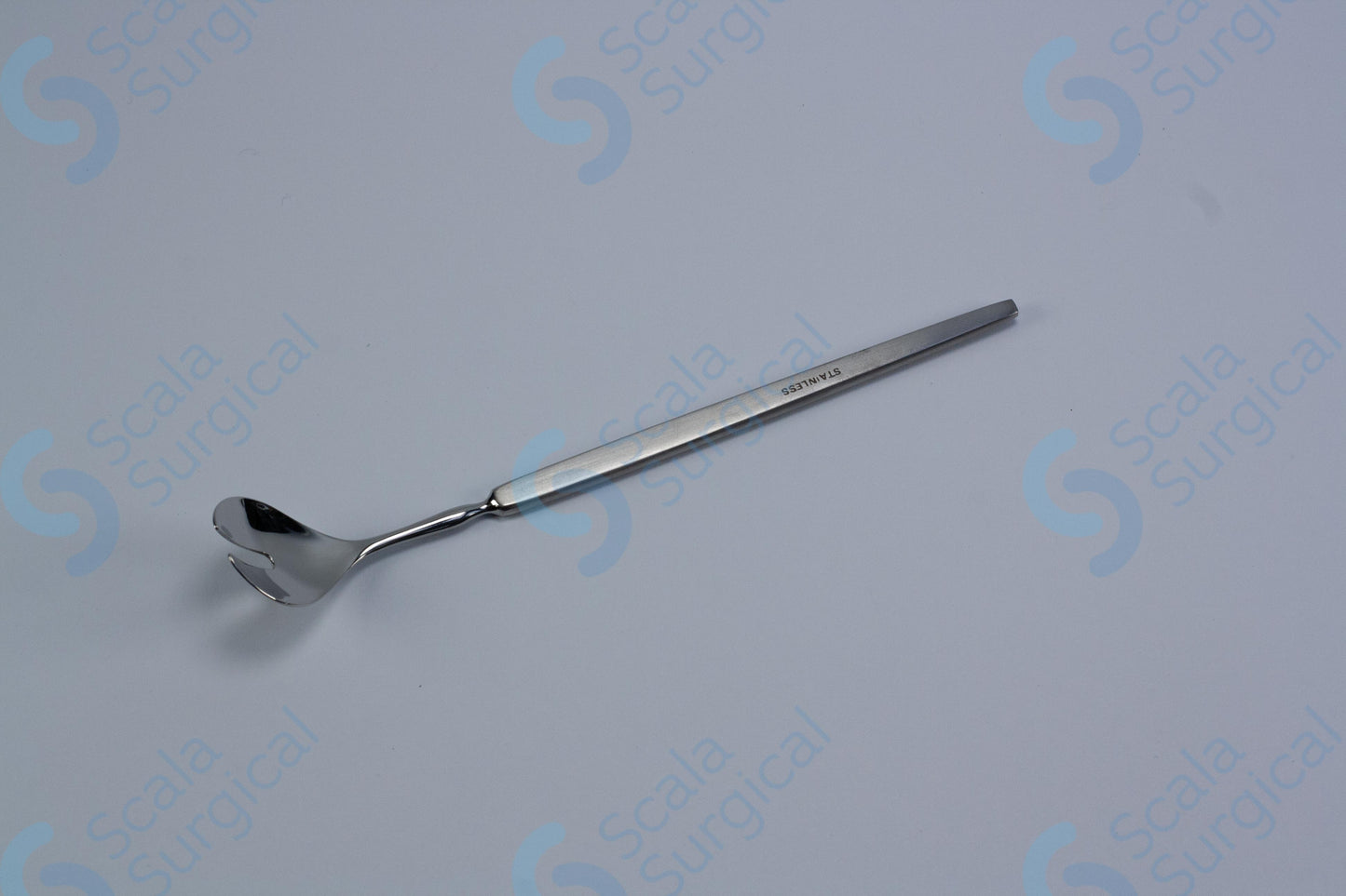 A trielates eye spatula is a tool used in ophthalmic surgery. It is used to spread and separate the eyelids to allow the surgeon to access the eye. It is also used to help remove foreign bodies from the eye.