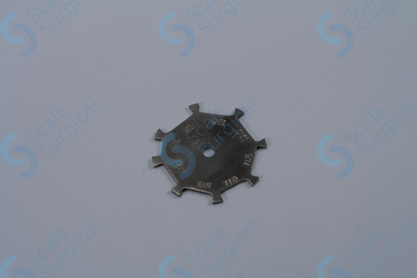 The Stahl Anterior Chamber Calliper is a surgical instrument used to measure the depth of the anterior chamber of the eye. It is used to measure the intraocular pressure and to determine the size of the anterior chamber of the eye. It is also used to measure the angle of the eye, which is important for the diagnosis and treatment of glaucoma.