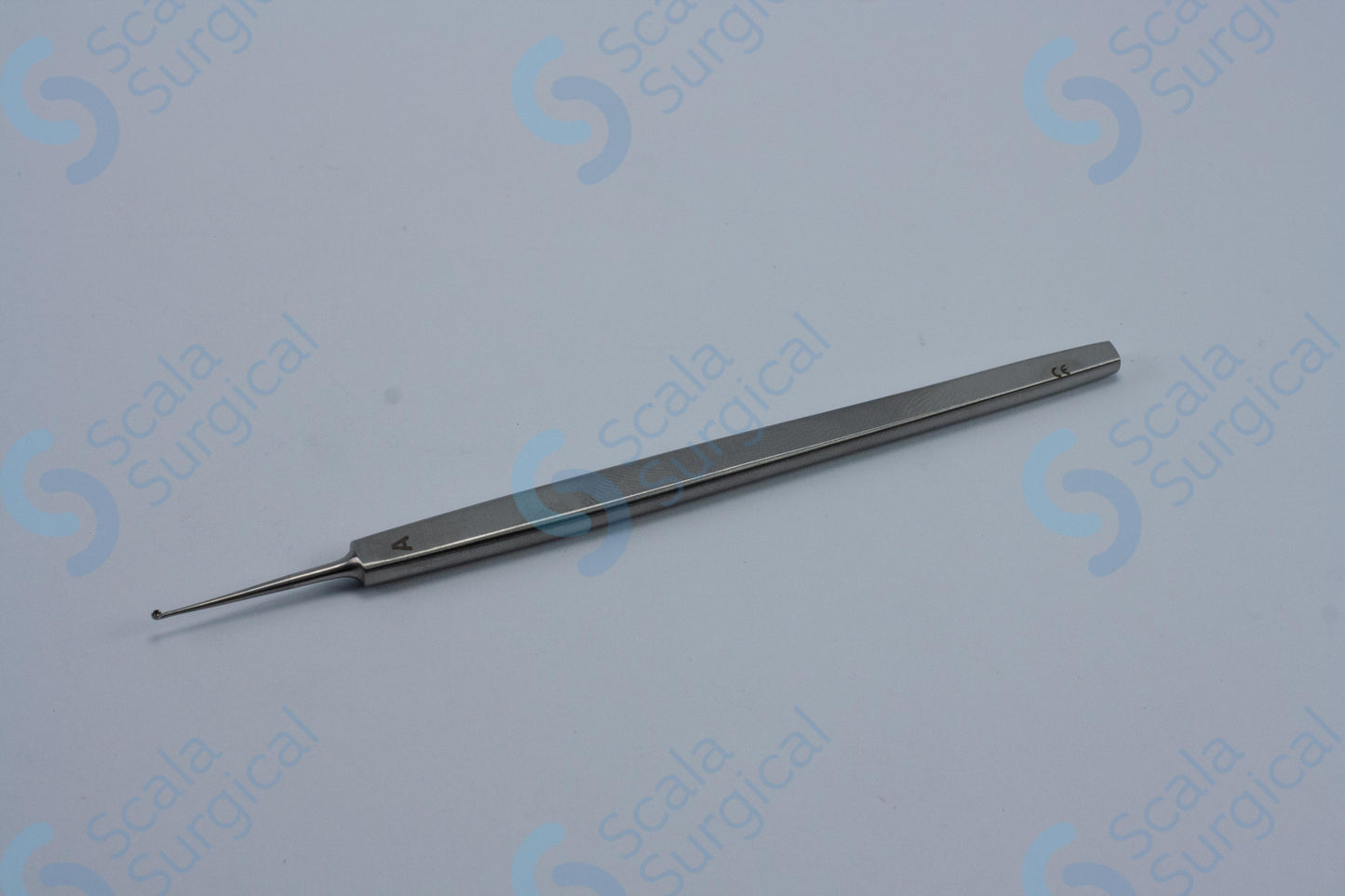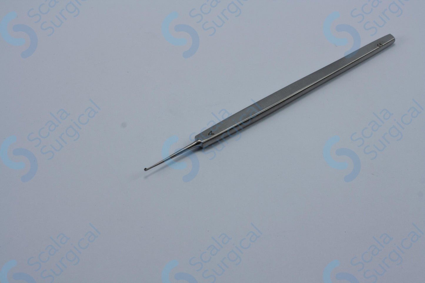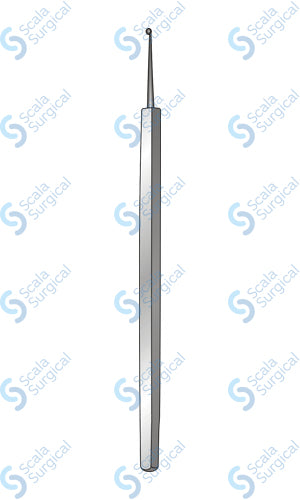 A Meyhoffer Eye Curette is a surgical instrument used to scrape or cut away tissue in the eye during ophthalmic surgery. It is typically used to remove vitreous debris, membrane, and other tissue during vitrectomy procedures.