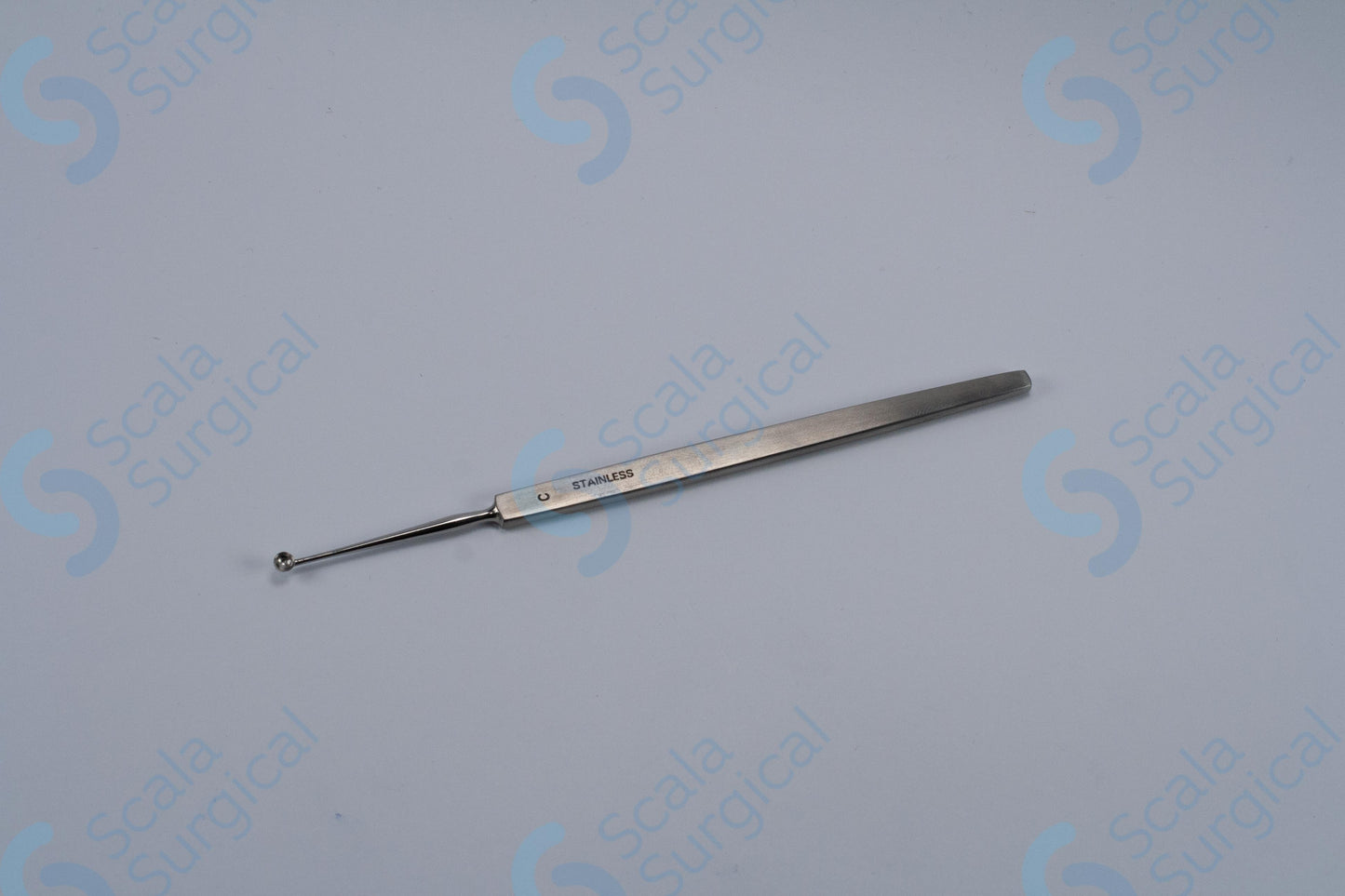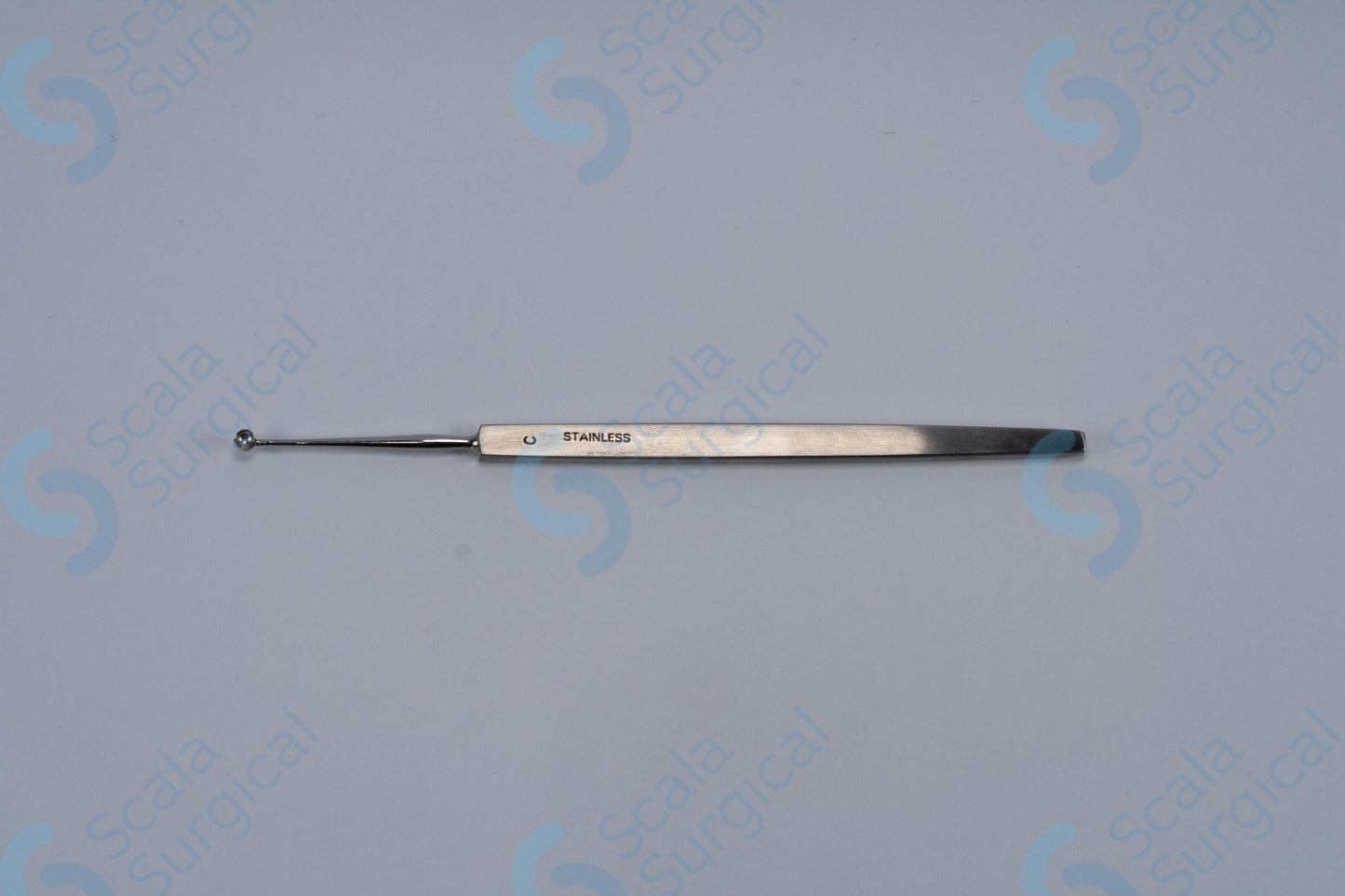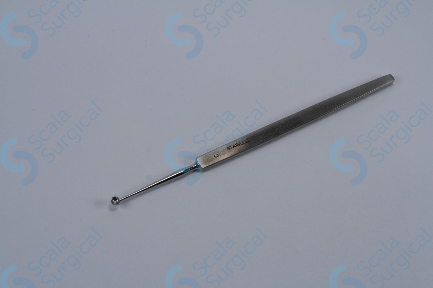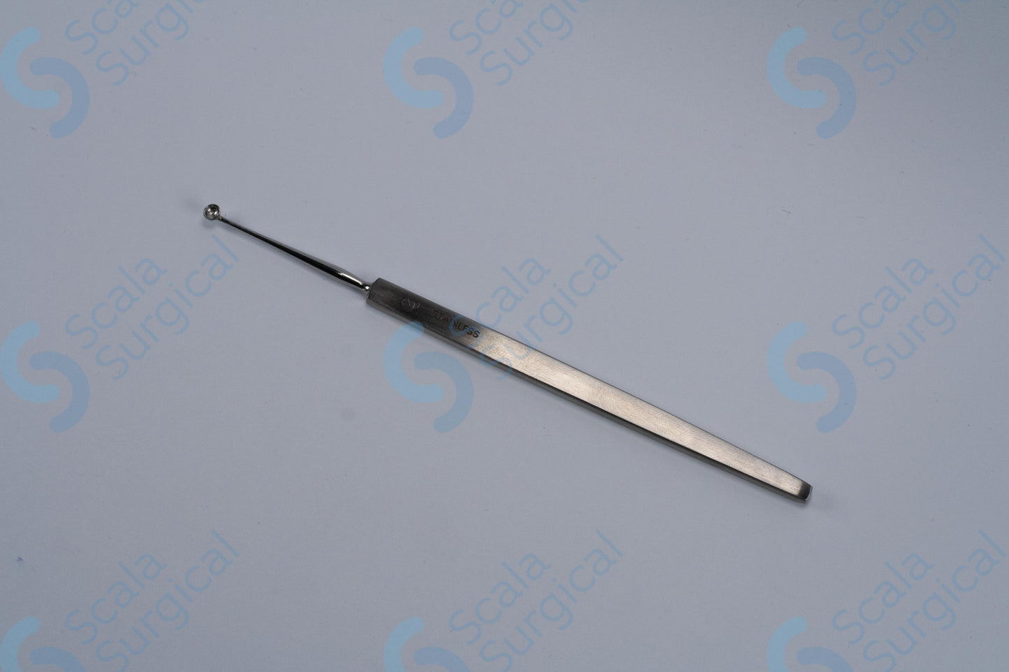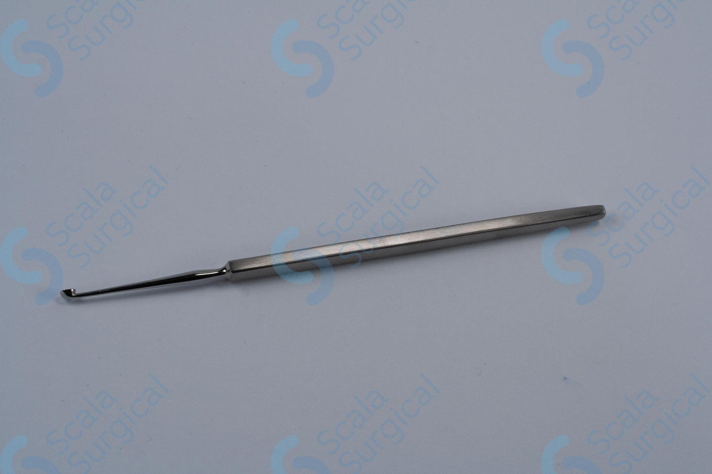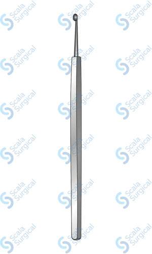 A Meyhoffer Eye Curette Size C is a surgical instrument used for scraping and removing debris from the eye. It is used in ophthalmic surgery to remove corneal deposits, exfoliate the cornea, and prepare the eye for suturing.