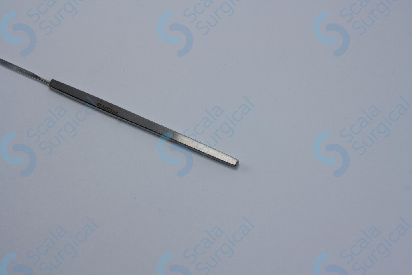 The Nettleship Iris Repositer is a surgical instrument used to hold the iris in place during cataract surgery. It is a small, curved metal instrument that is inserted into the eye and used to gently hold the iris in place while the surgeon performs the procedure.