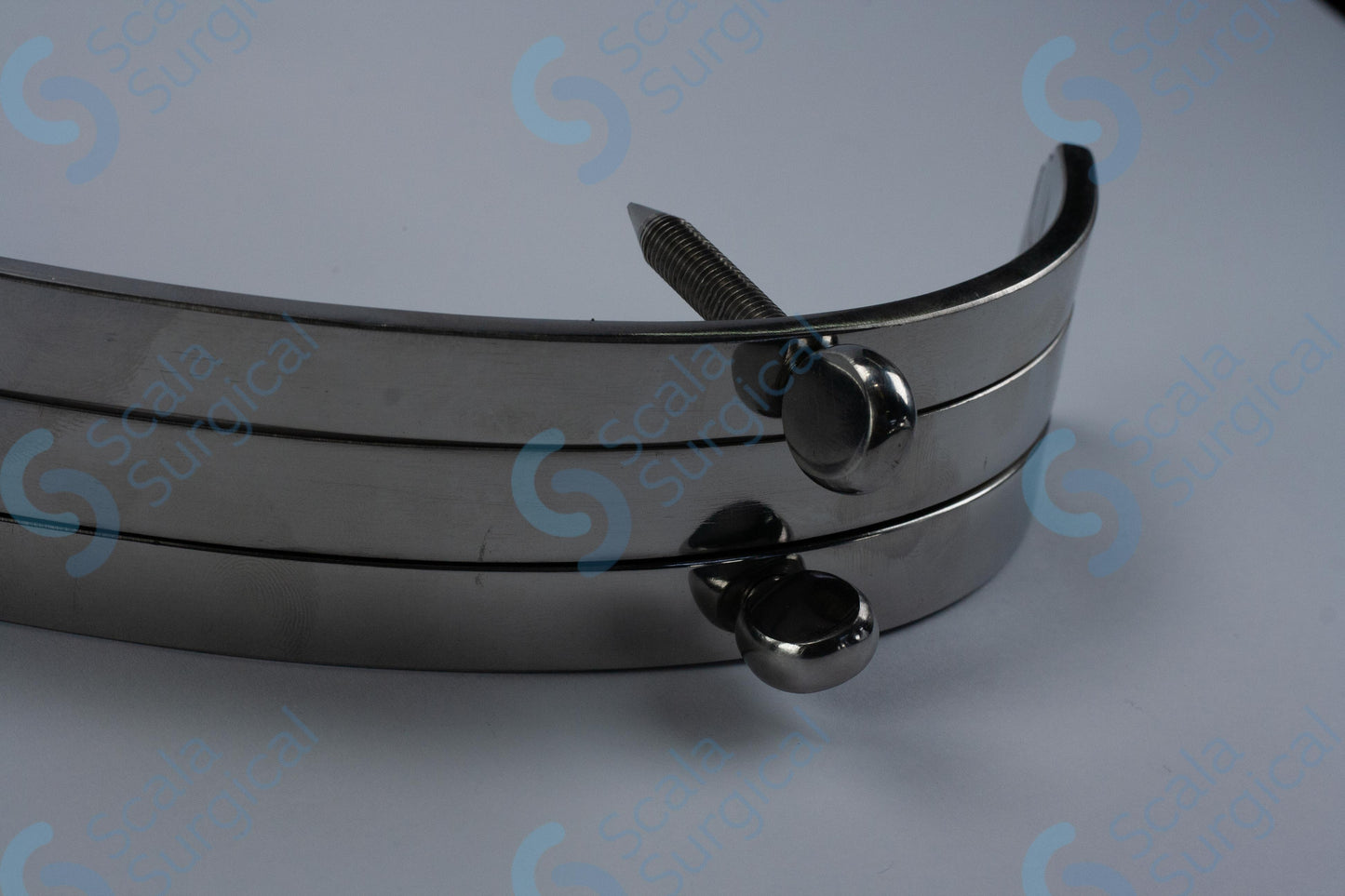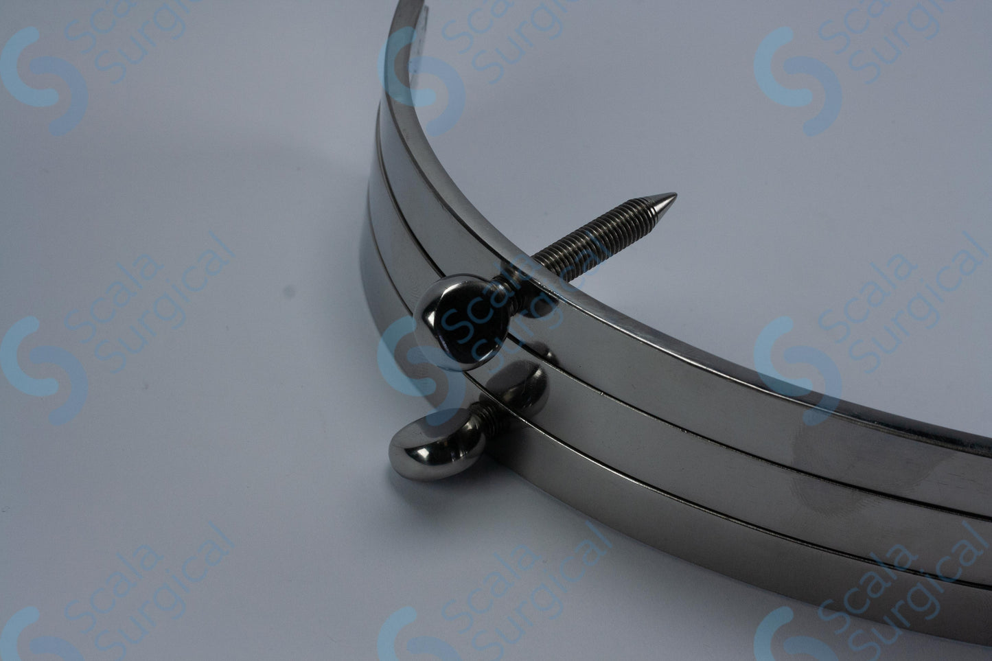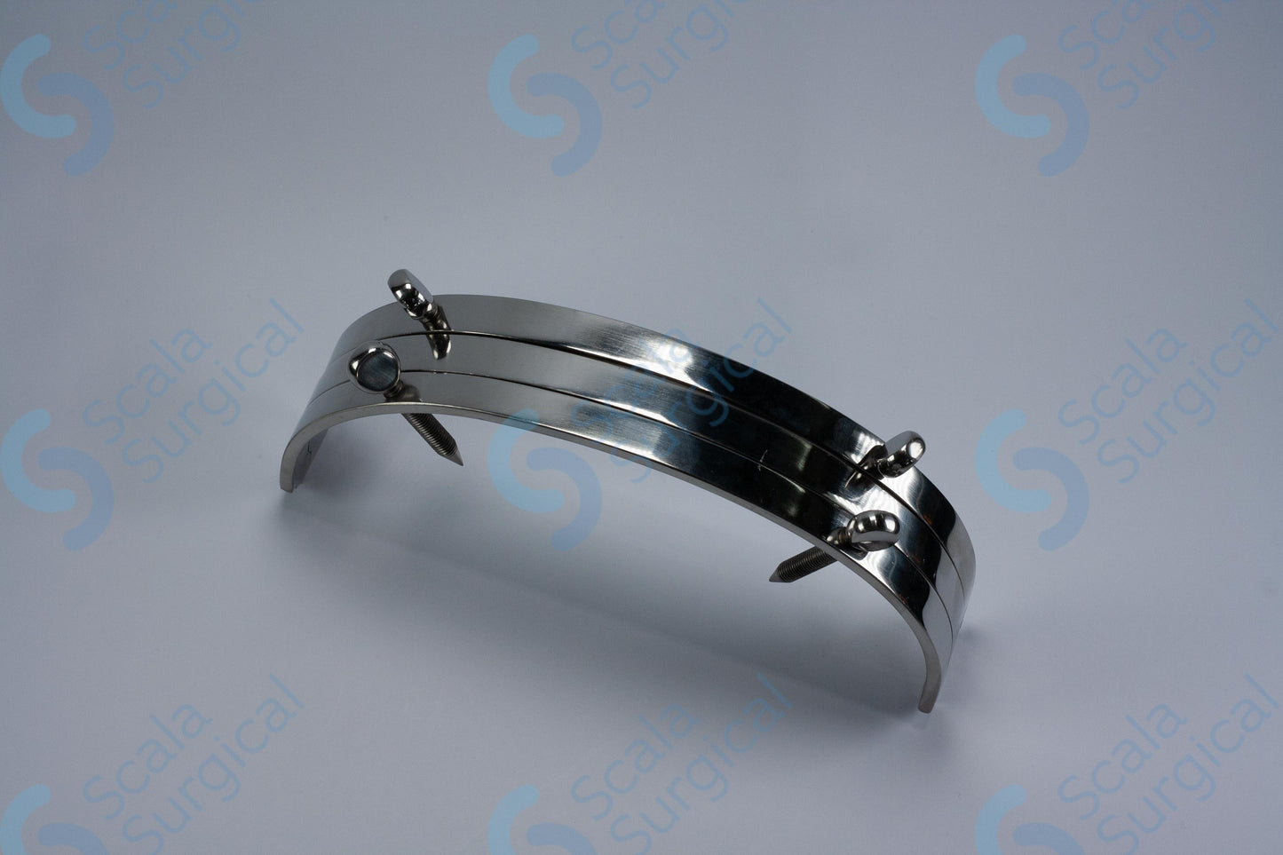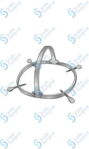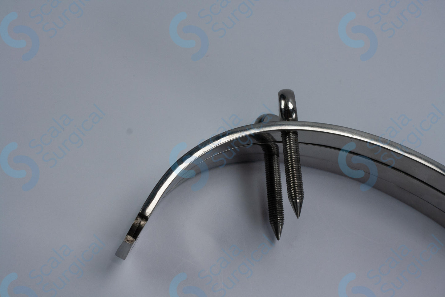 The Lunds Skull Coronet With 4 Screws is a surgical instrument used for fixation of the skull during neurosurgical procedures. It consists of four self-tapping screws that are used to secure the coronet to the skull. The instrument is used to provide a secure platform for neurosurgical procedures and to stabilize the skull during surgery.
