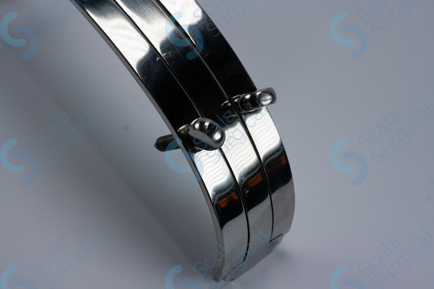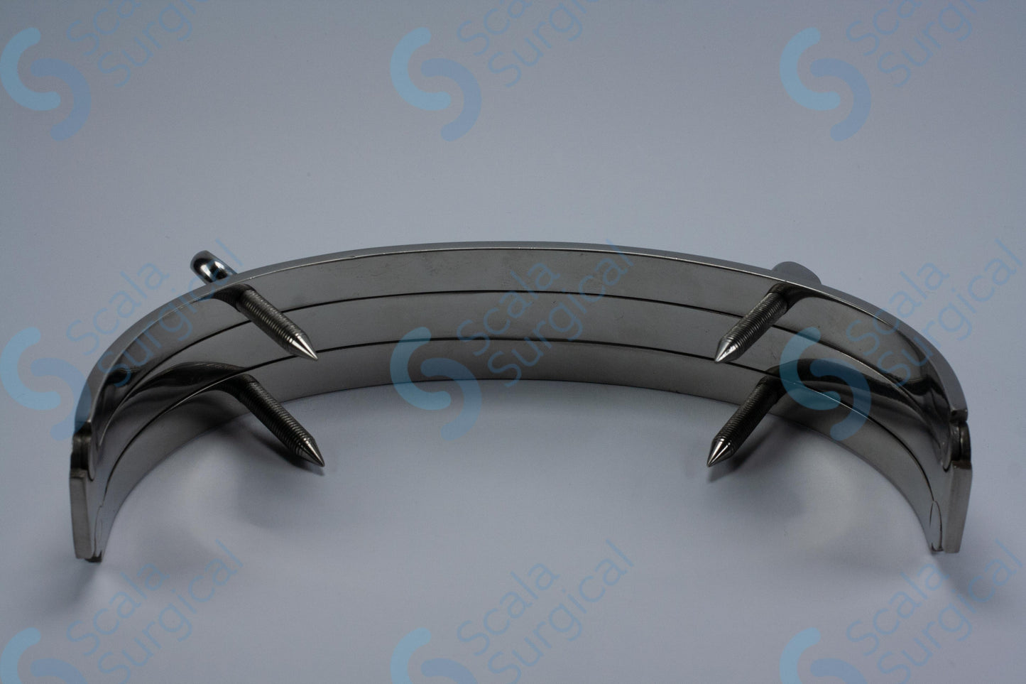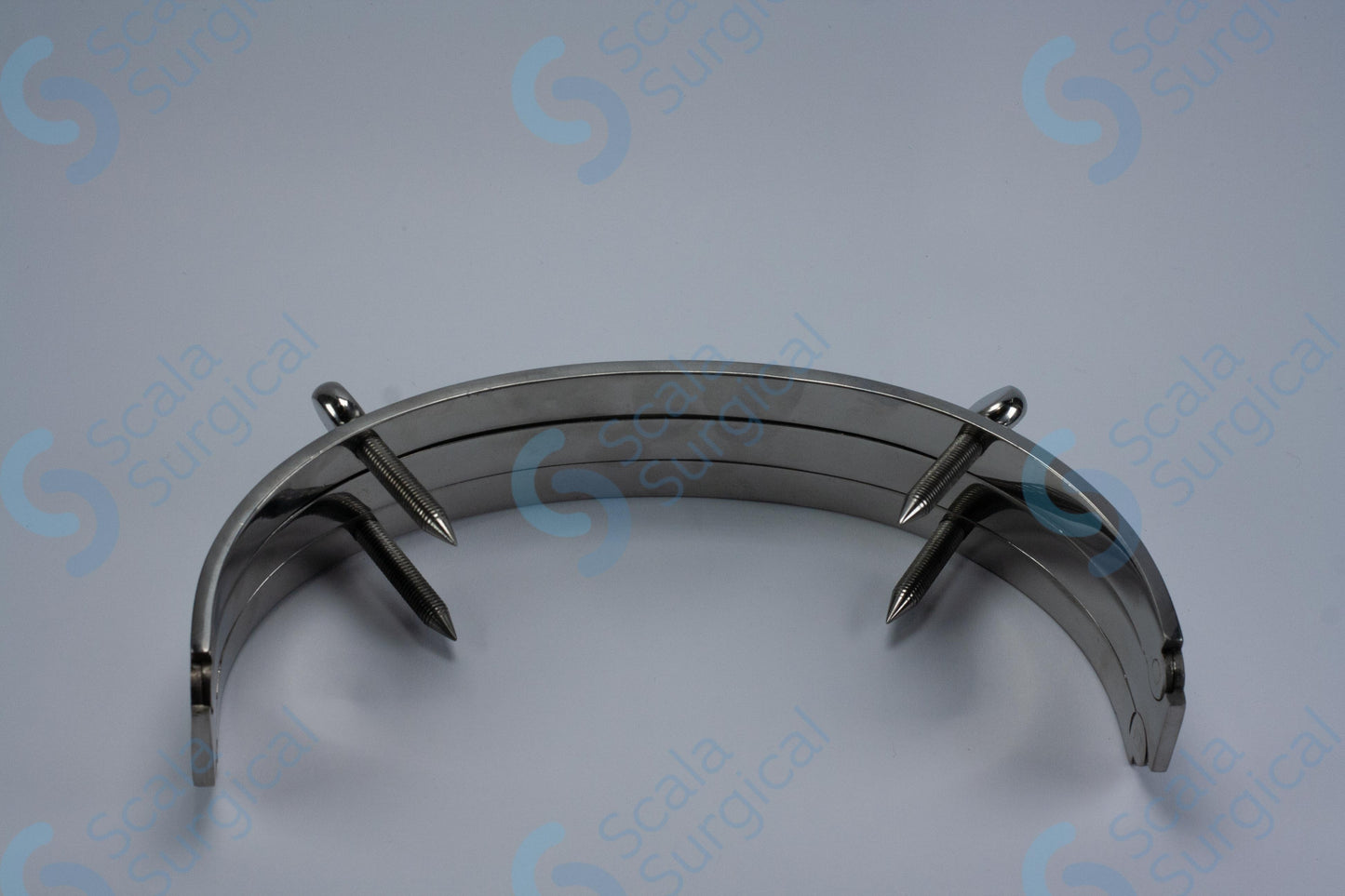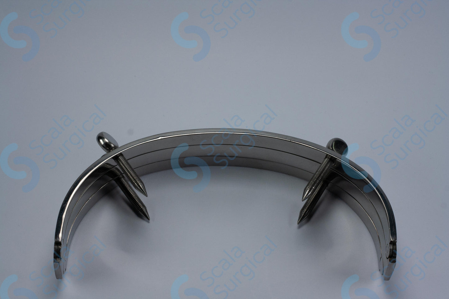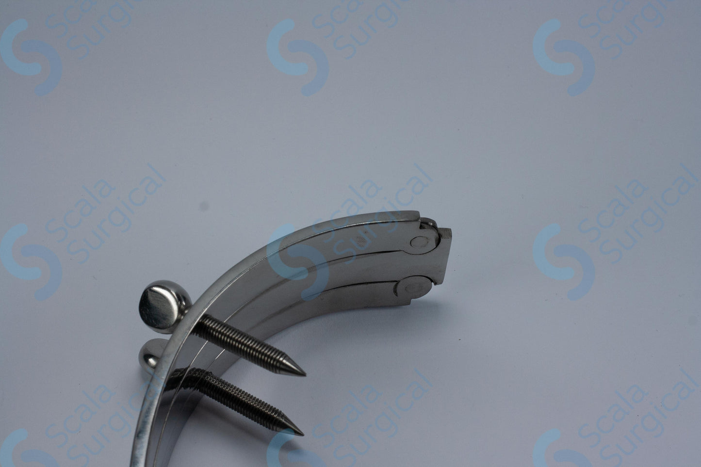 The Lunds Skull Coronet With 4 Screws is a surgical instrument used for fixation of the skull during neurosurgical procedures. It consists of four self-tapping screws that are used to secure the coronet to the skull. The instrument is used to provide a secure platform for neurosurgical procedures and to stabilize the skull during surgery.