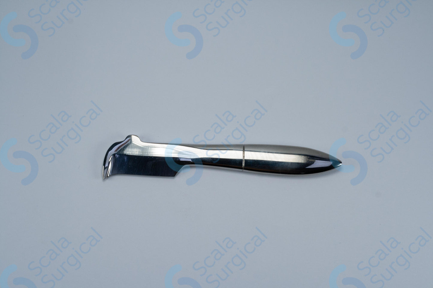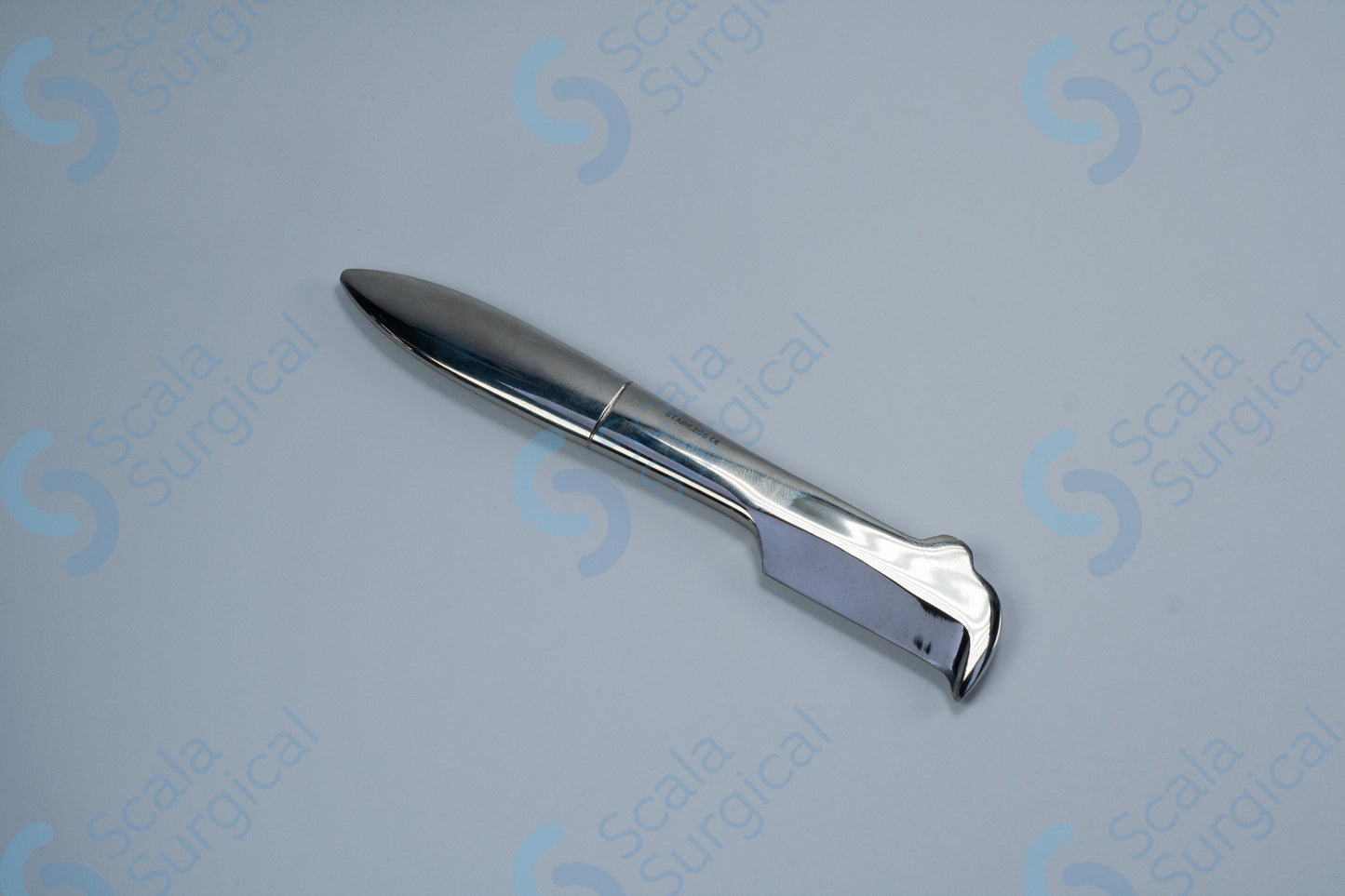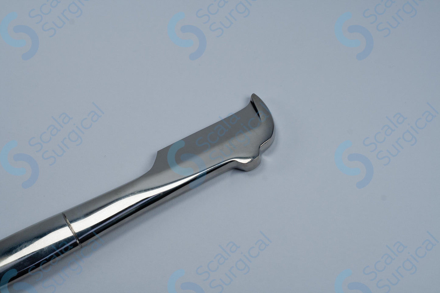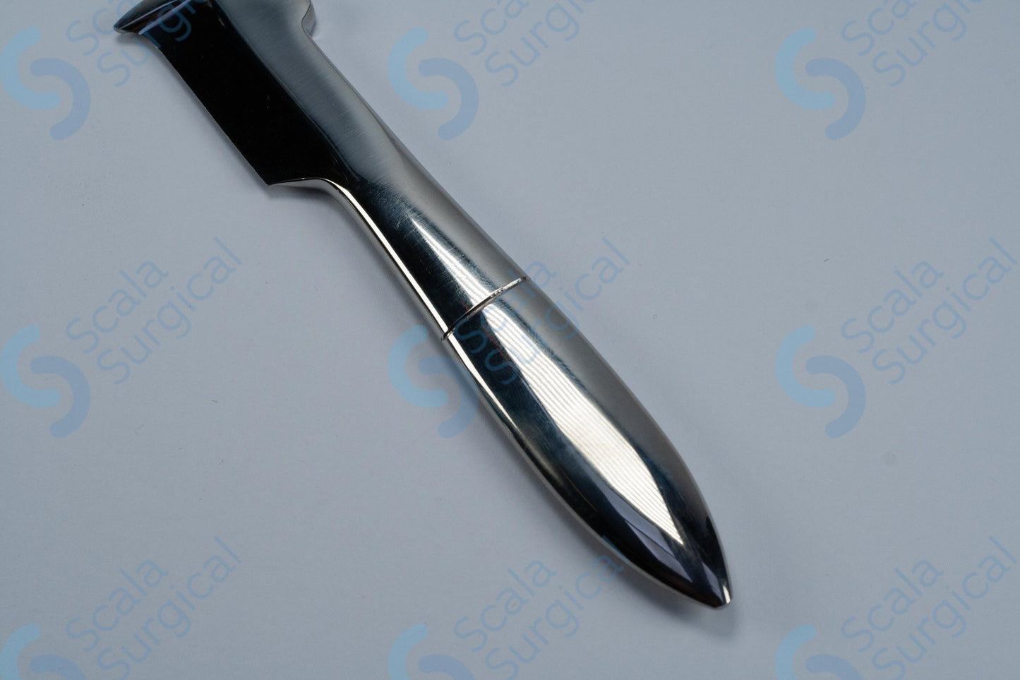A spine chisel and wrench is used to remove bone fragments and decompress the spine during a spinal fusion procedure. The 158.75mm size is used to access and manipulate the spine in order to remove the fragments.
