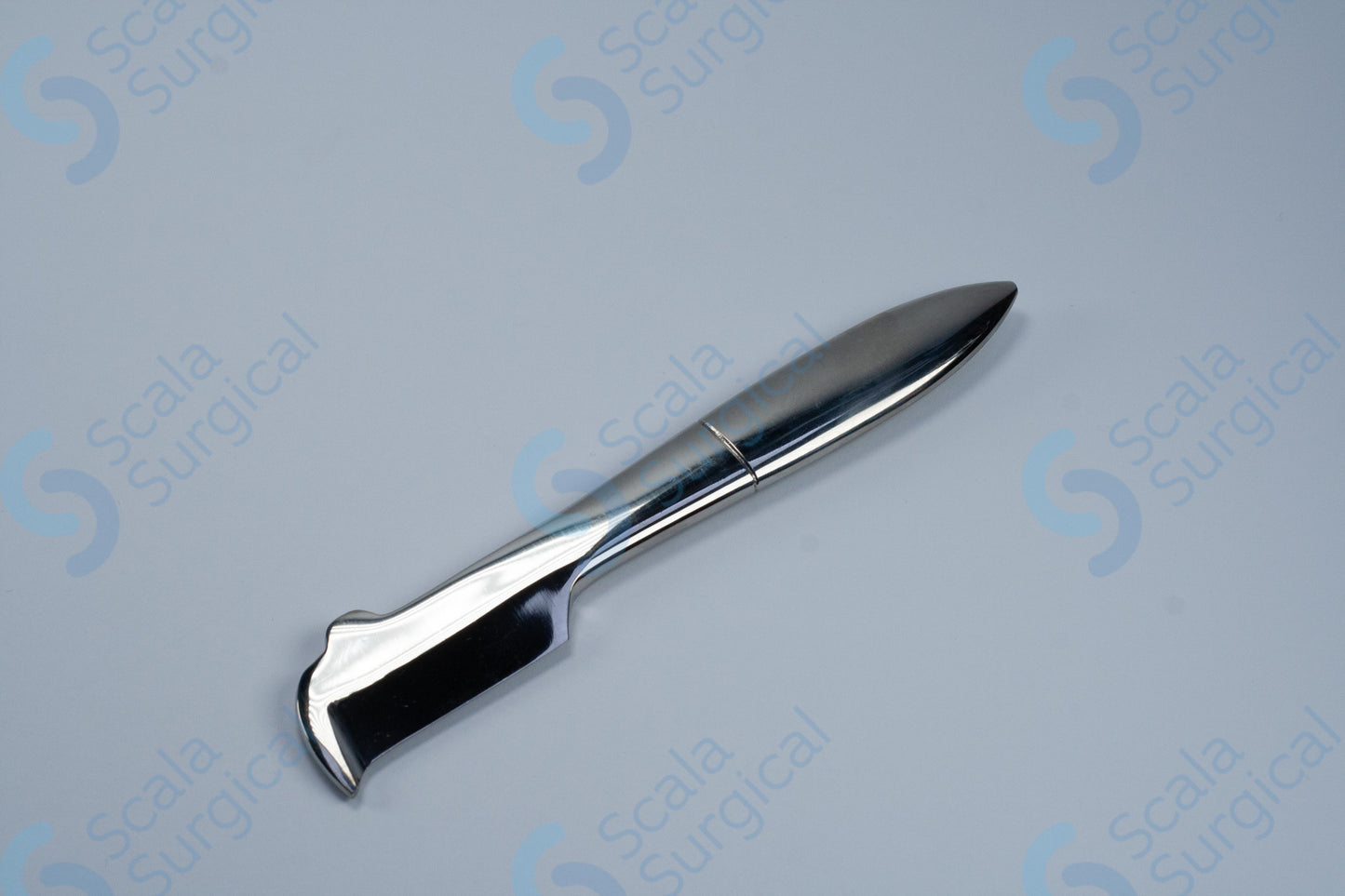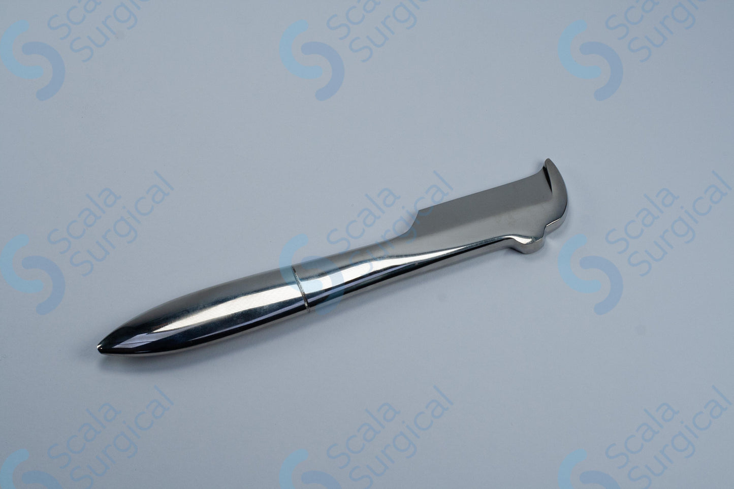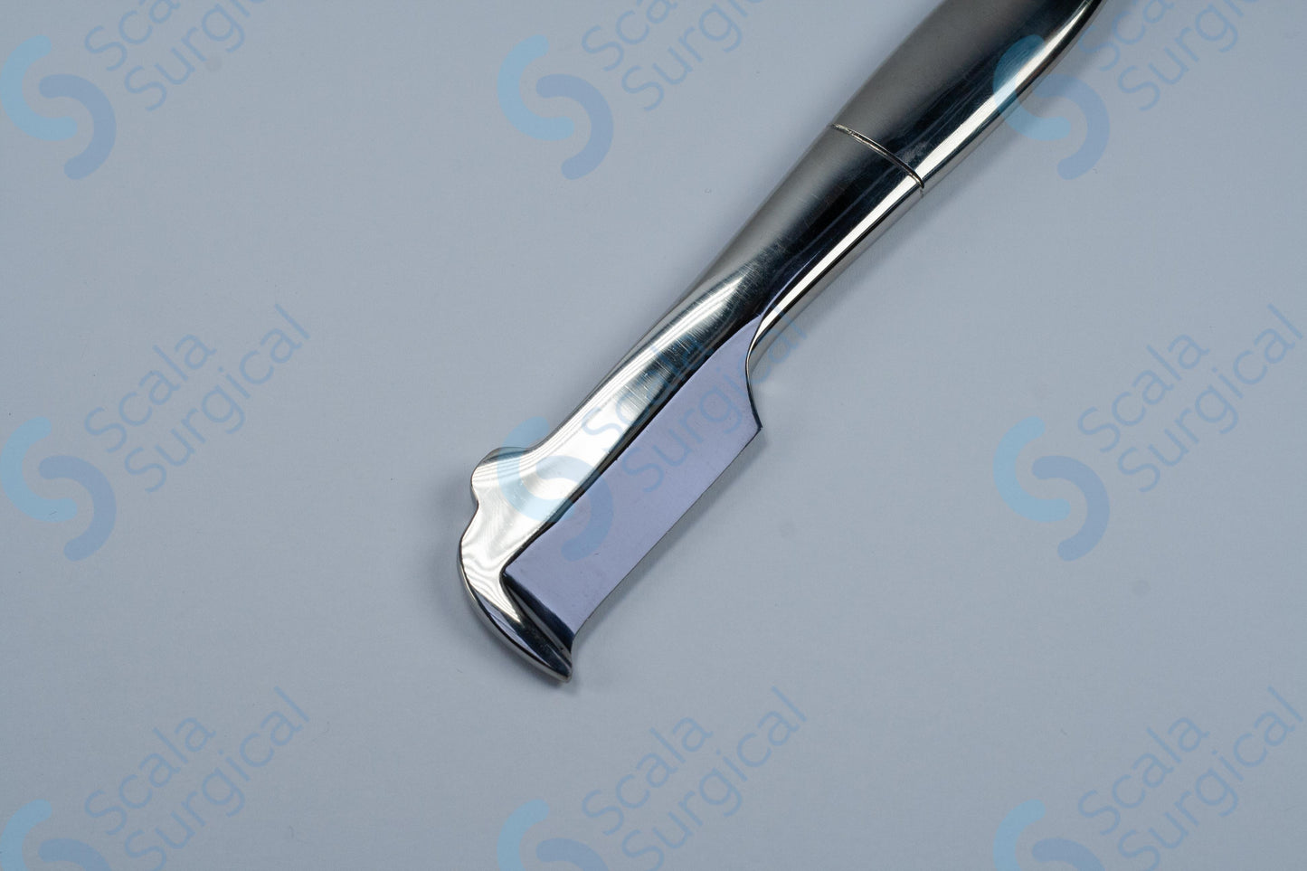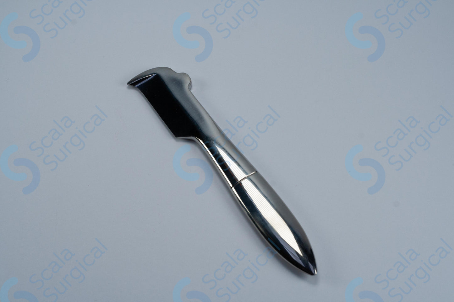 A spine chisel and wrench is used to remove bone fragments and decompress the spine during a spinal fusion procedure. The 158.75mm size is used to access and manipulate the spine in order to remove the fragments.