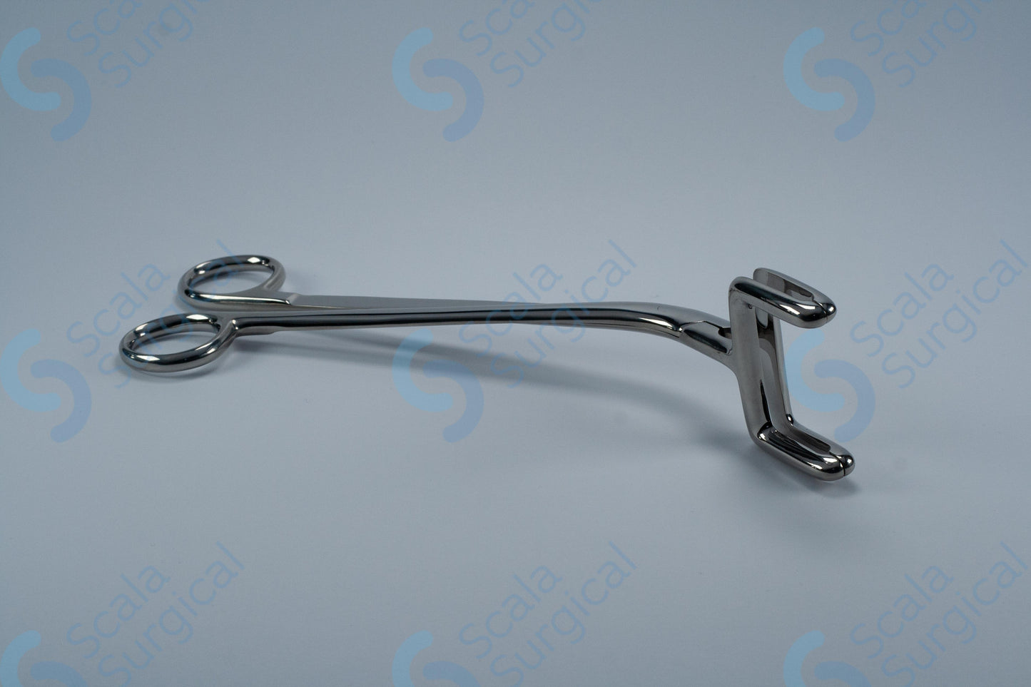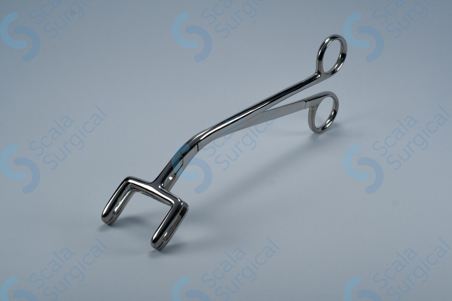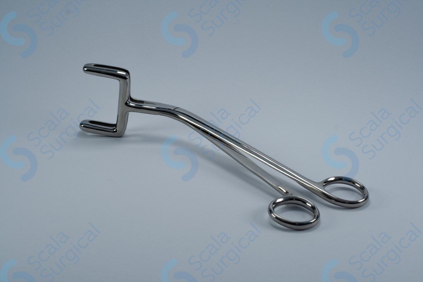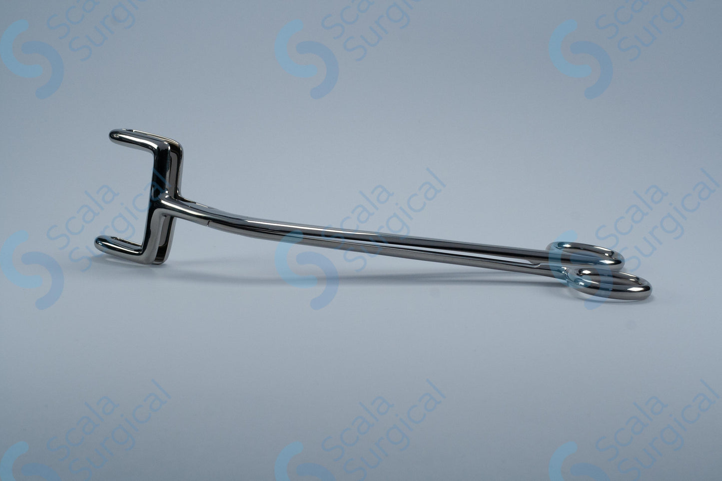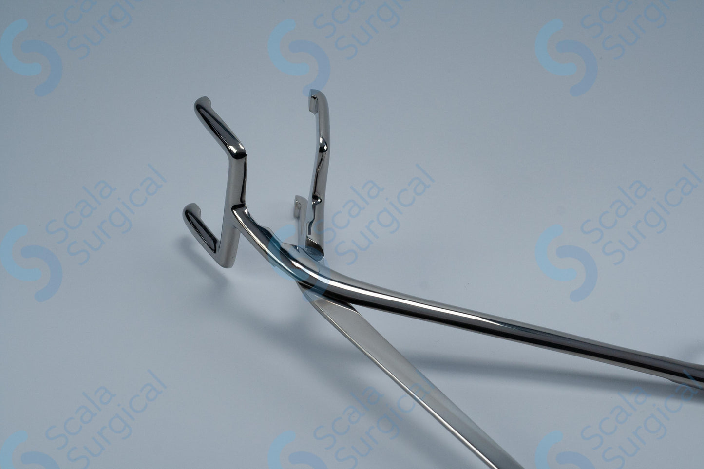 Harrison Sterilising Forceps Screw Joint With Ring & Hook (254mm) (10 inch) is a surgical instrument used to hold tissue or organs in place during a surgical procedure. It is typically used during endoscopic or laparoscopic procedures. The forceps can be adjusted to the desired length and has a locking mechanism to keep it in place. The ring and hook provide additional stability and control during the procedure.