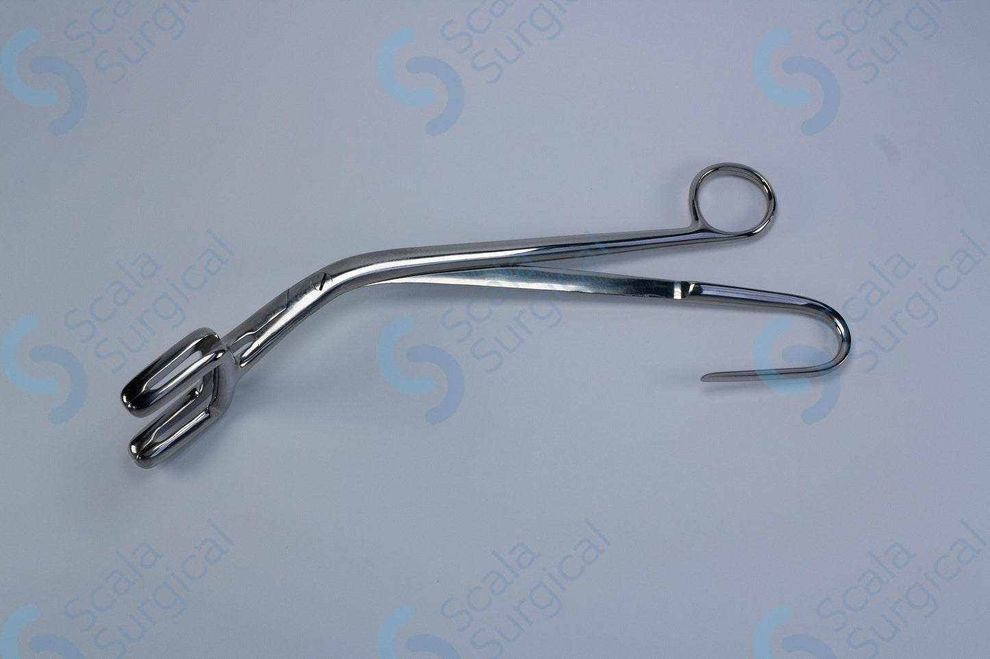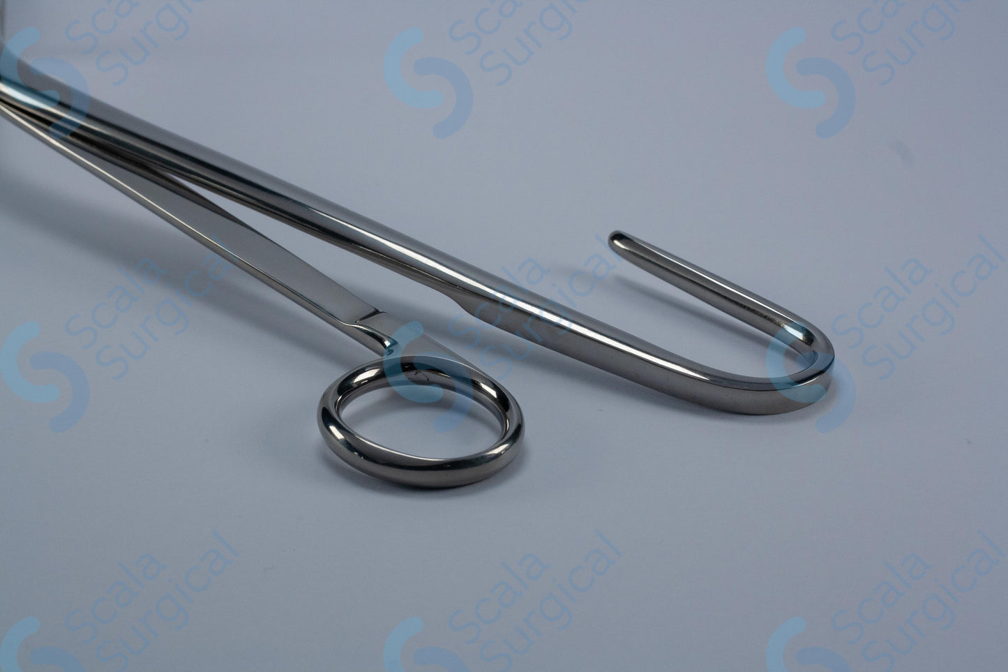 Harrison Sterilising Forceps Screw Joint With Ring & Hook (304.8mm) (12 inch) is a surgical instrument used to hold and manipulate tissue during a surgical procedure. The forceps have a screw joint that allows the two halves of the forceps to be locked together for a secure grip. The ring and hook design of the forceps allow for a secure grip on tissue and are often used for dissecting, grasping, and clamping.