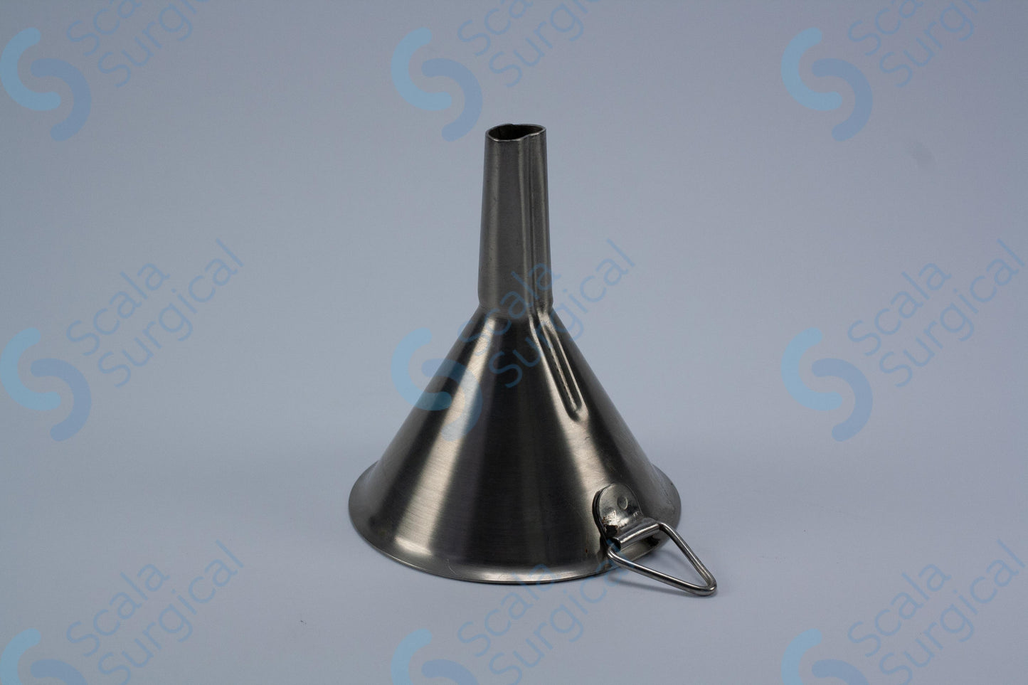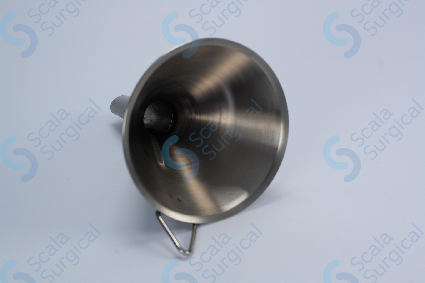 A funnel of this size is typically used in the surgical field to collect and transfer fluids and other materials. It is often used to transfer fluids from one container to another, or to collect fluids from a wound or incision site.