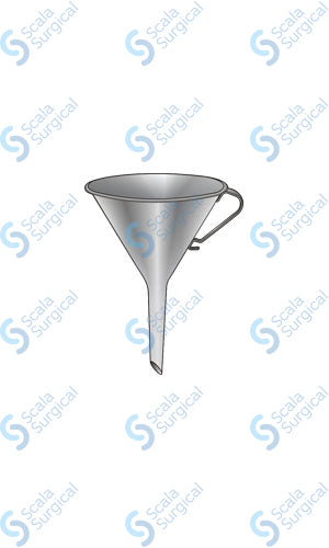 A funnel of this size is typically used in the surgical field to help direct fluids and other materials into a container or other vessel. It can also be used to assist with transferring materials from one container to another.
