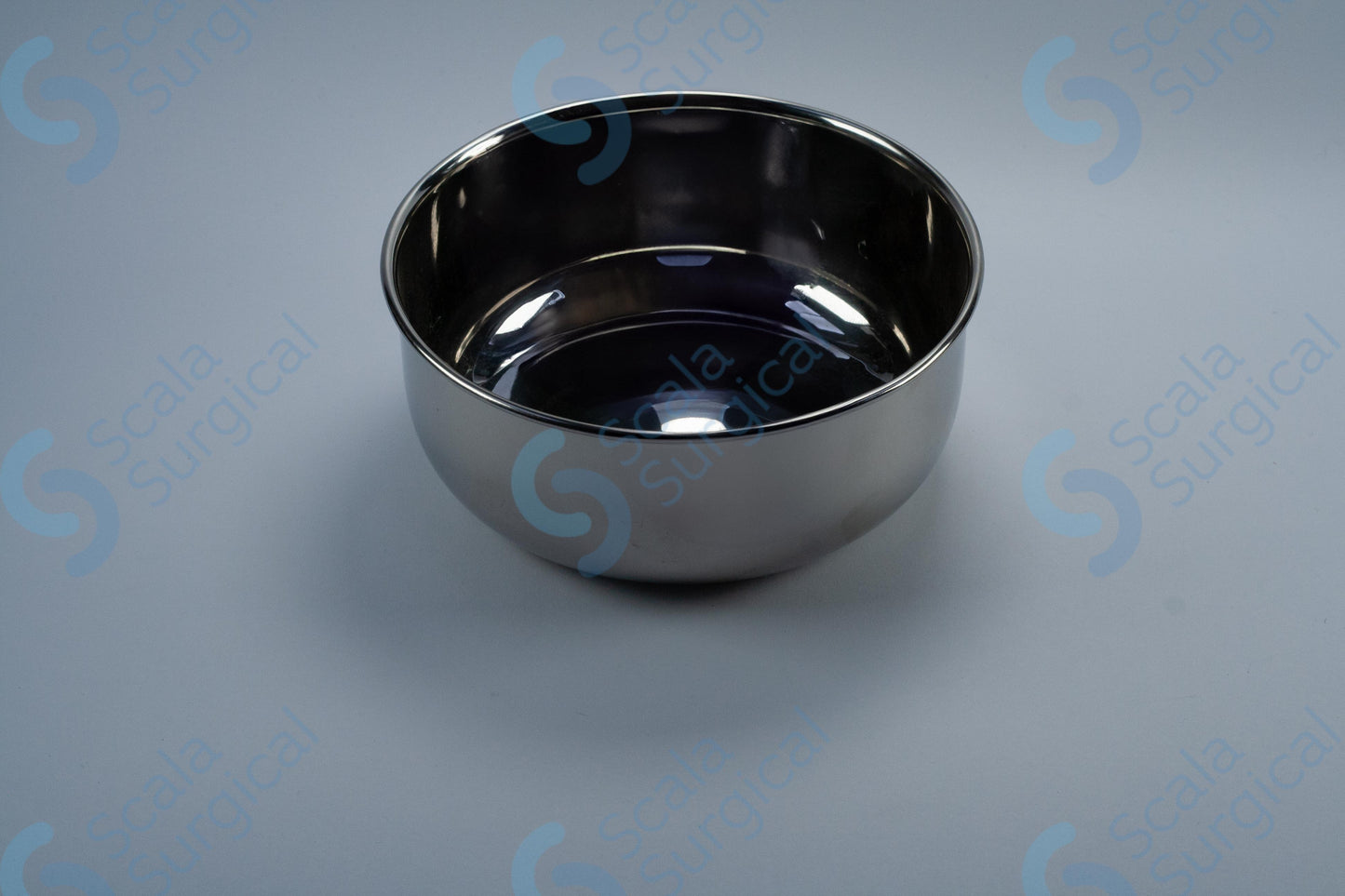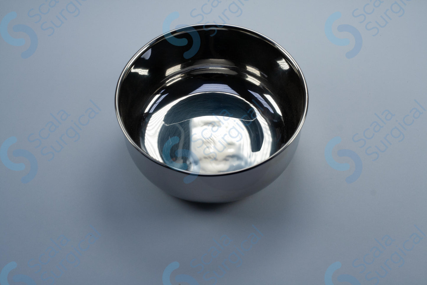 A lotion bowl is a device used to hold lotion or antiseptic solution for use in surgical procedures. It is typically made of stainless steel and is used to dip instruments into the solution to ensure proper sterilization. The size of the bowl is typically measured in millimeters or inches and indicates the diameter of the bowl.