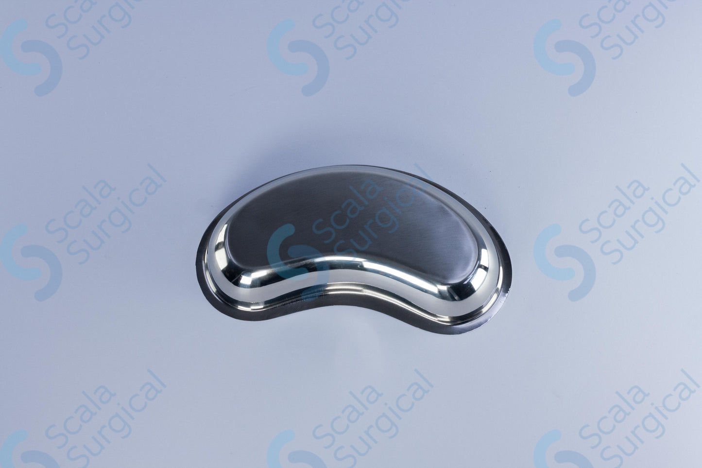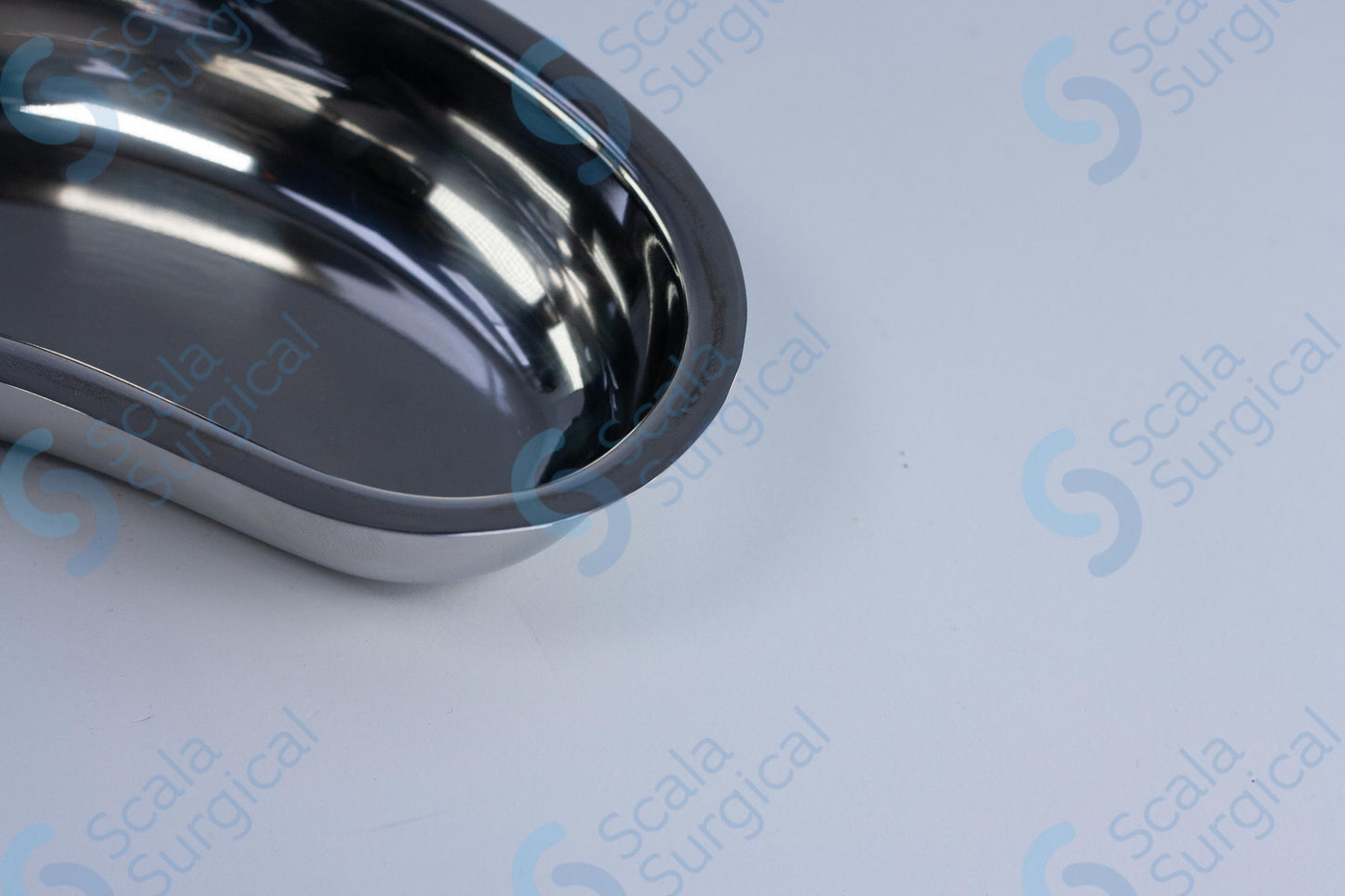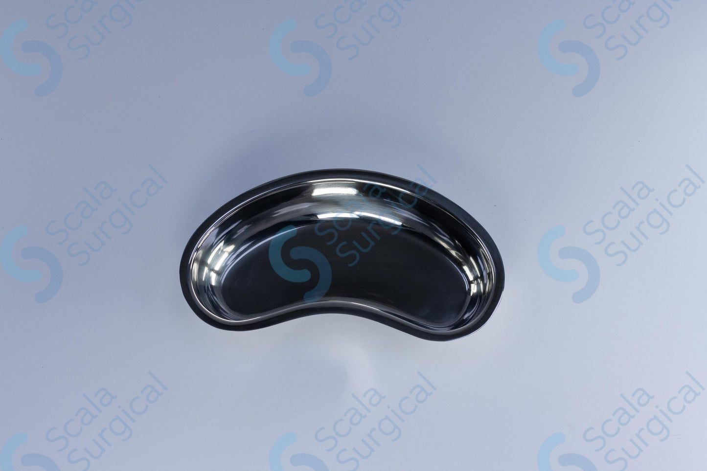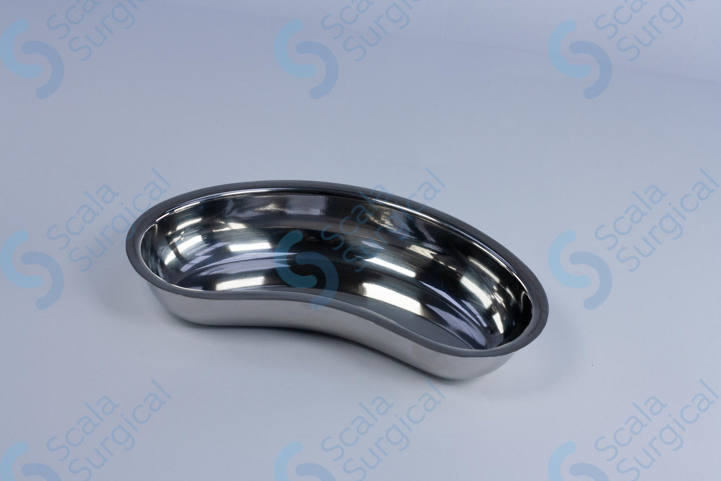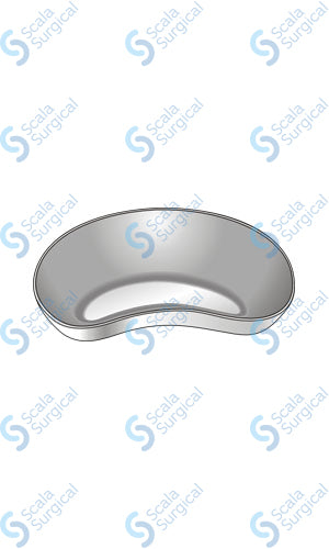 A kidney dish with a flat base and straight edges without a lid is used to collect and contain medical waste. It is typically used to hold organs and other materials removed during a surgical procedure. The 203.2mm (8 inch) size is typically used for larger items.