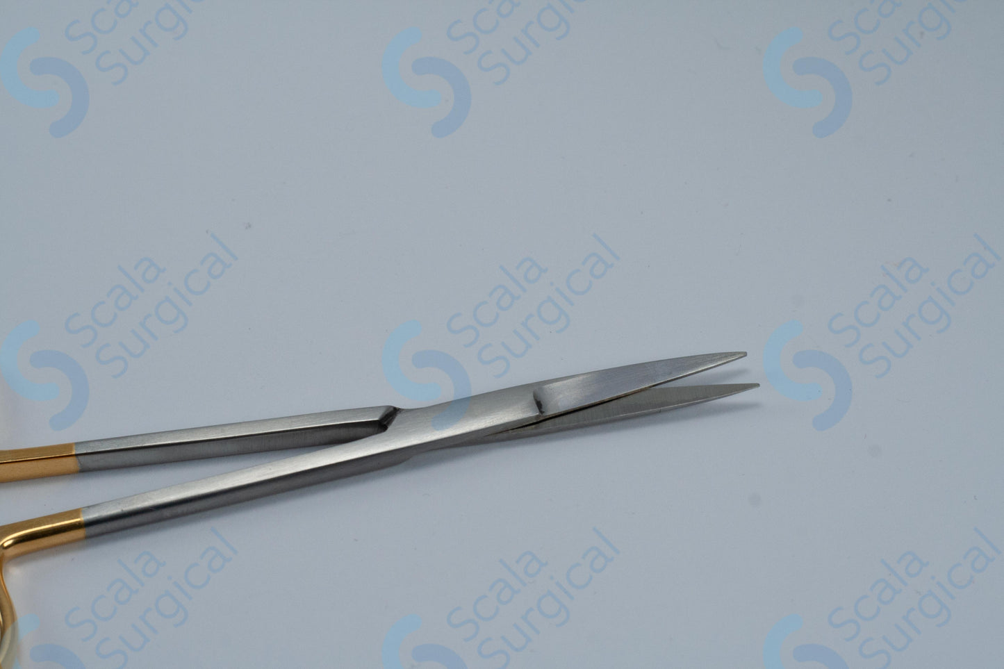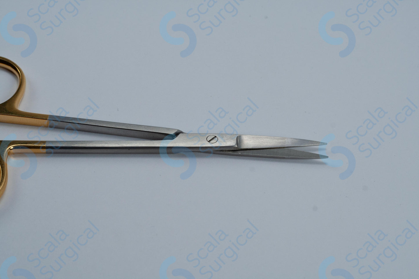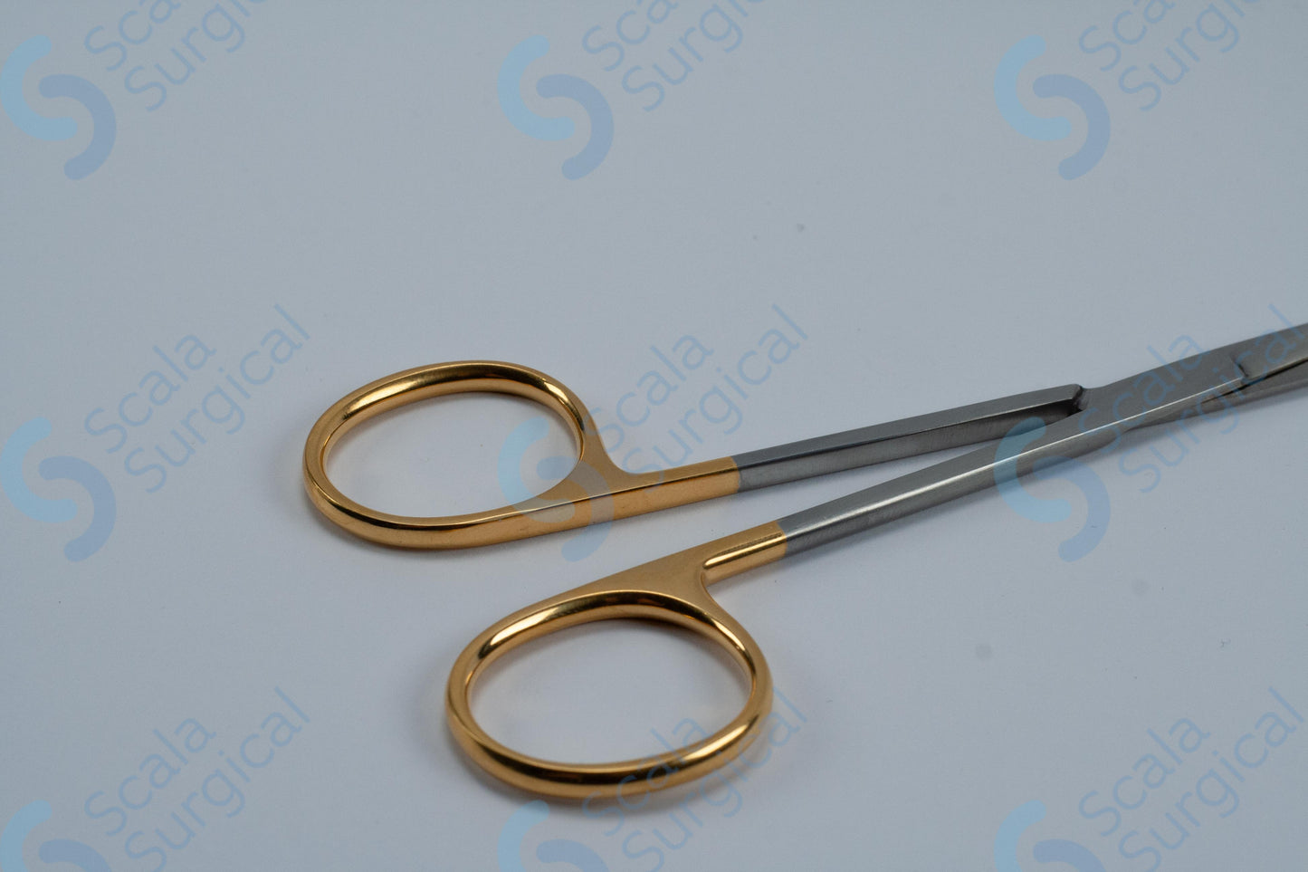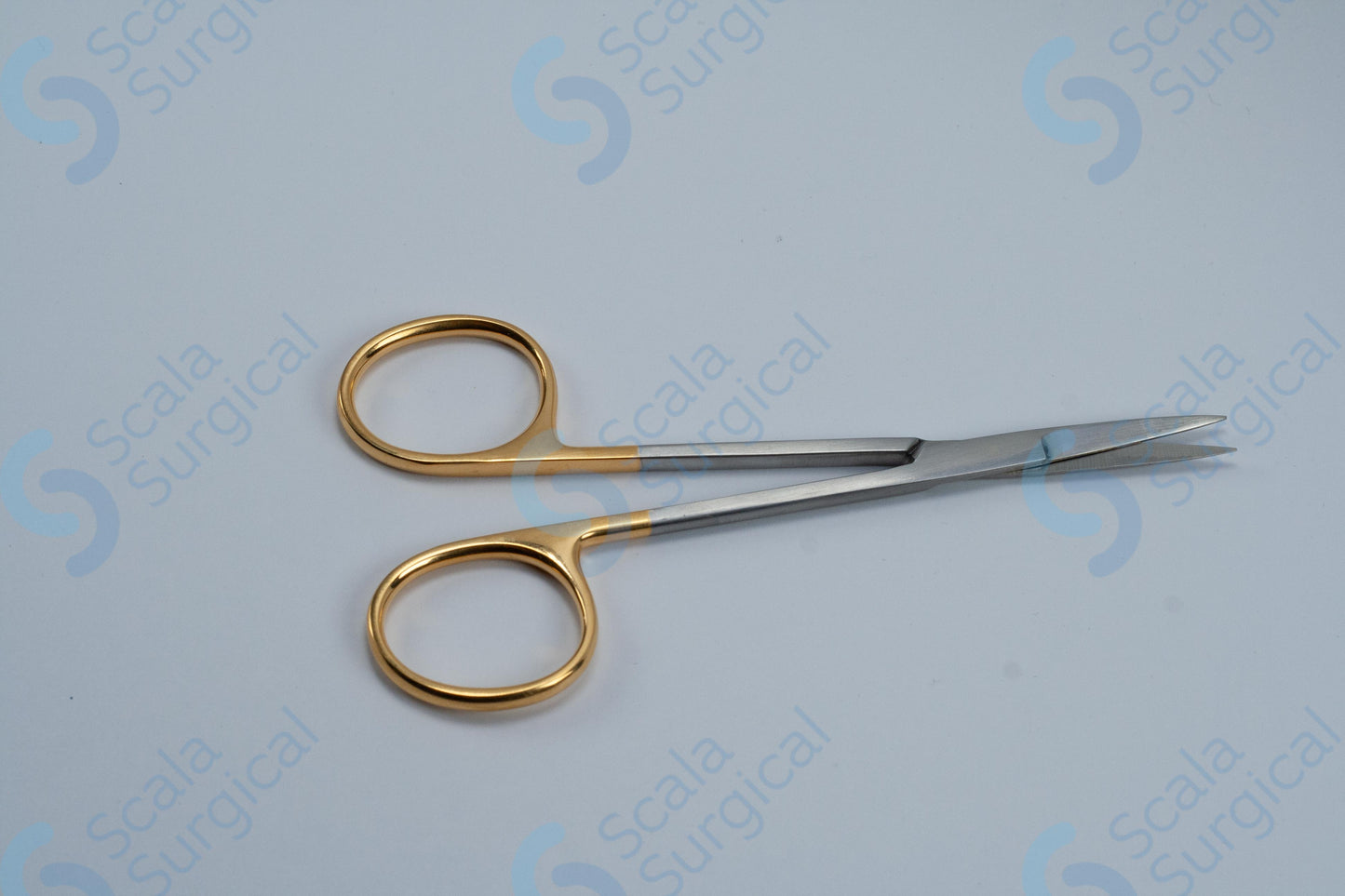 Iris scissors with tungsten carbide jaws and fine tips are used in the surgical field for delicate dissection and cutting of tissue. They are typically used in ophthalmology and neurosurgery for precise cutting of delicate tissue. The straight design of the scissors makes them ideal for cutting in tight spaces. The 114.3mm (4? inch) size makes them suitable for use in smaller areas.