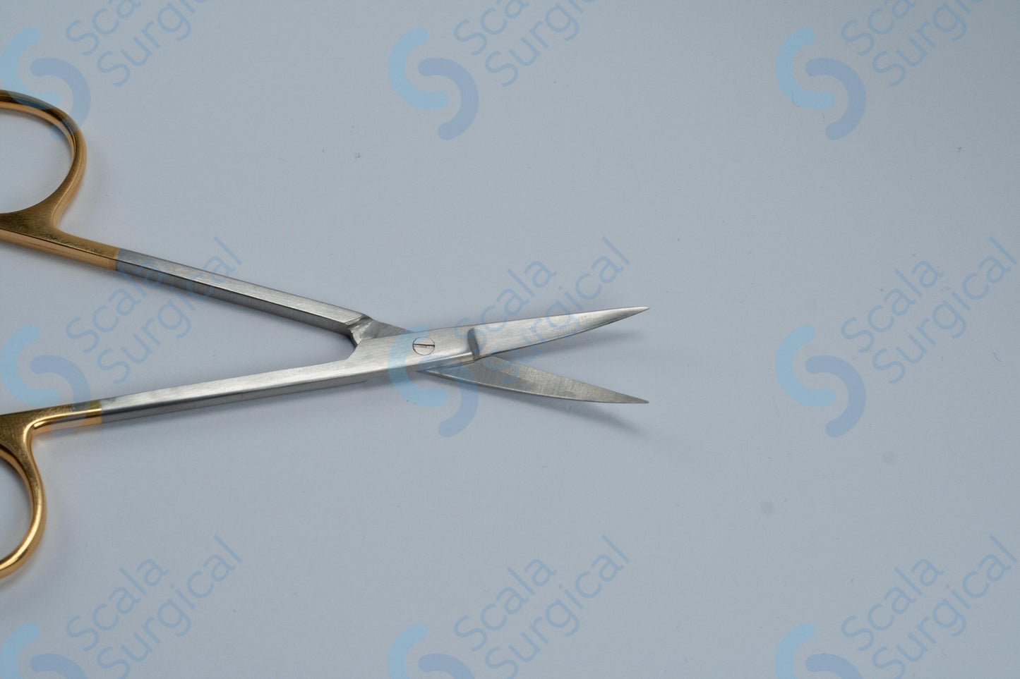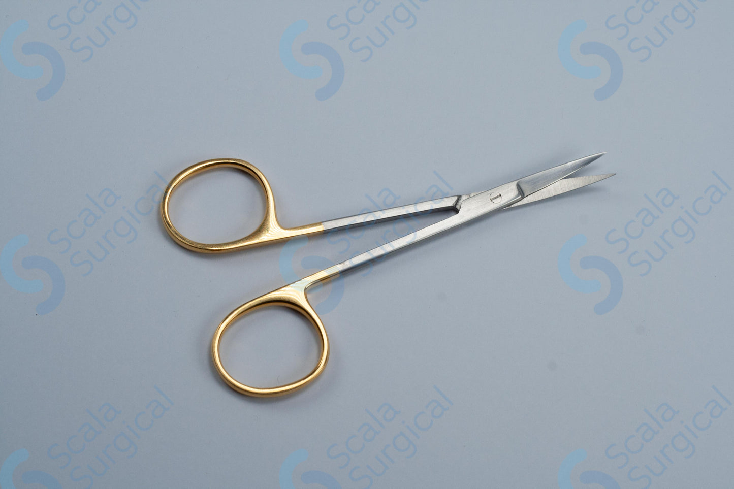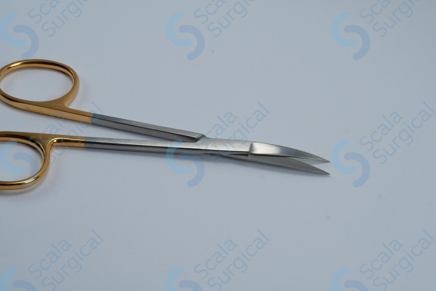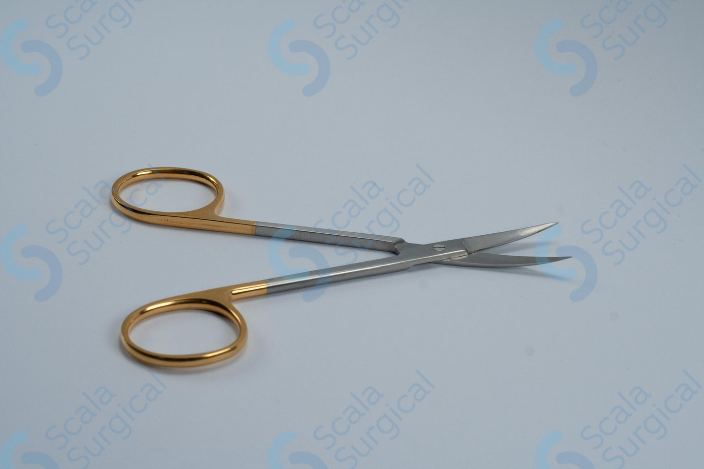 Iris scissors are specialized surgical scissors used for cutting delicate tissue, such as the iris of the eye. The tungsten carbide jaws give the scissors a longer lifespan and the fine tips and curved design enable them to make precise cuts.