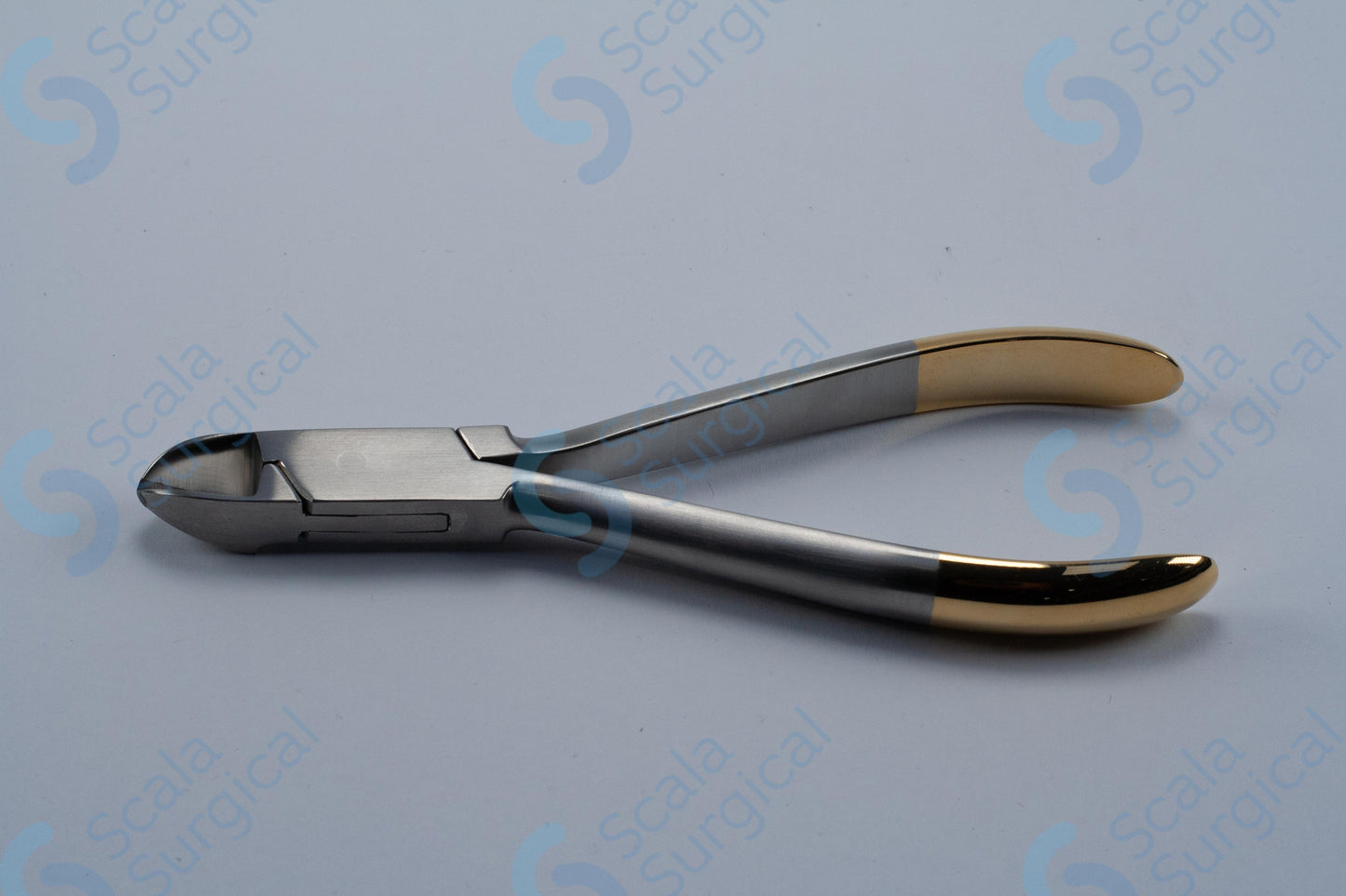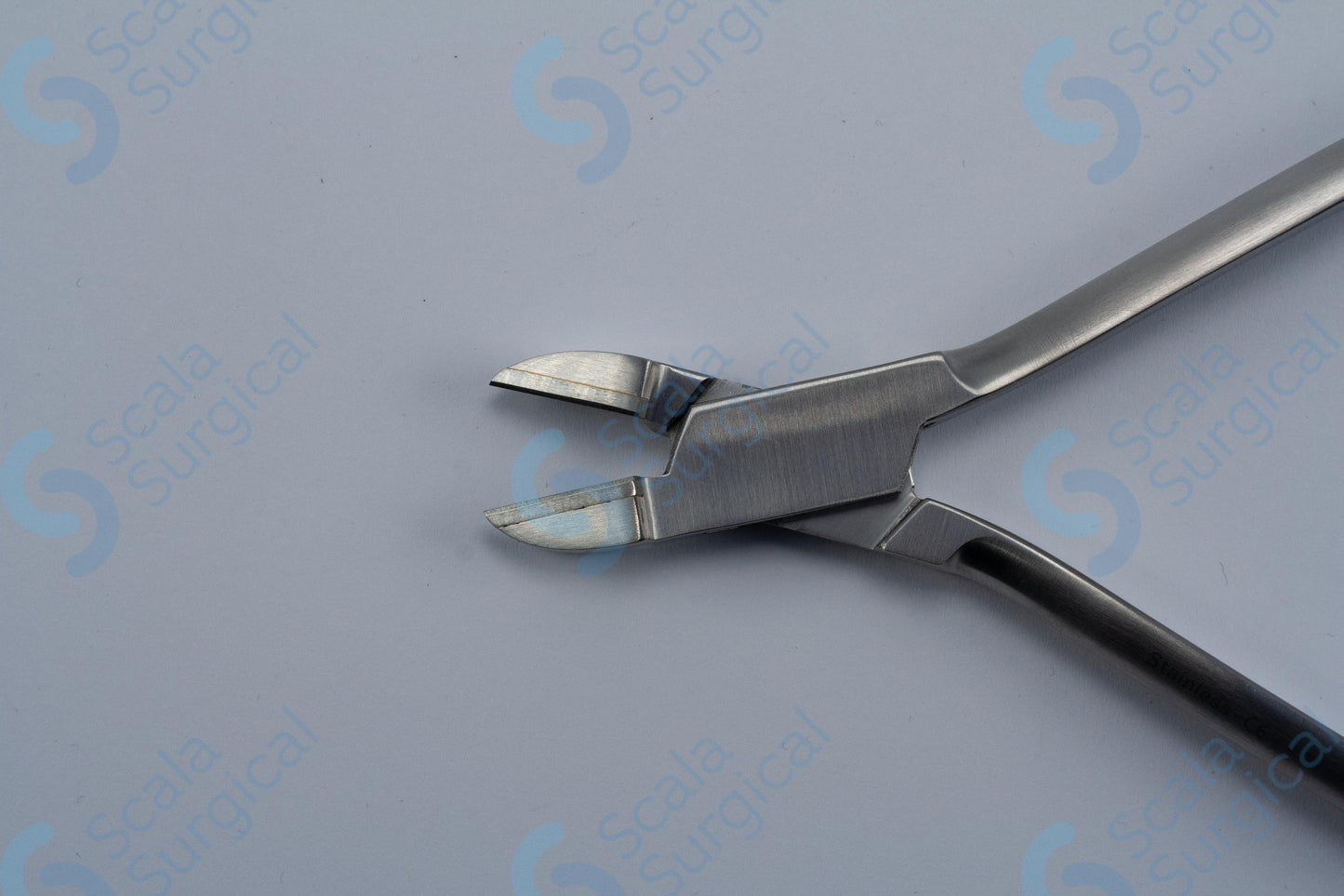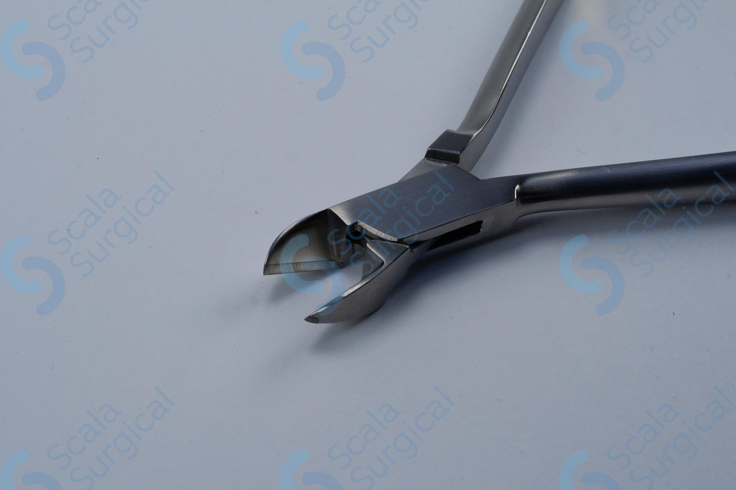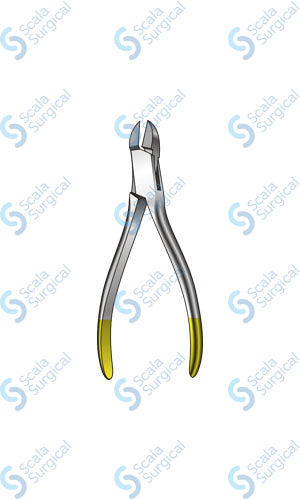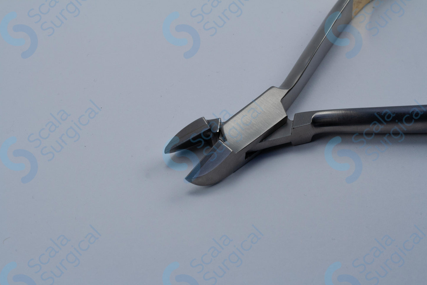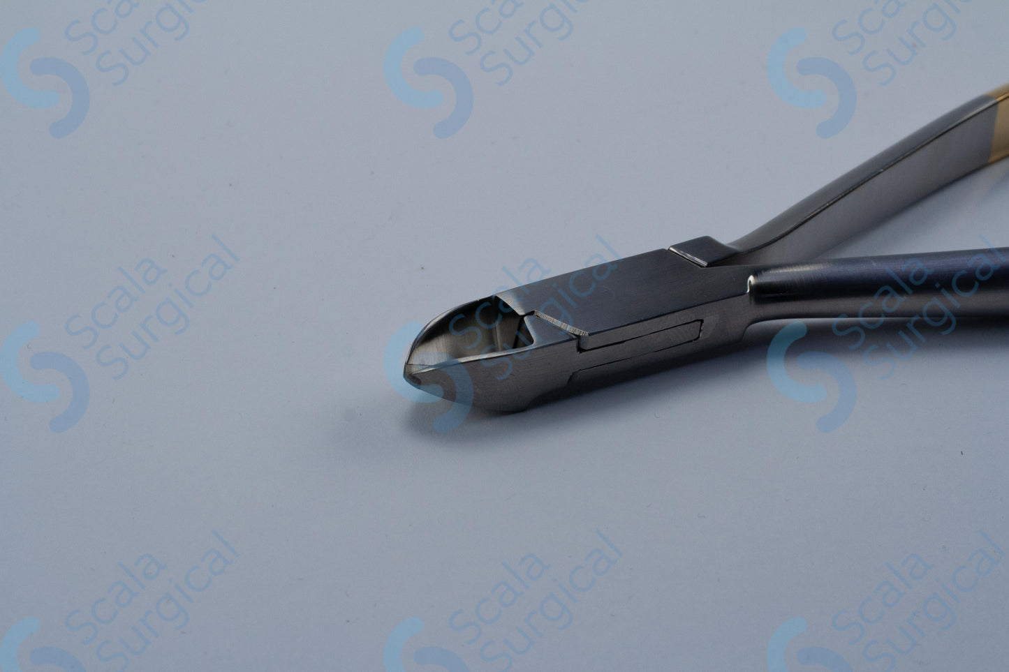 This wire cutter is used to cut through wires, such as sutures, in the surgical field. It features a simple action handle, tungsten carbide jaws, and a hardened cutting edge for precise and efficient cutting. The size of the cutter is 139.7mm (5? inch).