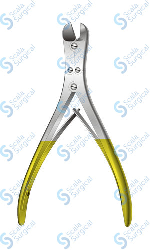 This wire cutter is used to cut through wires, such as sutures, during surgery. The compound action handle provides increased leverage and the tungsten carbide jaws and hardened cutting edge provide a sharp, durable cutting edge. The 234.9mm (9? inch) size allows for precise cutting.