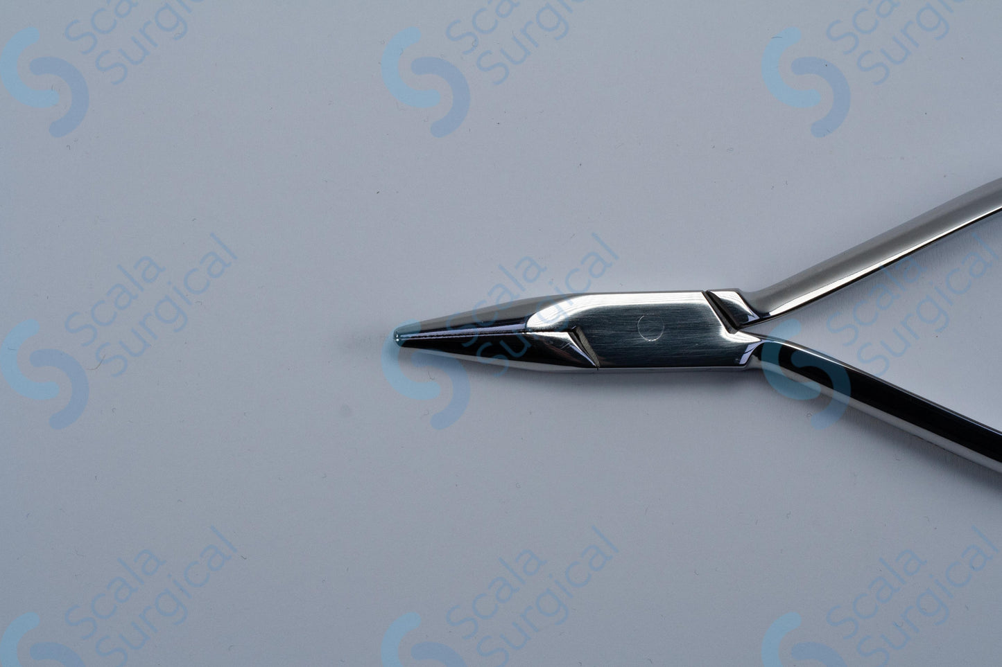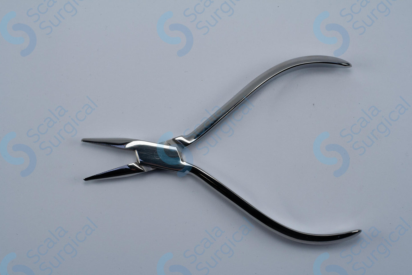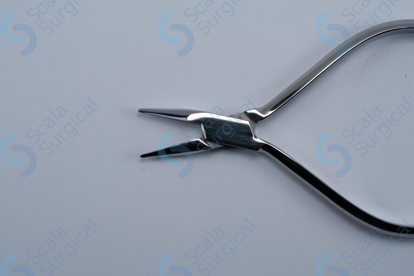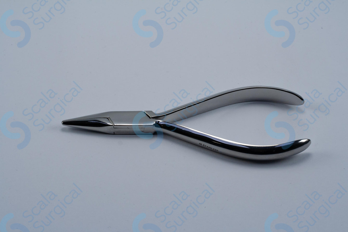 This type of plier is used for grasping, holding, and manipulating tissue during surgical procedures. The criss-cross serrations and pointed tip allow for precise control and manipulation of delicate tissue.