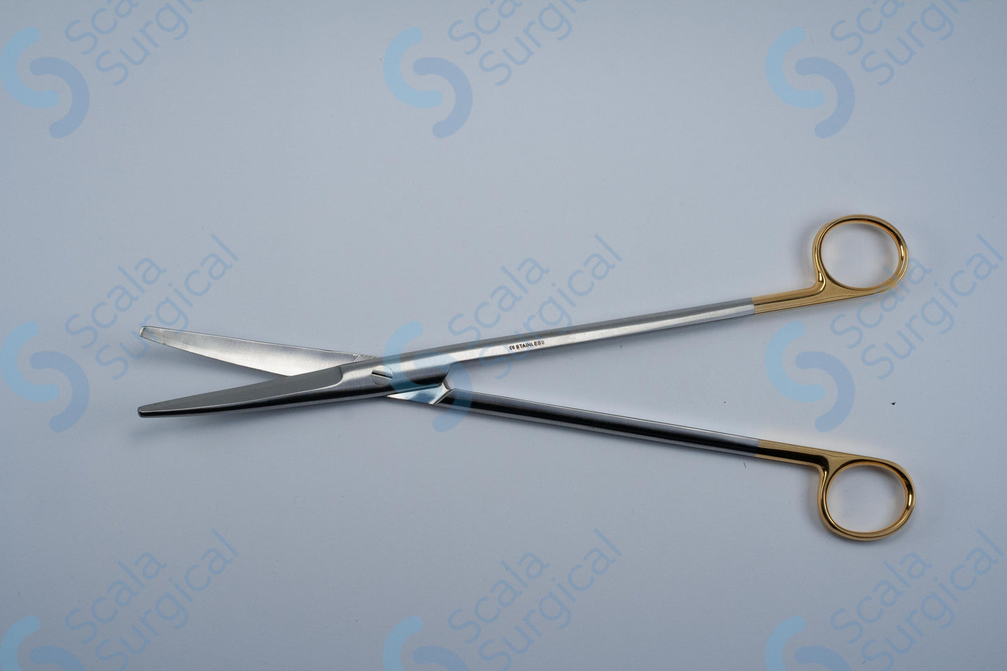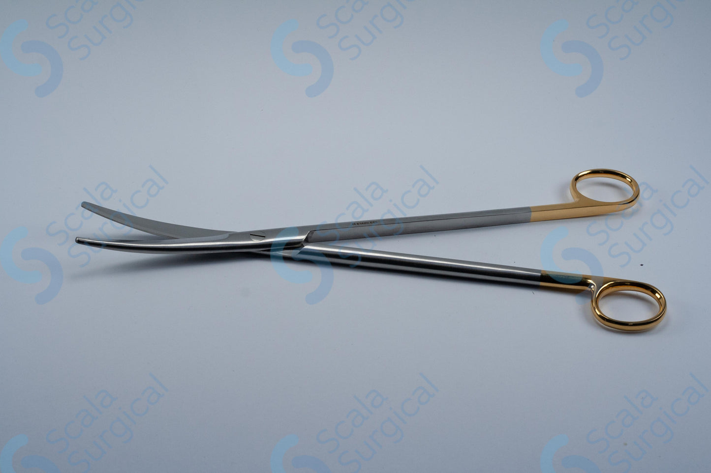 Mayo scissors with tungsten carbide jaws are used in surgery to make precise cuts and incisions. The curved blades allow for easier maneuverability and access to hard-to-reach areas. The 300mm (12 inch) length is ideal for larger operations.