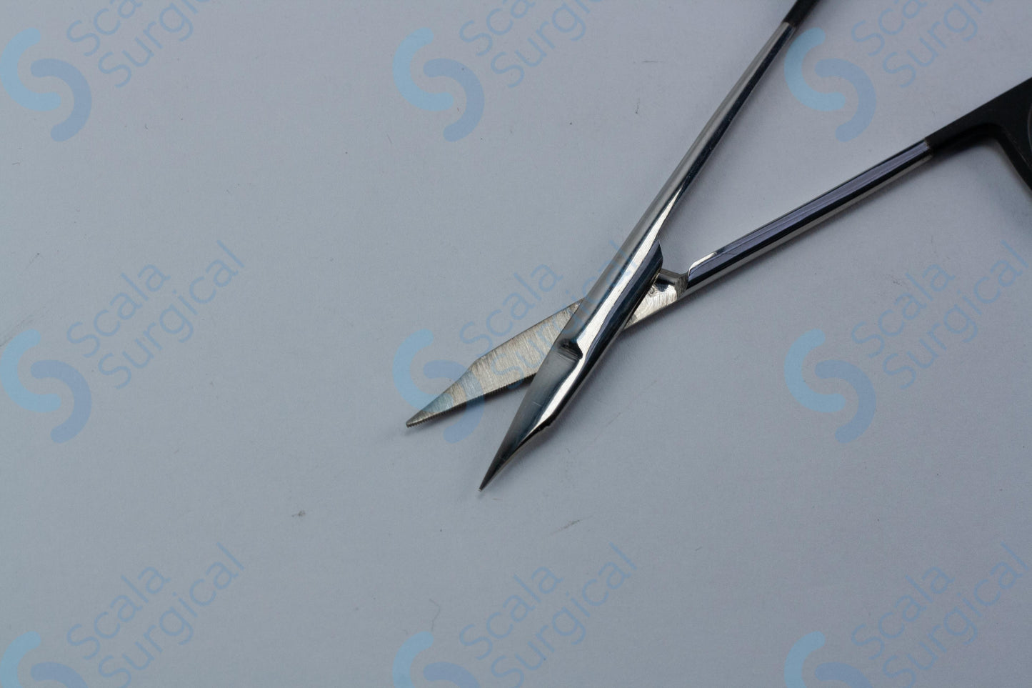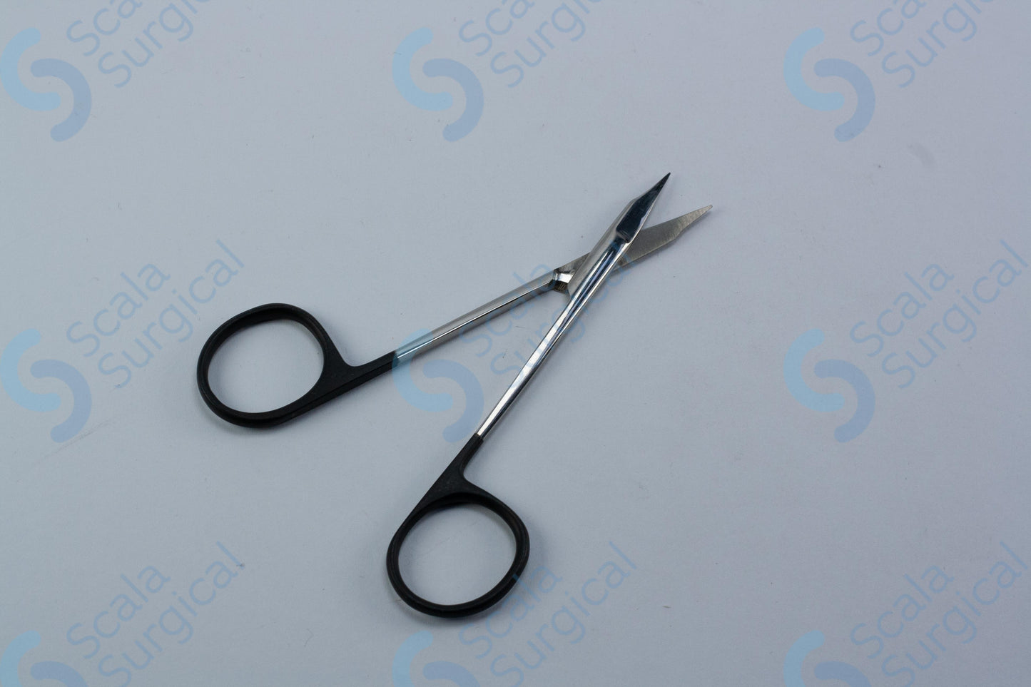 Stevens Tenotomy True Cut Scissors Straight 1 Gold Ring (110mm) (4-5/16 inch) is a type of surgical scissors used to make precise cuts in tissue. It is commonly used in plastic and reconstructive surgery, as well as ophthalmic surgery.