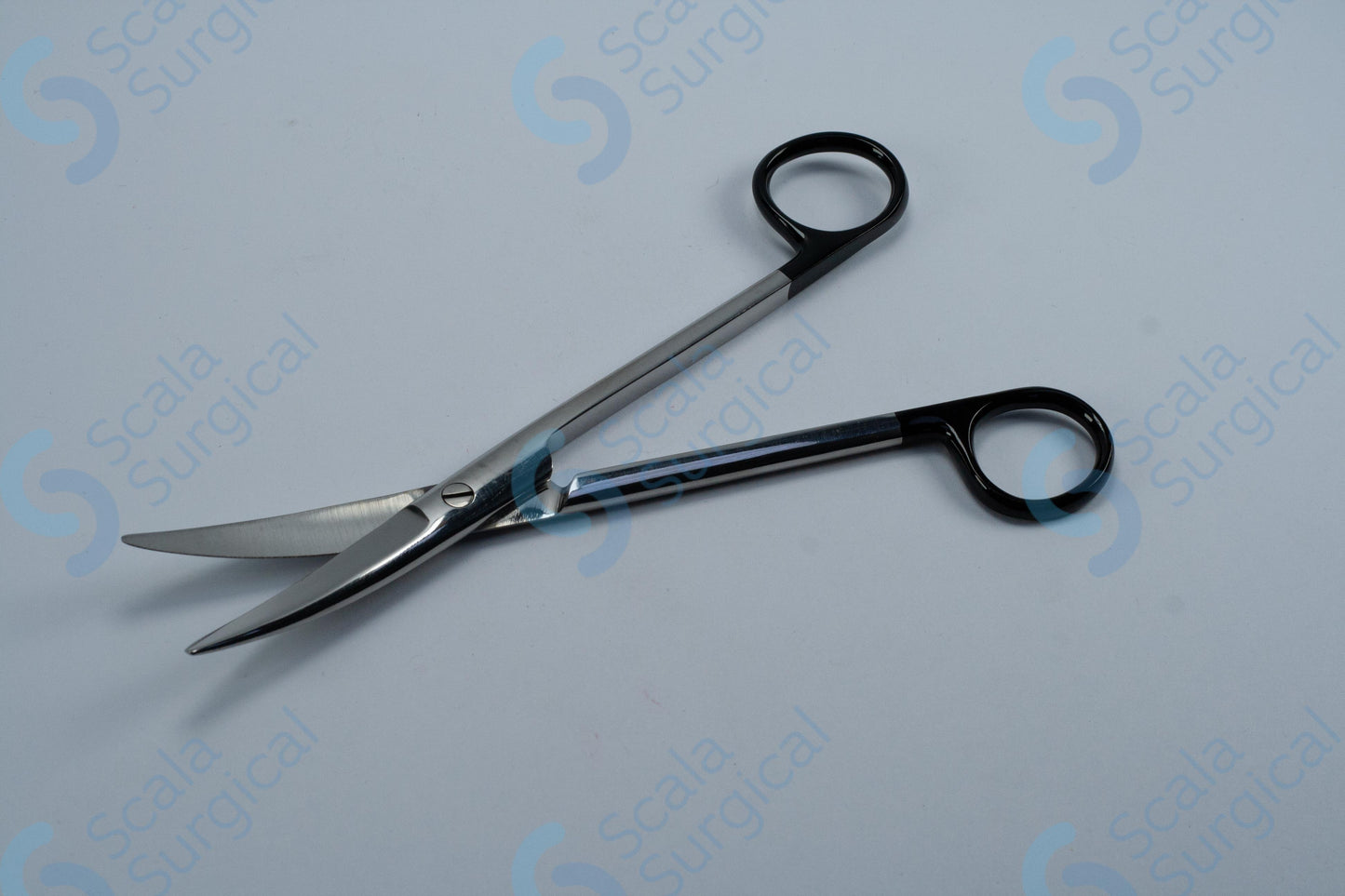 Mayo True Cut Scissors Curved (190.0mm) (7? inch) are surgical scissors used for cutting tissue during surgery. They are designed with a curved blade to provide a precise and clean cut. They are commonly used in abdominal surgery, orthopedic surgery, and plastic surgery.