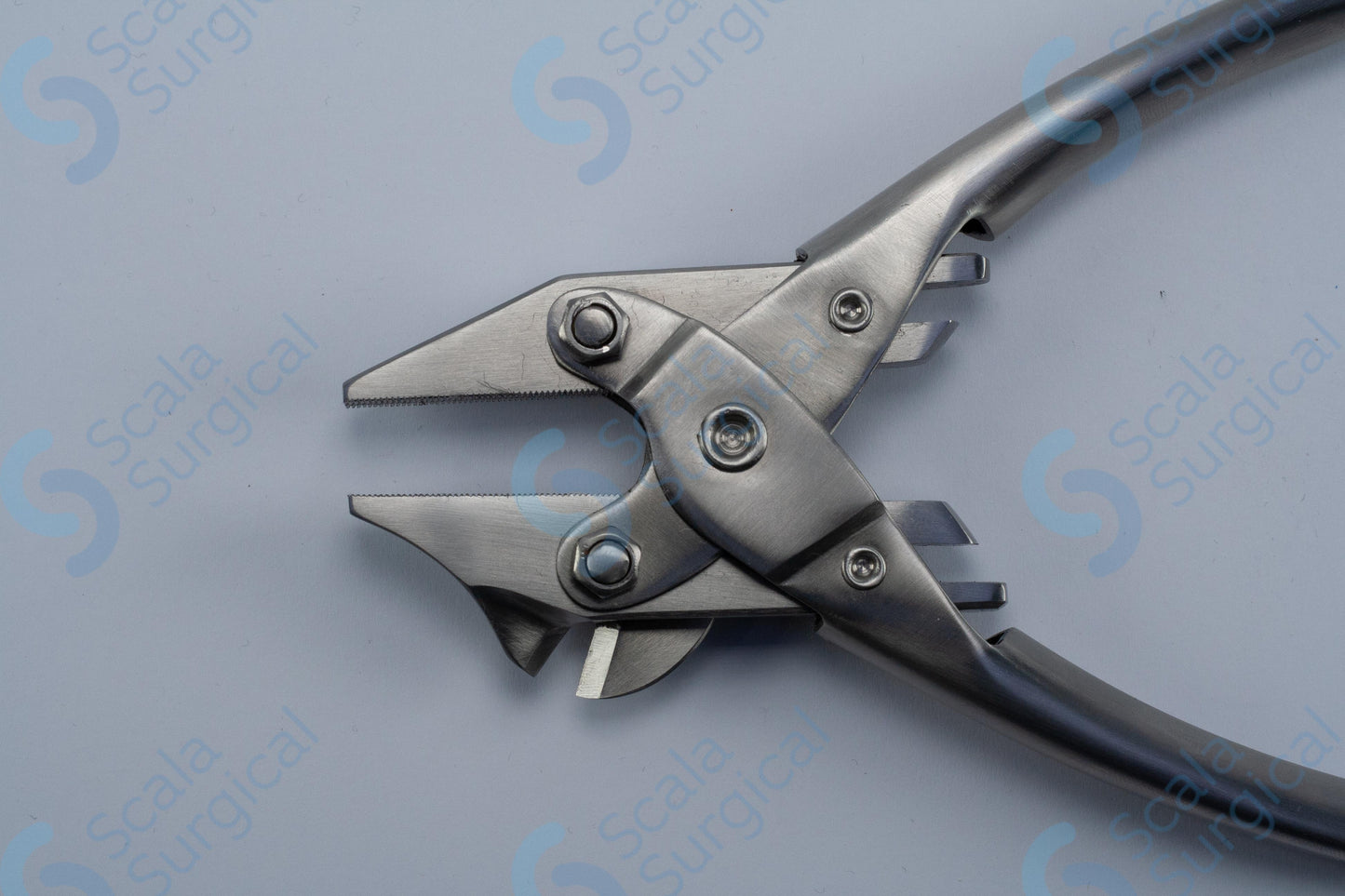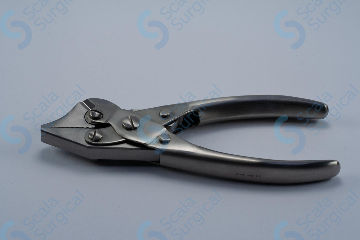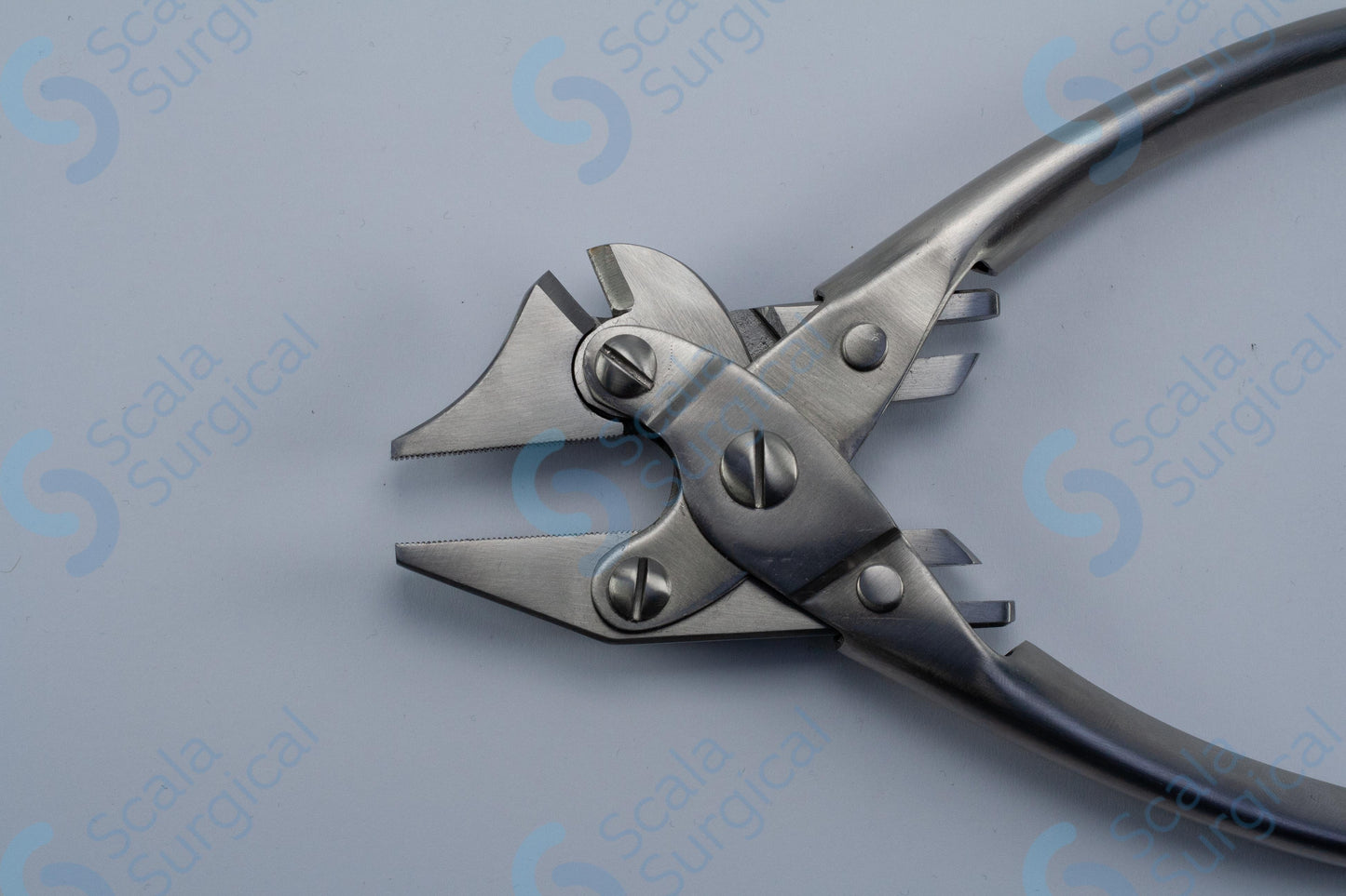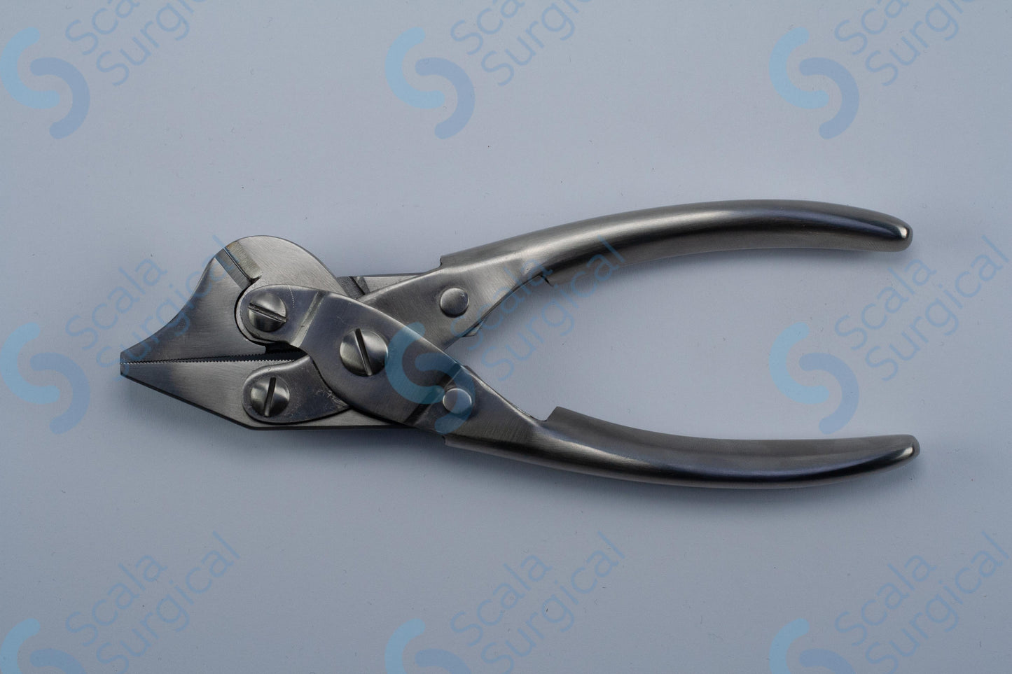 This type of plier is used for a variety of surgical procedures, such as cutting sutures, clamping vessels, and dissecting tissue. The flat nose and horizontal serrations allow for precise gripping of delicate tissue, while the side cutter allows for cutting of sutures and other materials.