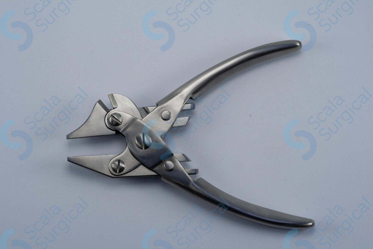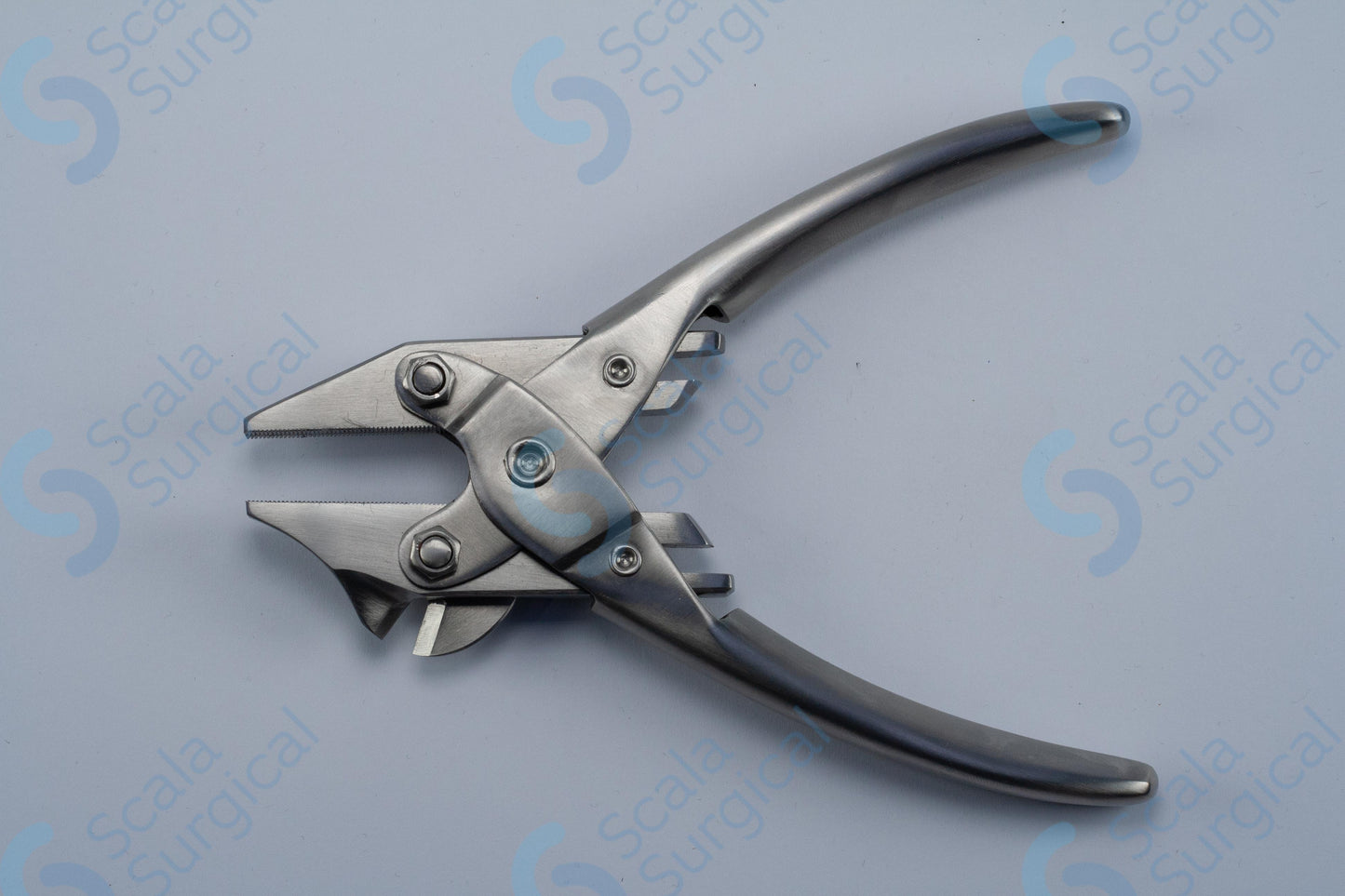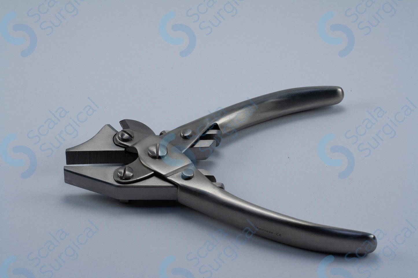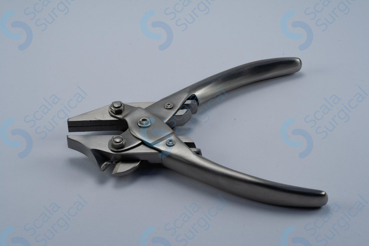This type of plier is used for a variety of surgical procedures, such as cutting sutures, clamping vessels, and dissecting tissue. The flat nose and horizontal serrations allow for precise gripping of delicate tissue, while the side cutter allows for cutting of sutures and other materials.