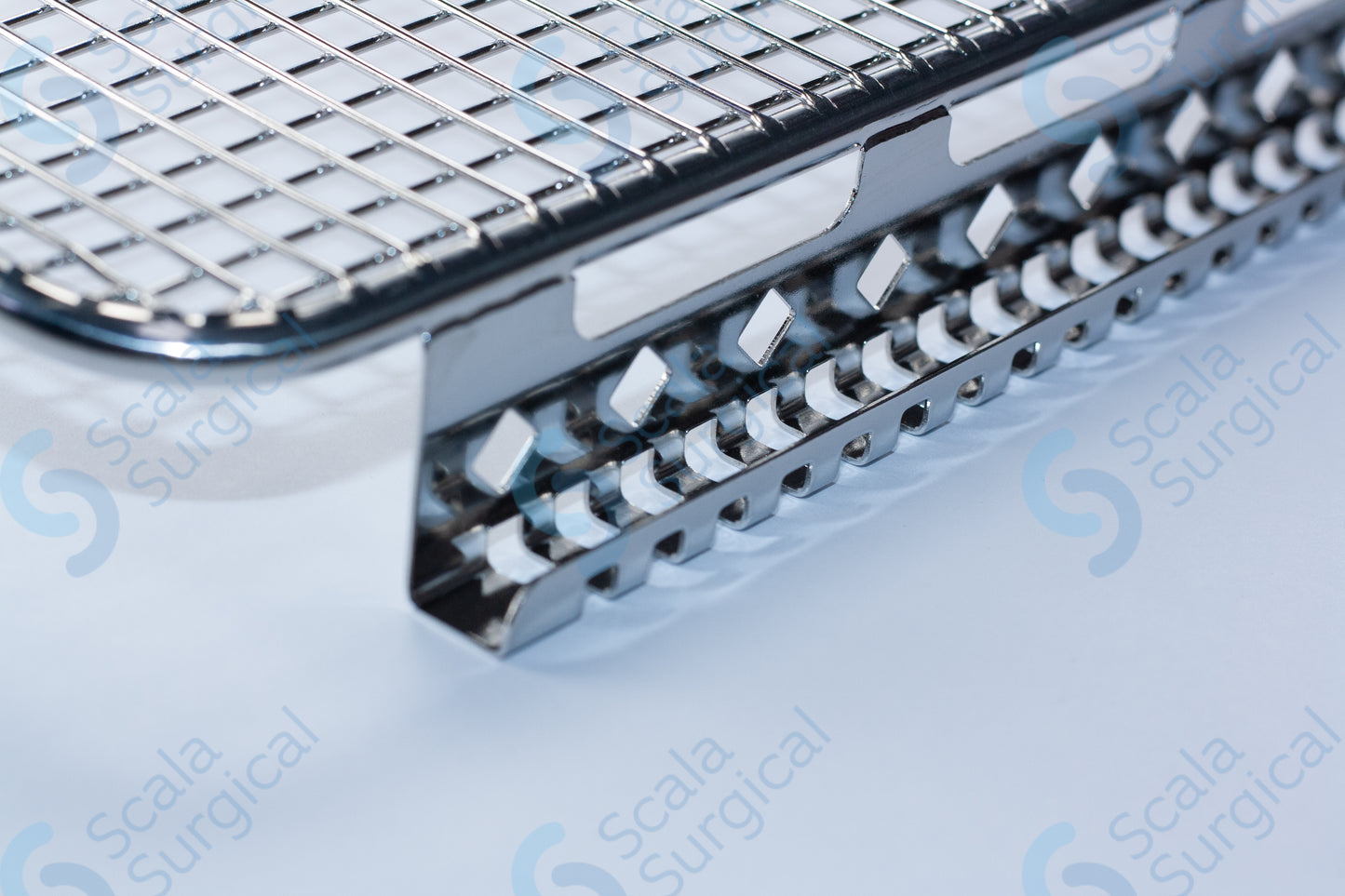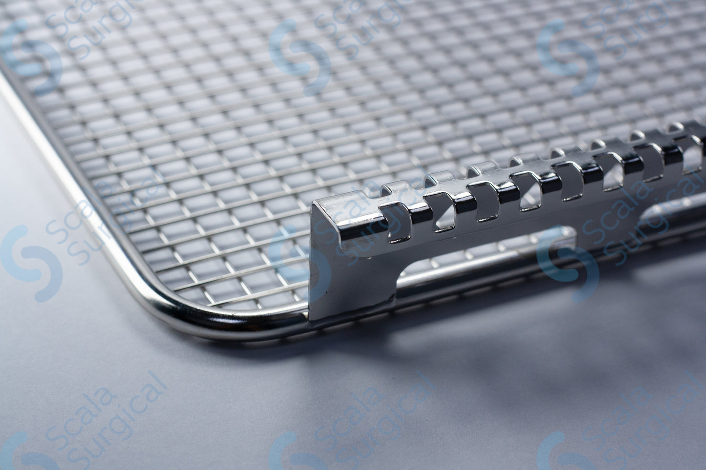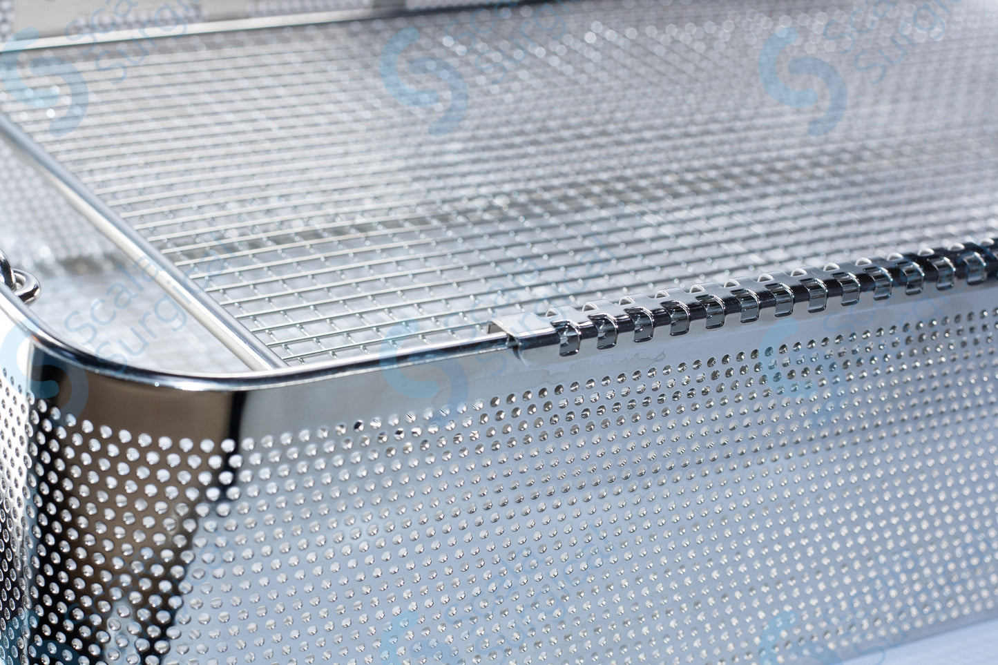 During the sterilisation process, the sterilisation basket is filled with medical instruments, devices or other items that need to be sterilised. The stainless steel inlay is then placed on top of these items, providing an additional layer of protection to prevent them from shifting or moving around during the sterilisation process.
