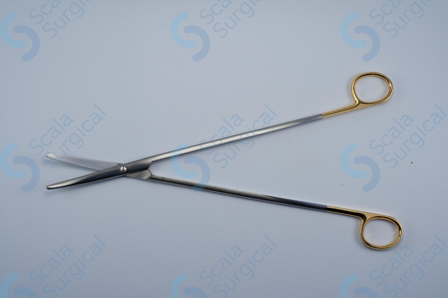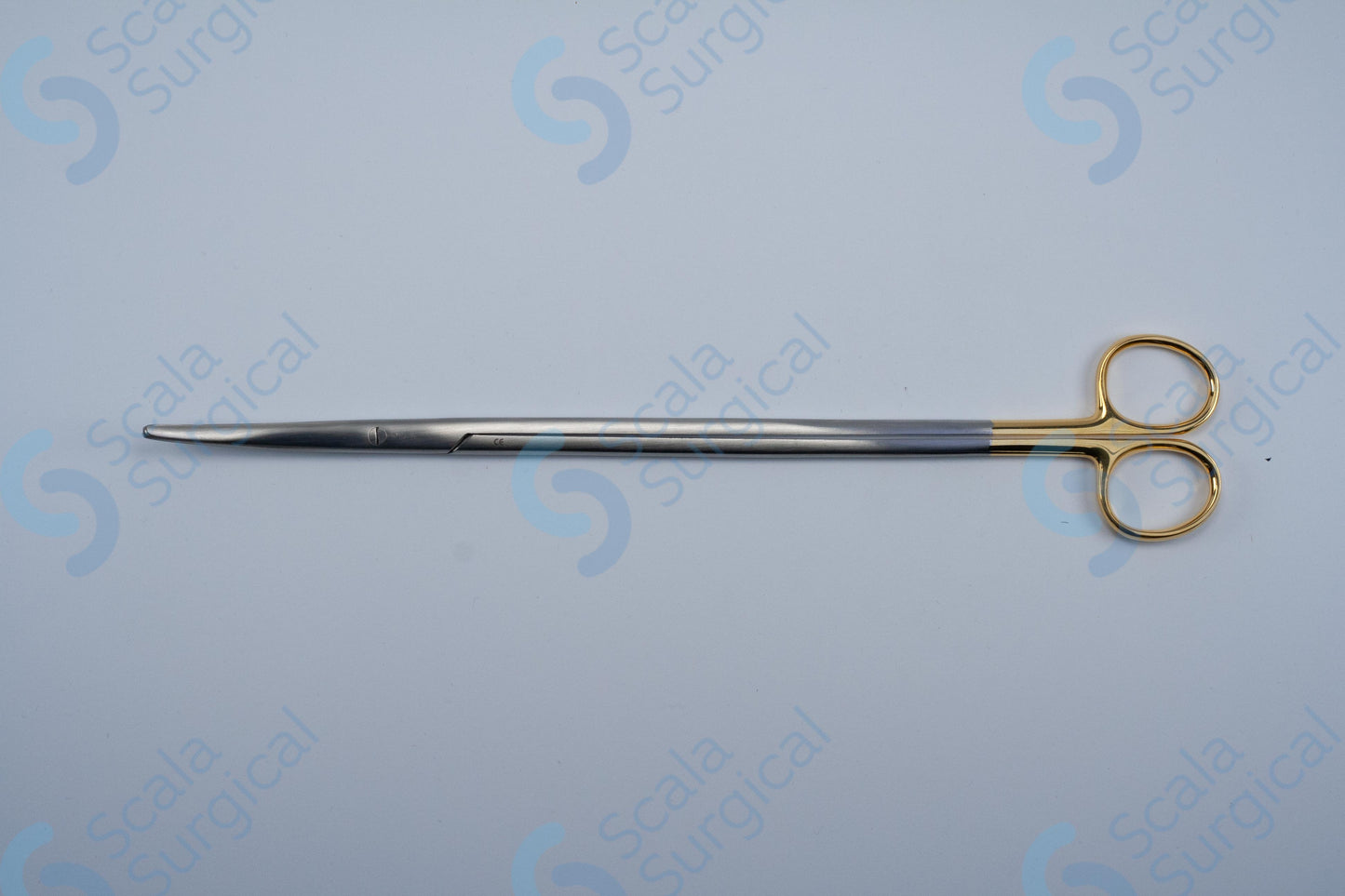 Metzenbaum scissors are a type of surgical scissors used for cutting delicate tissue. They have tungsten carbide jaws, which provide a very sharp, durable cutting edge, and are curved to provide better control during delicate procedures.