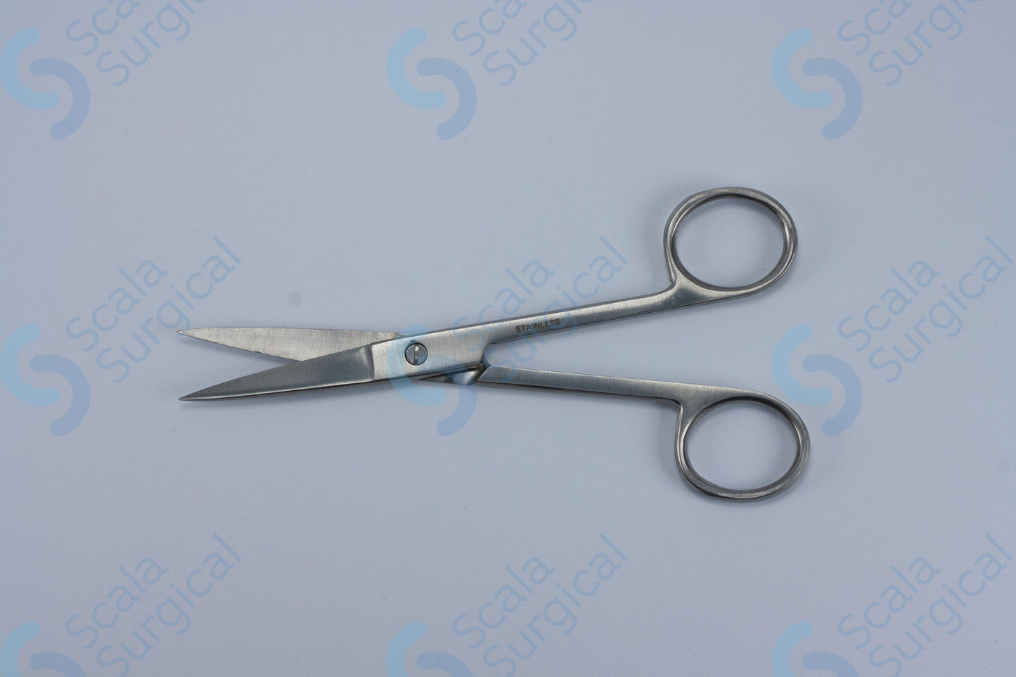 Dressing / Stitch Scissors Sharp / Sharp Straight (139.7mm) (5? inch) are a type of medical scissors used in the surgical field. They are designed to cut through stitches, dressings, and other materials while minimizing the risk of tissue damage. They feature a sharp, straight blade and a long handle for improved control and precision.