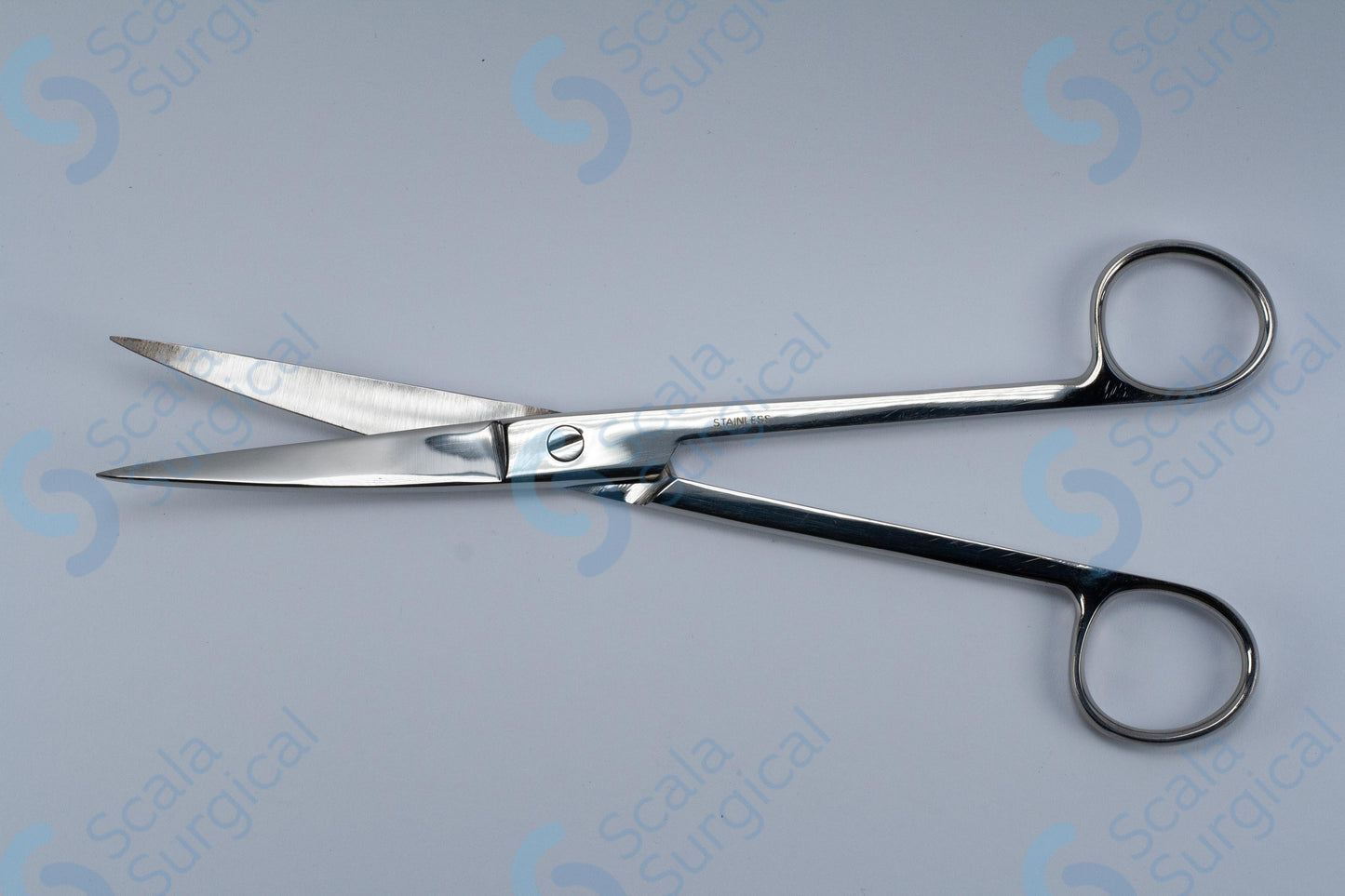 Dressing / Stitch Scissors Sharp / Sharp Curved (203.2mm) (8 inch) are used to cut sutures and dressings during surgical procedures. They feature sharp, curved blades which allow for precise cutting and are 203.2mm (8 inches) in length.