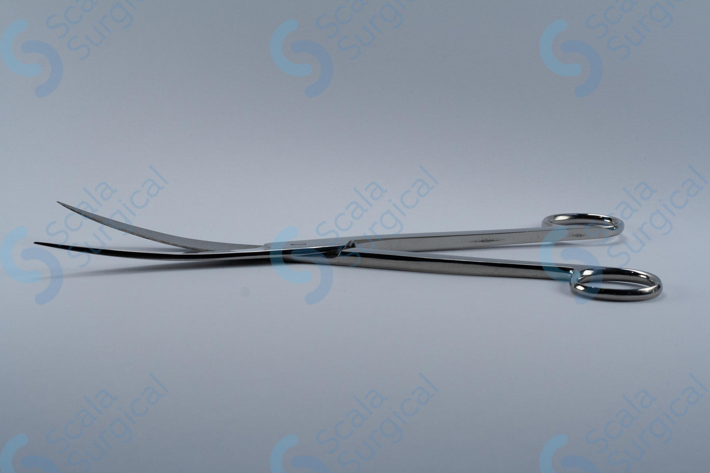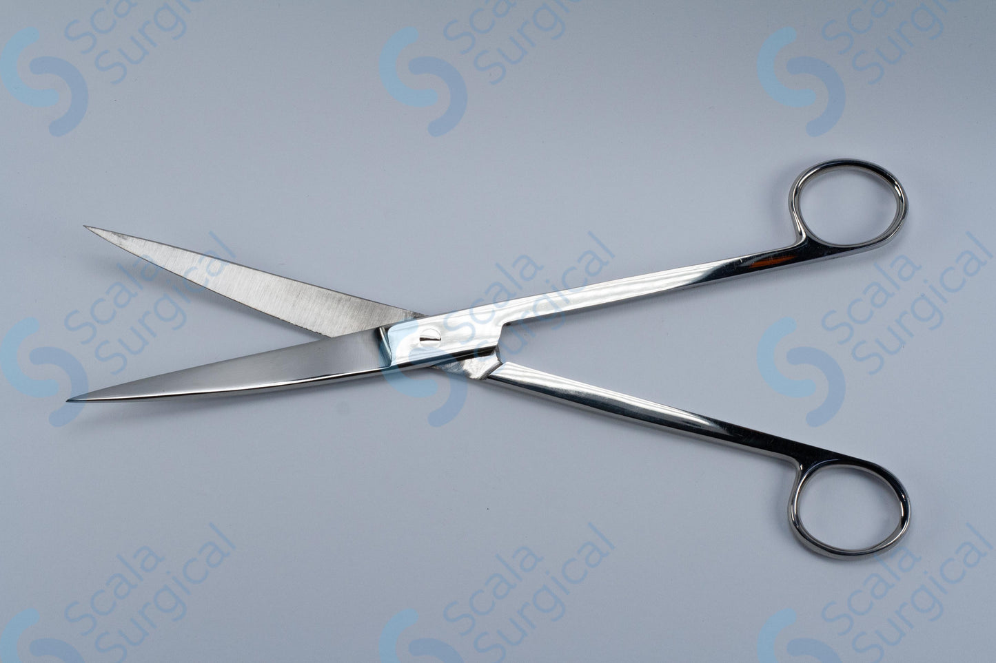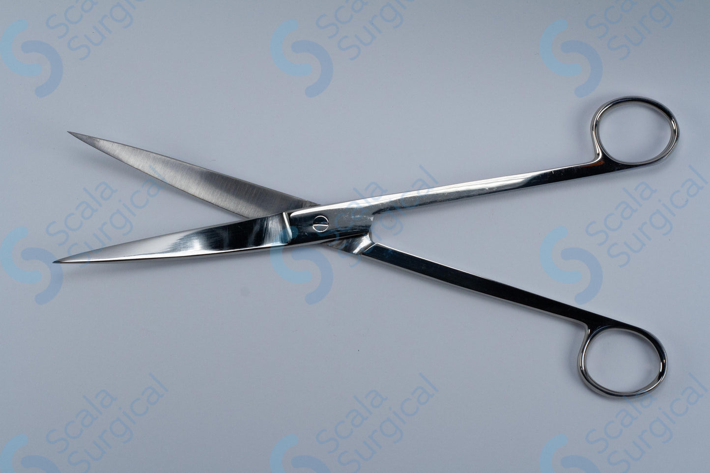 Dressing / Stitch Scissors Sharp / Sharp Curved (228.6mm) (9 inch) are used by surgeons and medical personnel to cut through sutures and dressings. They are designed to be sharp and curved to reduce the risk of damaging underlying tissue.