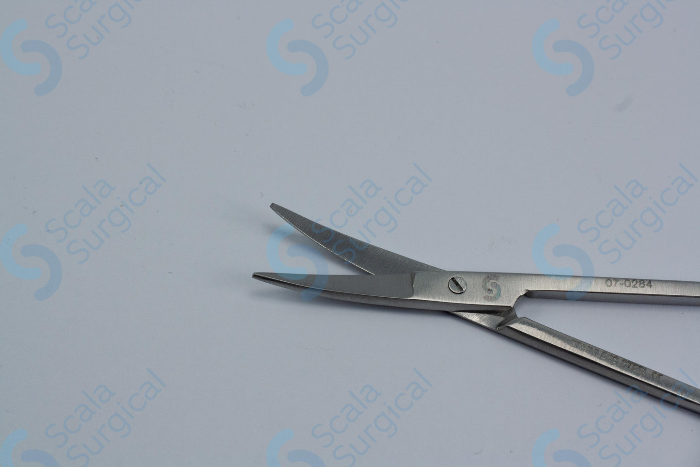 Iris scissors are used in ophthalmology and plastic surgery procedures to make precise cuts in delicate tissue, such as the iris of the eye or skin. They are curved and have one sharp and one blunt edge, allowing for greater control and accuracy during delicate operations.