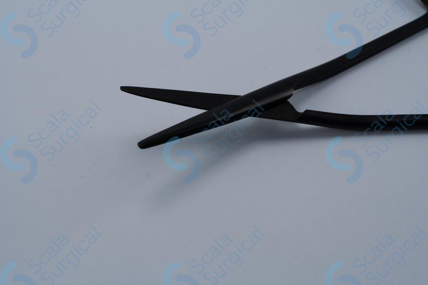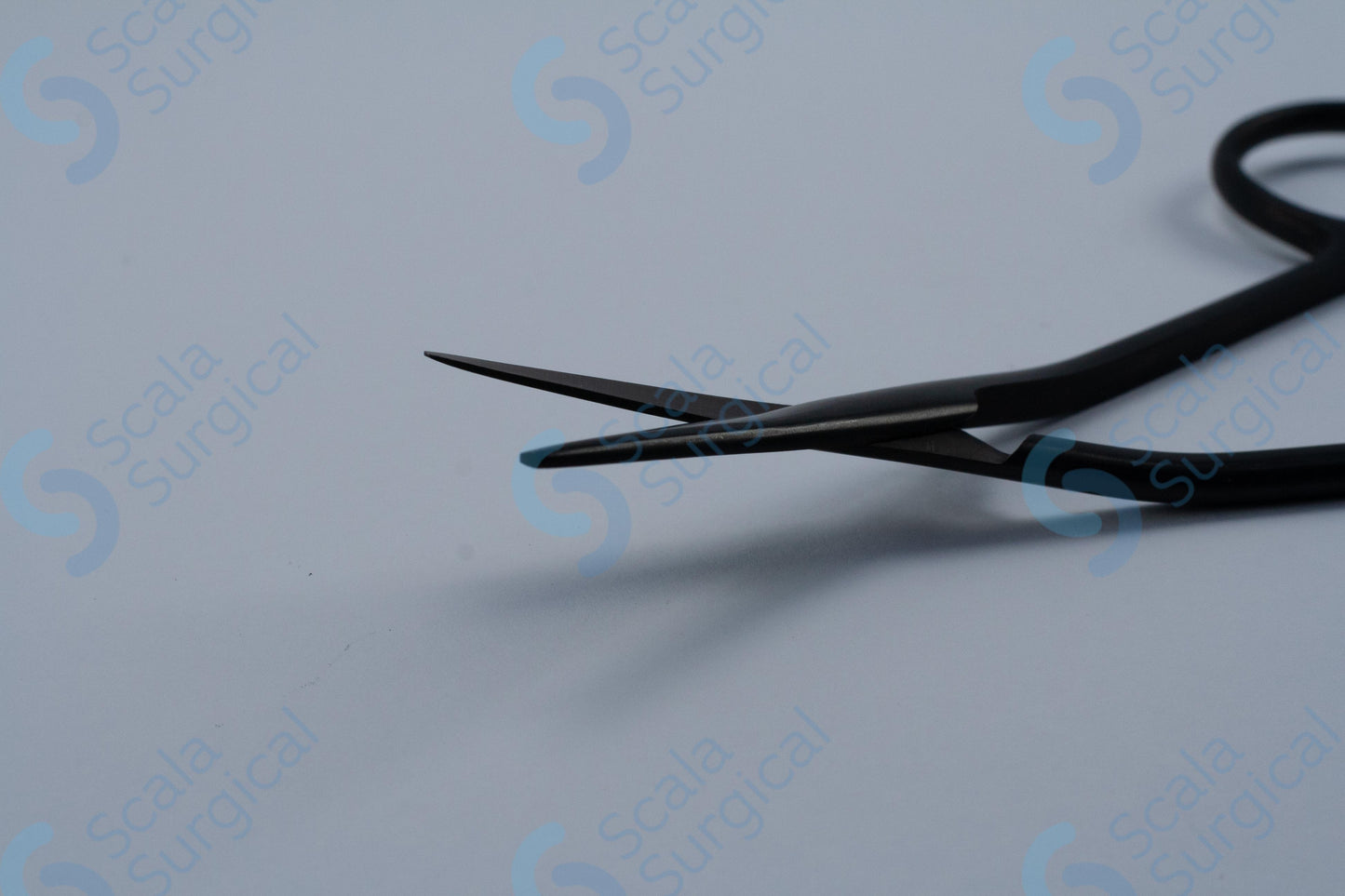 Fomon Scissor Angular BLACK 4? inch is a surgical instrument used for cutting and dissecting tissue. It is a type of scissor with an angled tip that allows for precise cutting and maneuvering in tight spaces.
