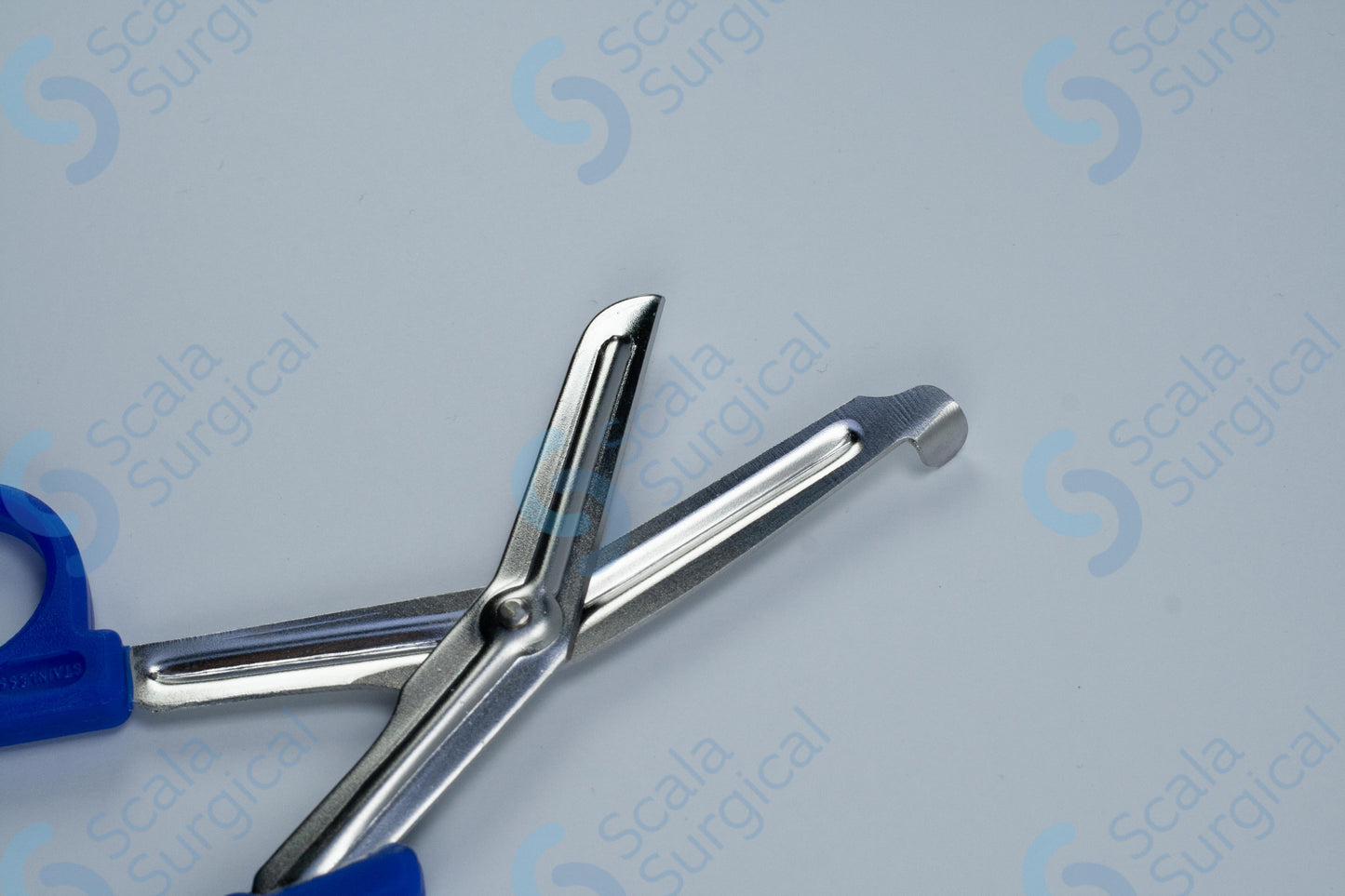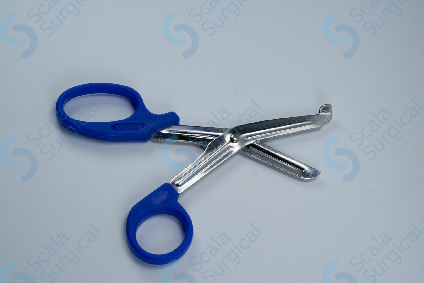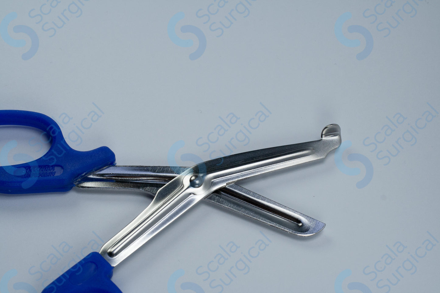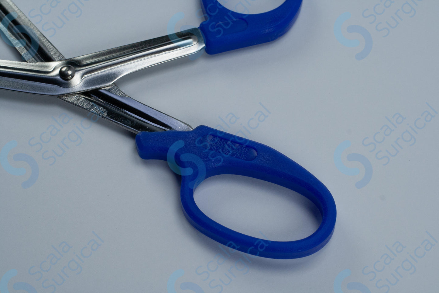 Universal Tough Cut Scissors Blue Plastic Handle with Plastic Probe Angled to Side 5.5inch (139.7mm)