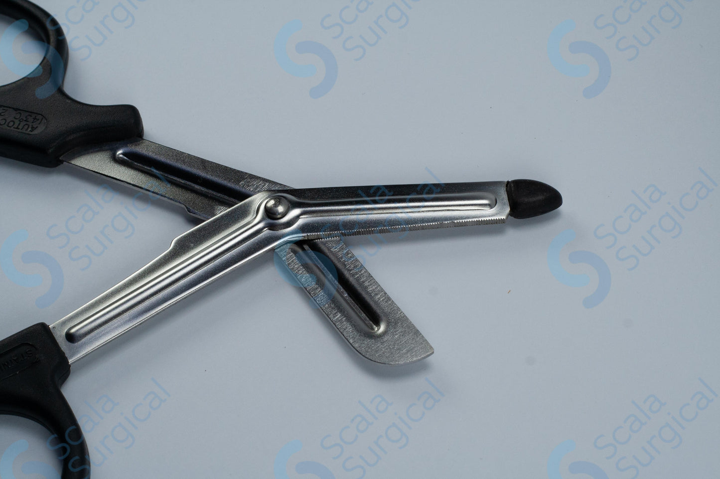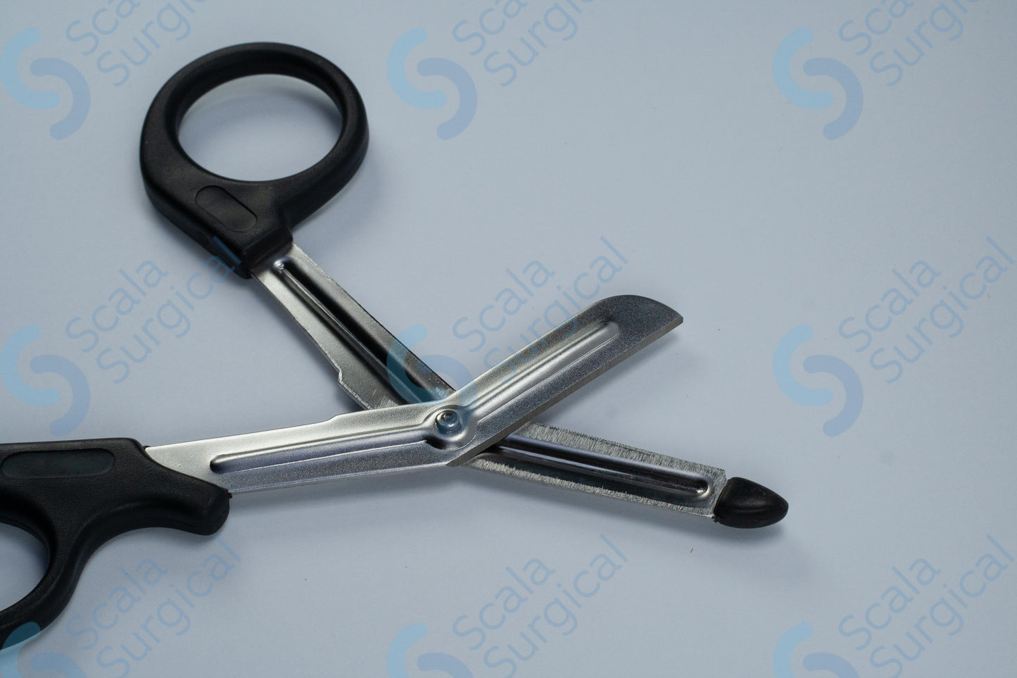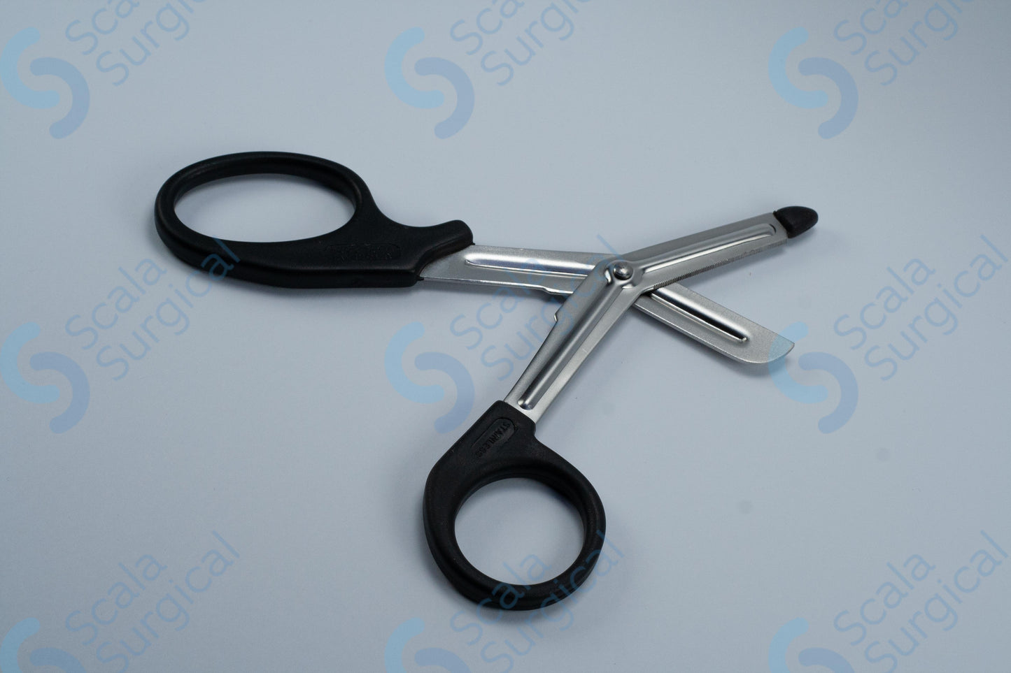 Universal Tough Cut Scissors Black Plastic Handle with Plastic Probe Angled to Side 7.5inch (190.5mm)