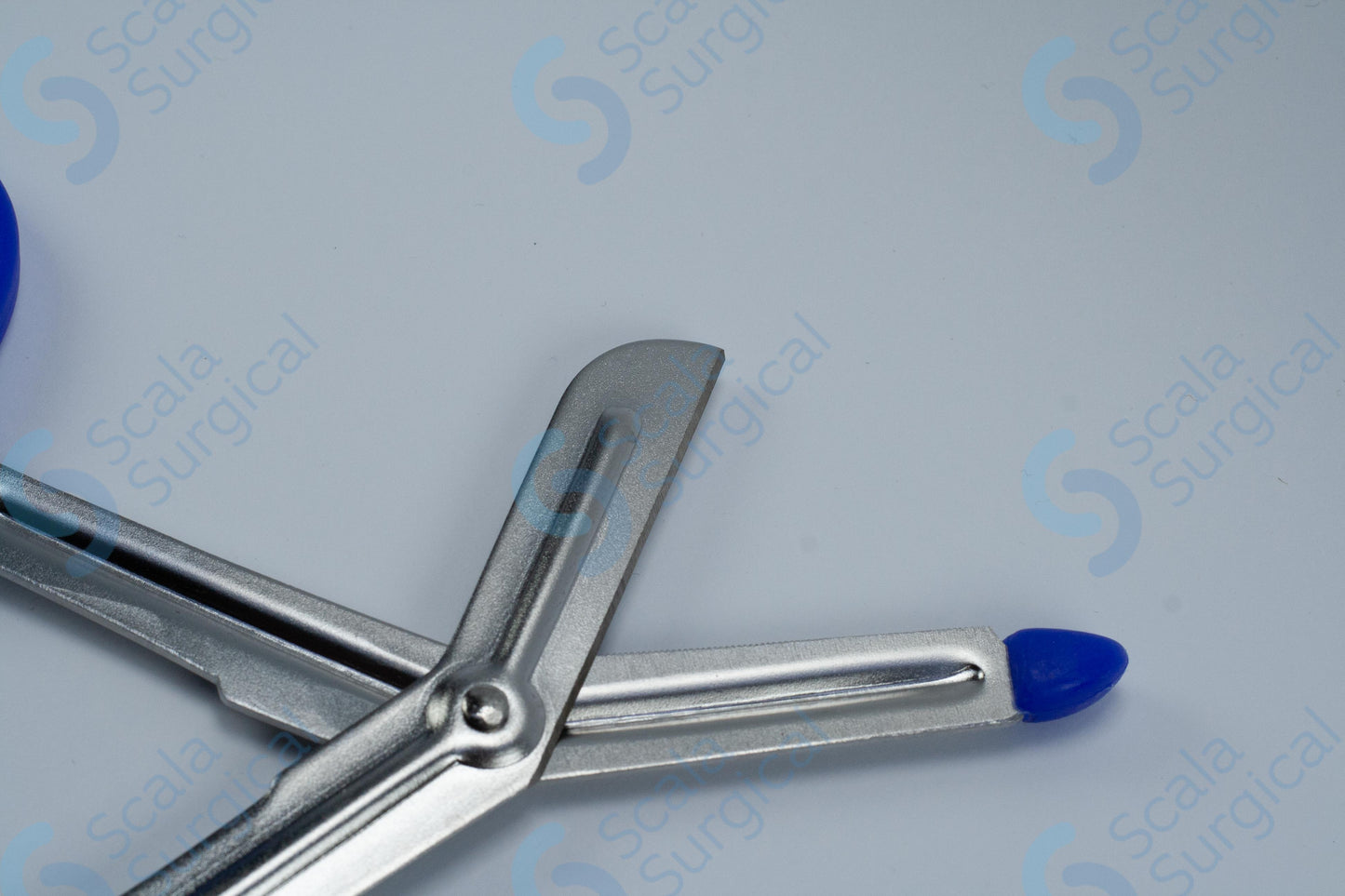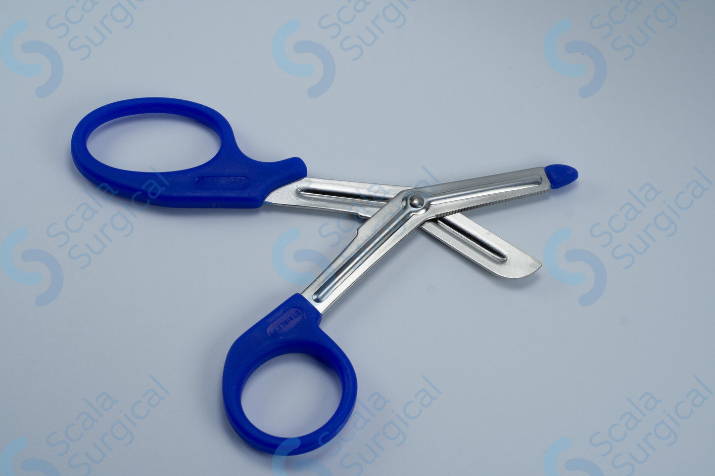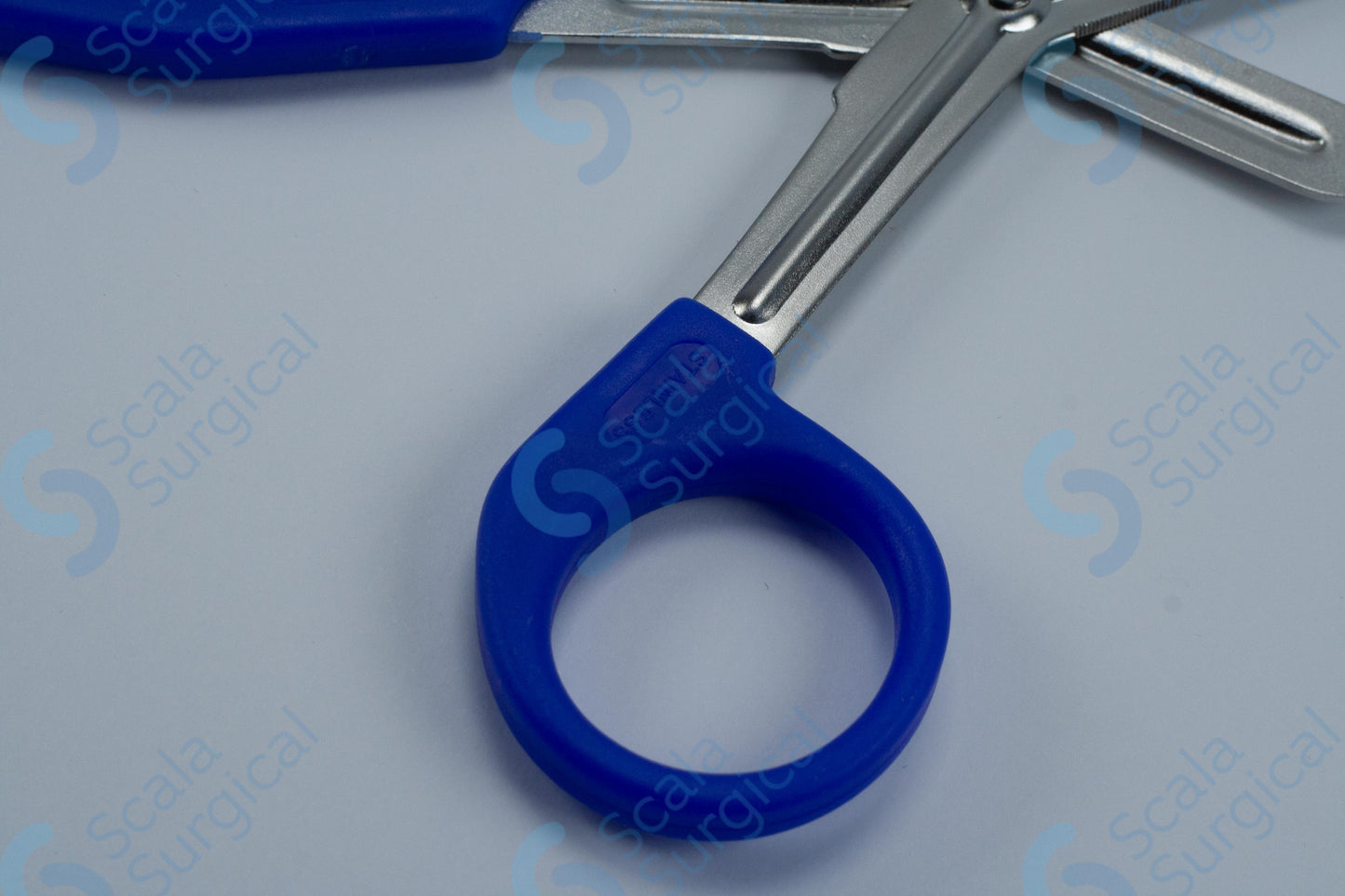 Universal Tough Cut Scissors Blue Plastic Handle with Plastic Probe Angled to Side 7.5inch (190.5mm)