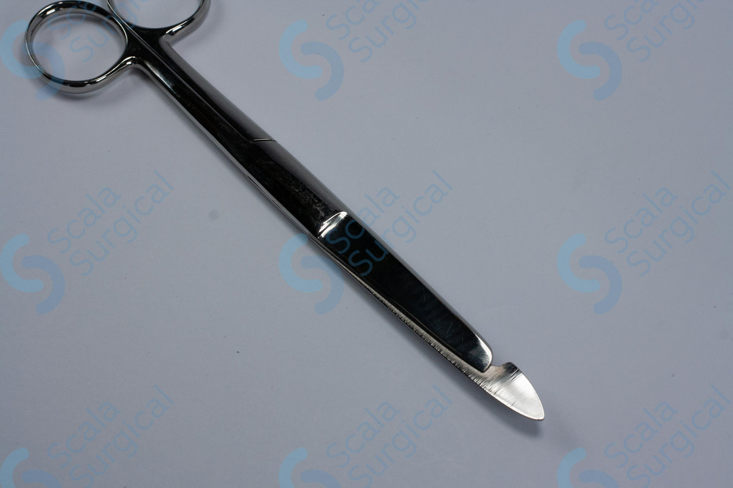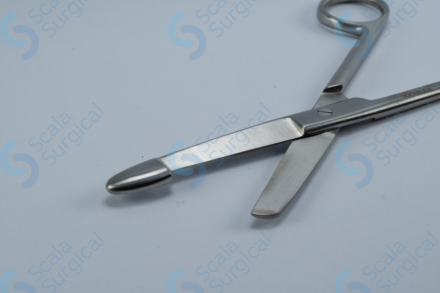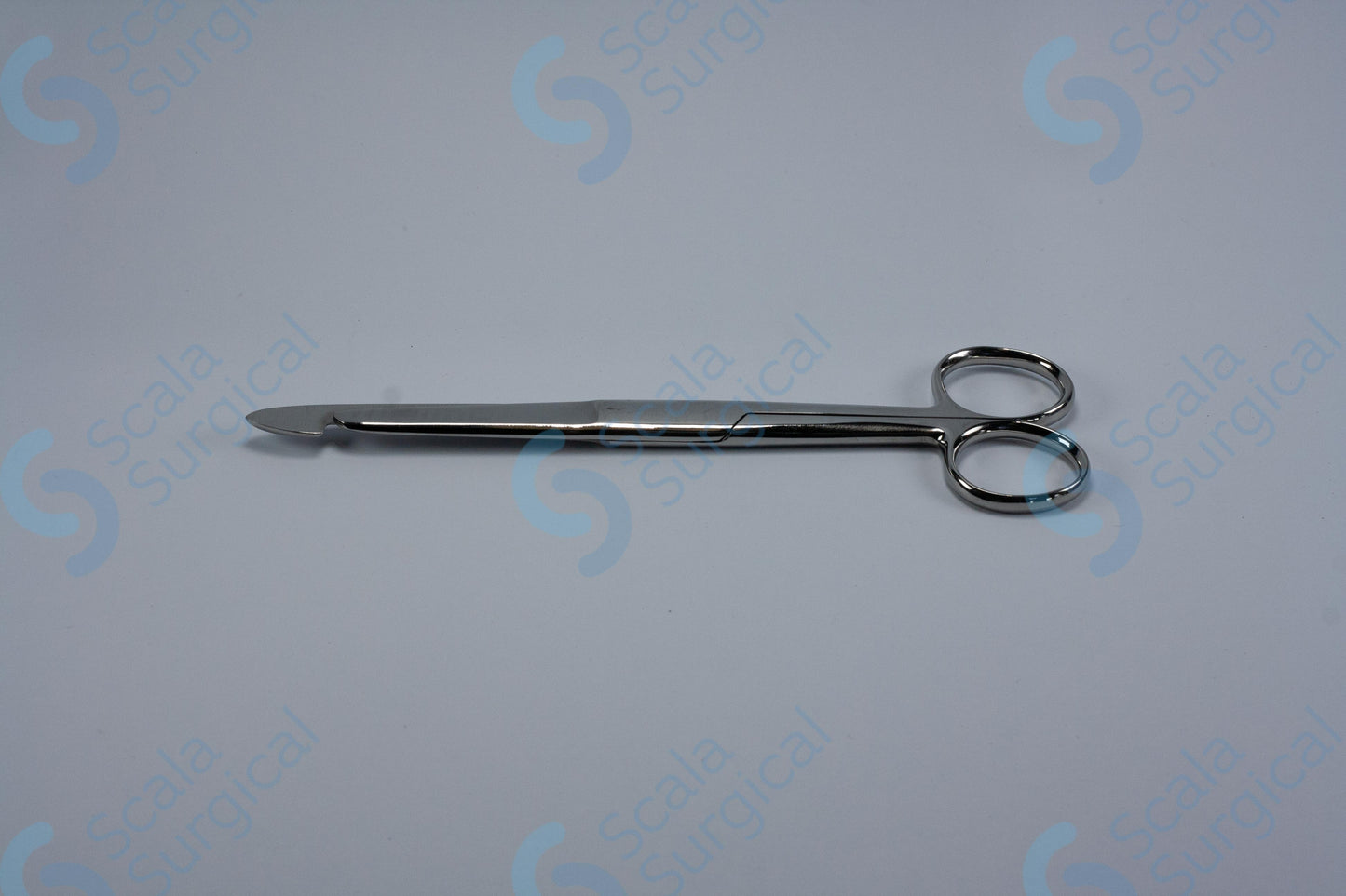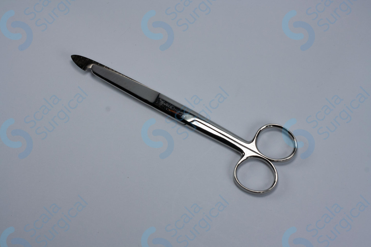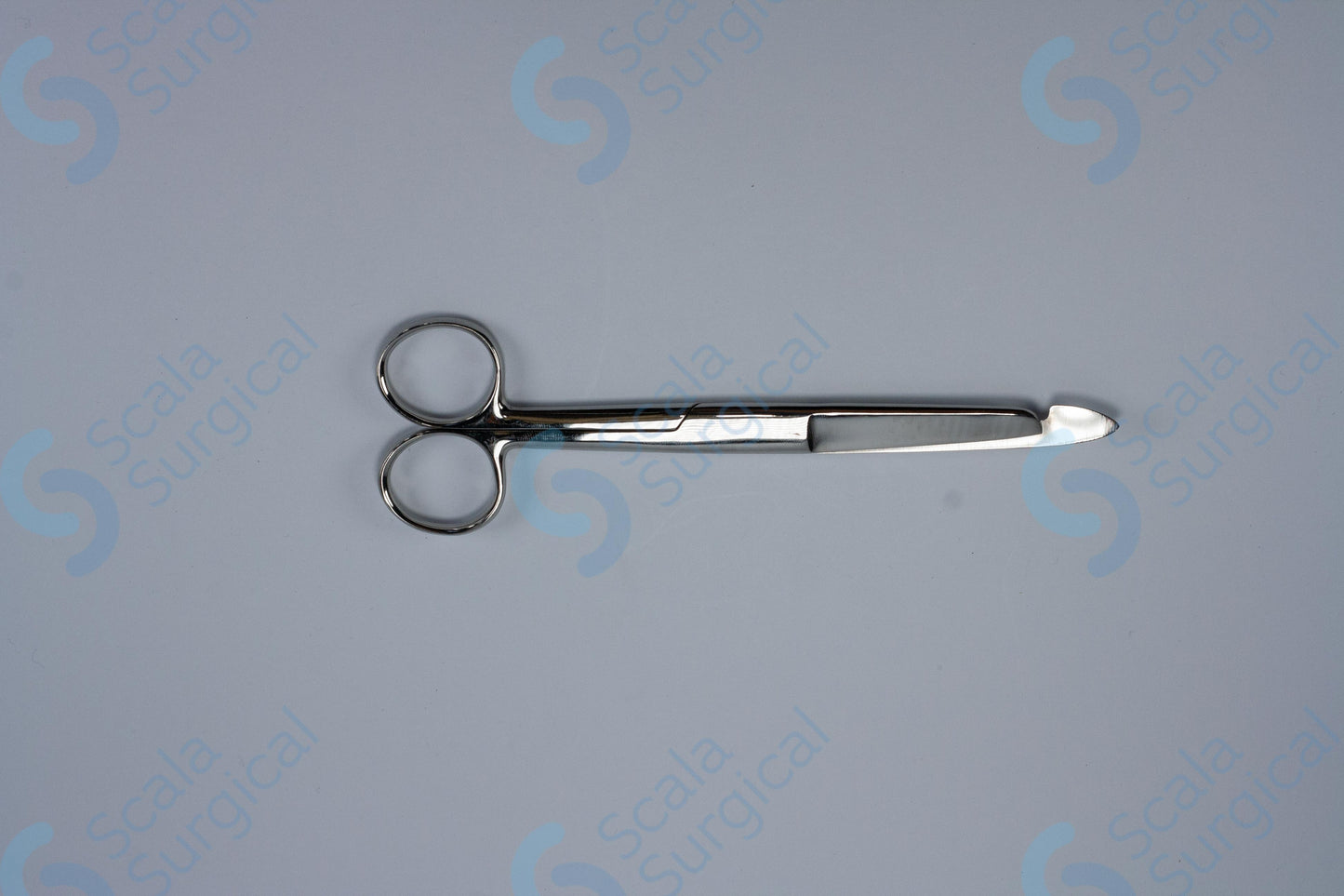 Bowl scissors straight (177.8mm) (7 inch) left handed are used in the surgical field to cut and trim tissue. The bowl shape of the scissors facilitates cutting around curved surfaces. The left-handed design allows for easier maneuverability in tight spaces.