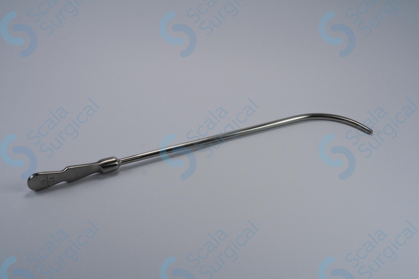 A Clutton Urethral Bougie is a tool used in urological surgery to help guide a catheter through the urethra. It is a flexible rod with a curved tip that is inserted into the urethra and used to help guide the catheter into the bladder. The numbers 12 FG and 16 FG refer to the size of the bougie, or its French gauge. The 11? inch measurement refers to the length of the bougie.