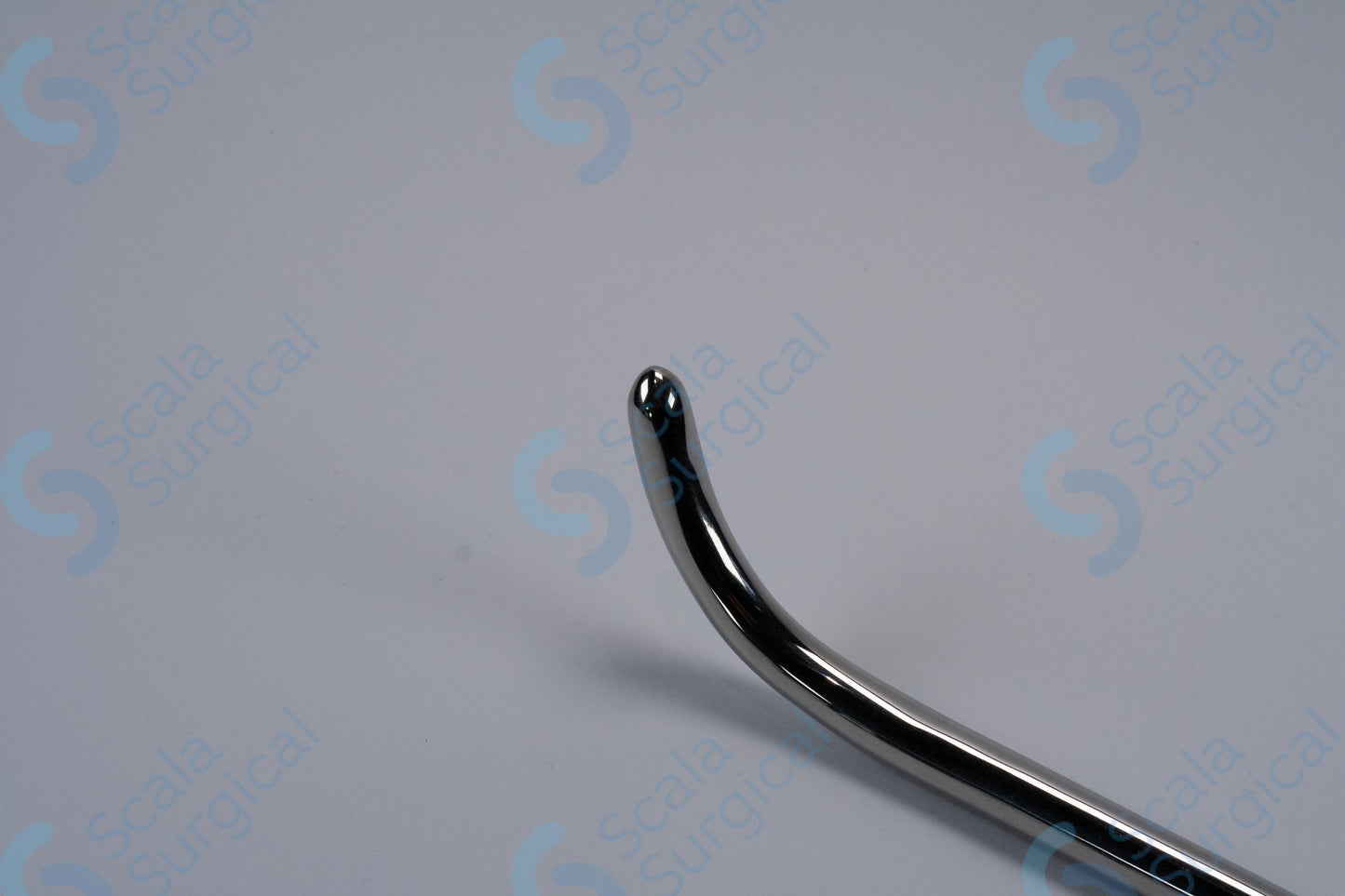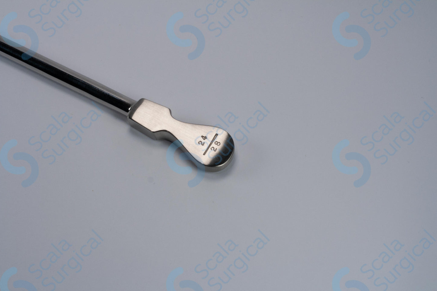 A Clutton Urethral Bougie is a long, flexible, cylindrical instrument used in urological surgery to dilate the urethra. It is inserted into the urethra and used to gradually increase the size of the opening. The 24 FG/28 FG size refers to the inner diameter of the instrument, which is 24 French Gauge (FG) at the tip and 28 FG at the midpoint. The 11? inch length is the total length of the instrument.