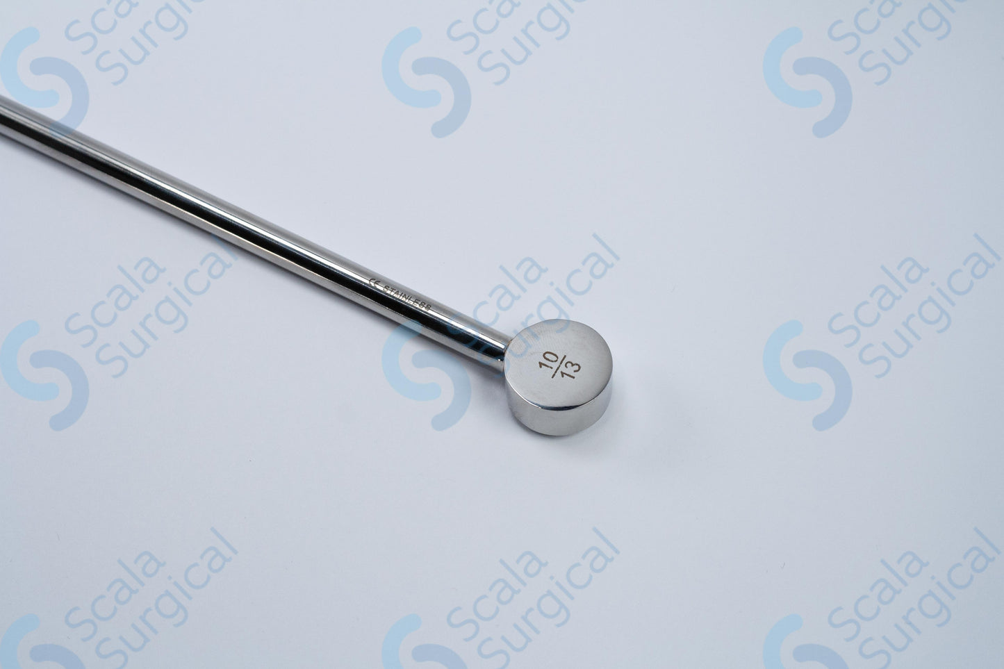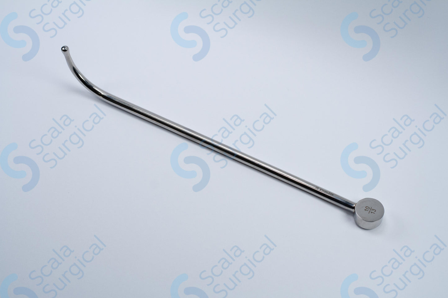 A Lister Urethral Bougie is a medical instrument used to dilate a narrow or obstructed urethra. It is inserted into the urethra to stretch and widen the urethral opening, allowing for easier passage of a catheter or other instruments. The 10 EG and 13 EG refer to the size of the bougie.